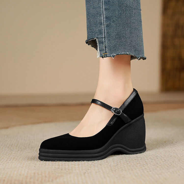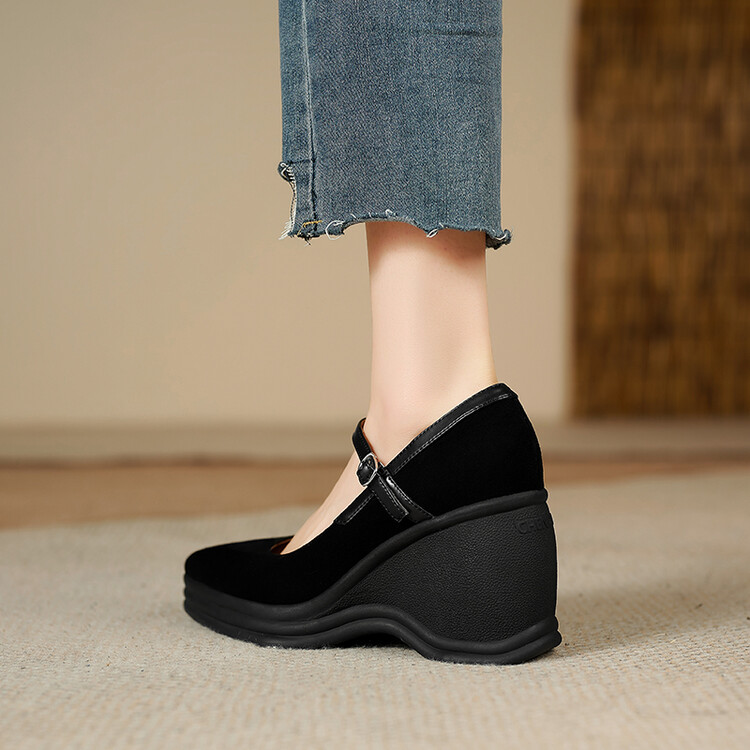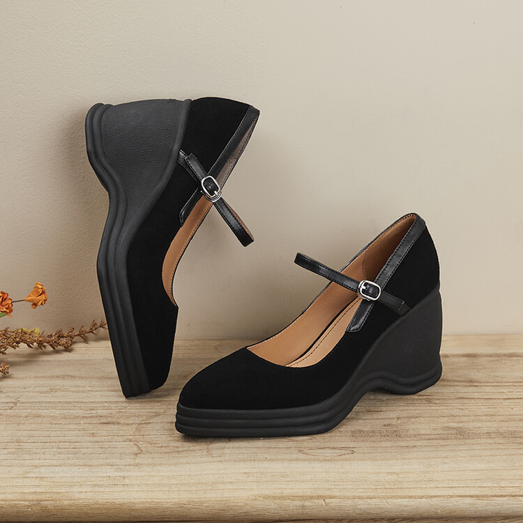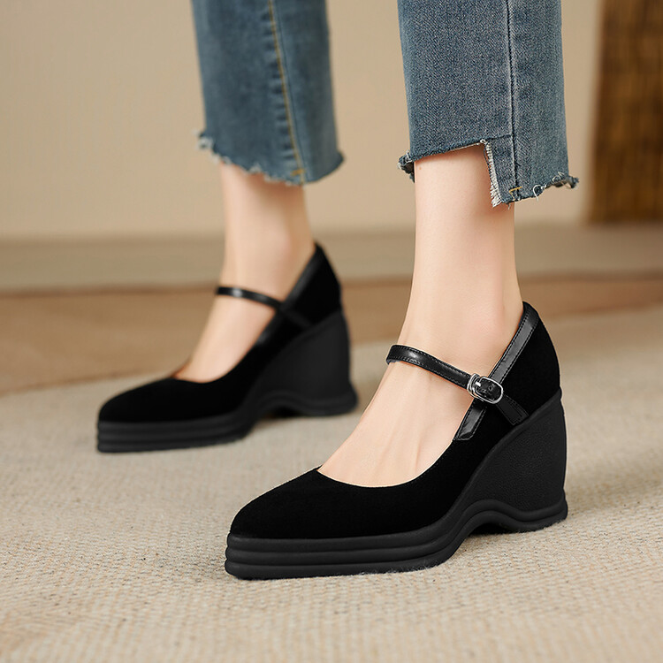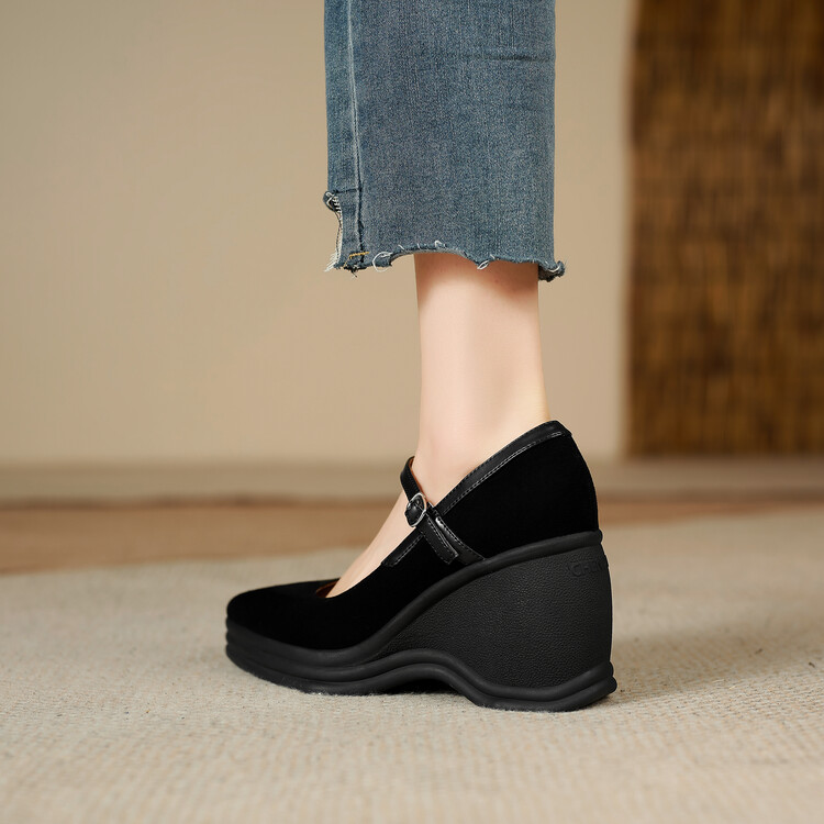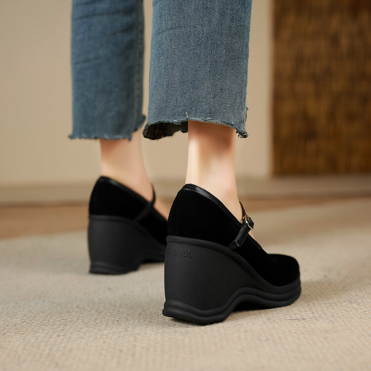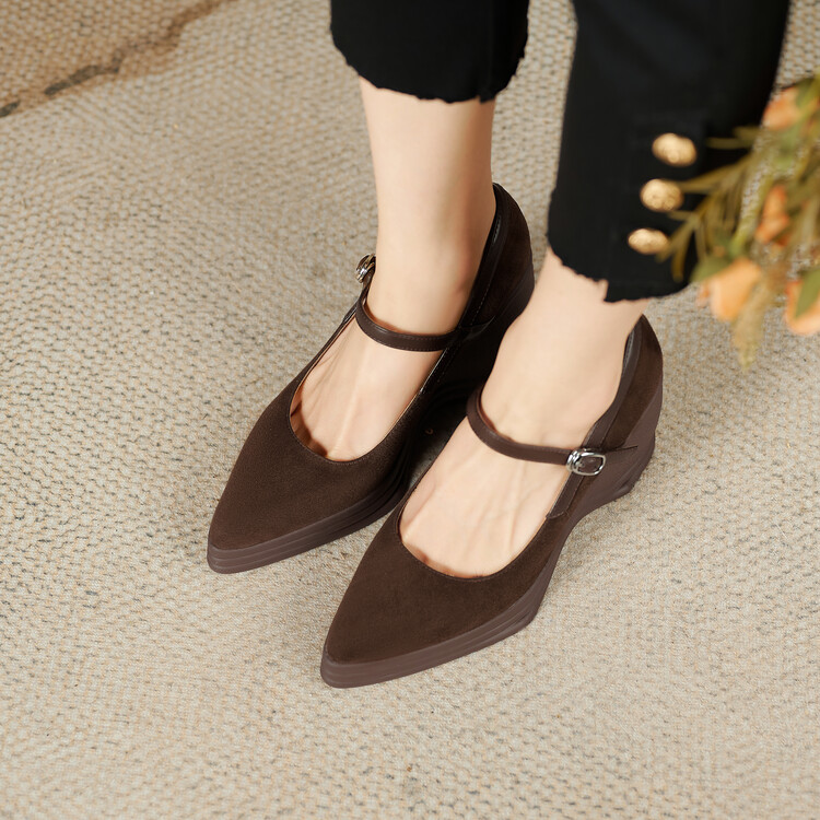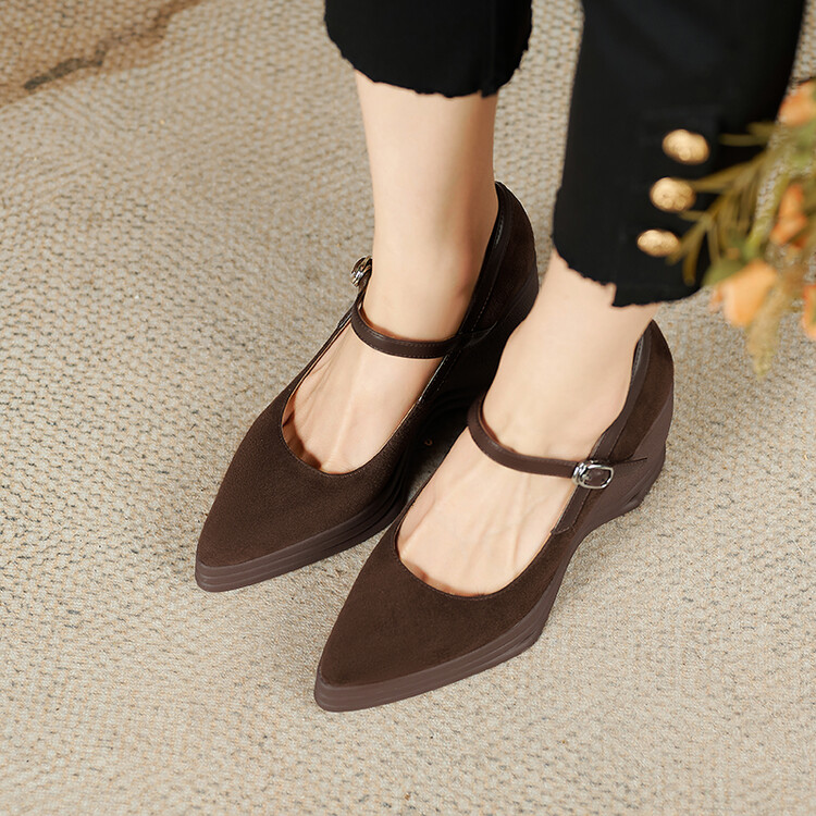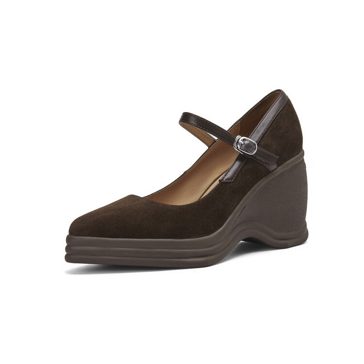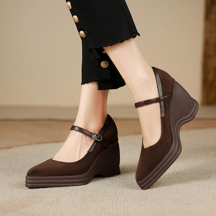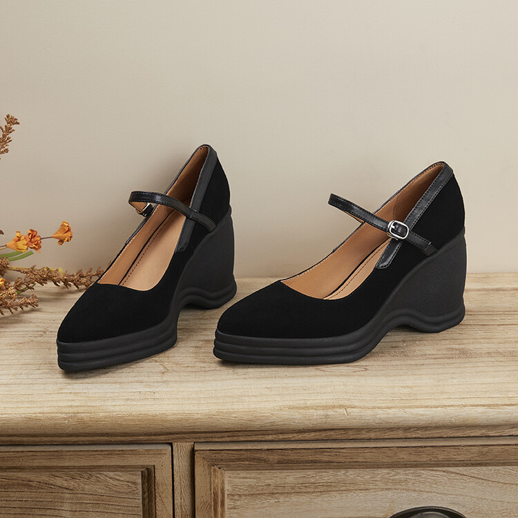 货号:N9467颜色:黑色 棕色跟高:9CM水台: 2.5CM鞋码:34-39鞋面材质:羊反皮+牛皮鞋 垫:牛皮内里材质:头层猪皮鞋底材质:牛筋底