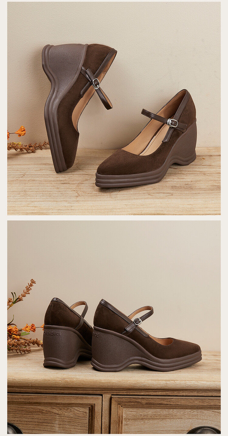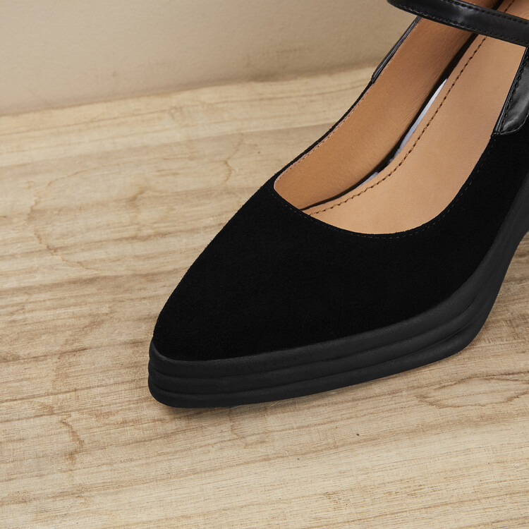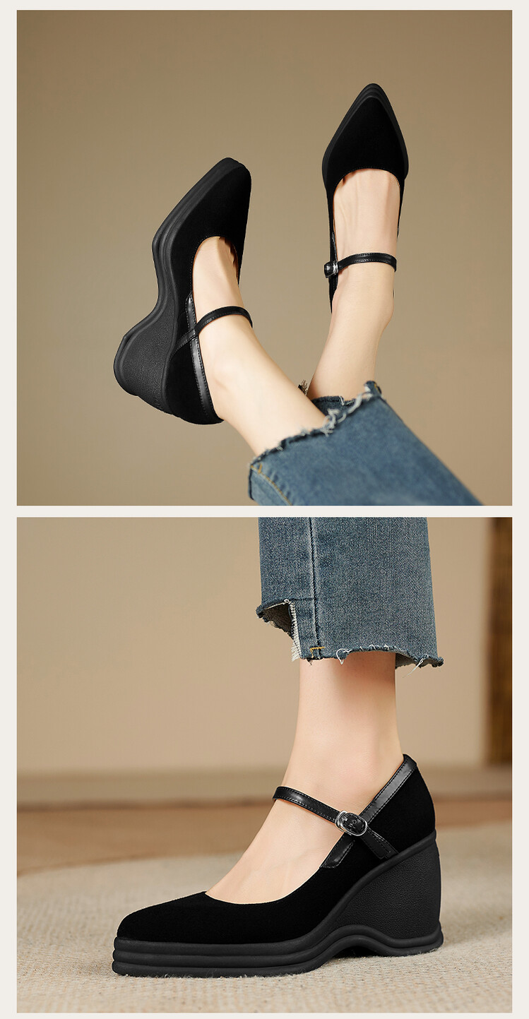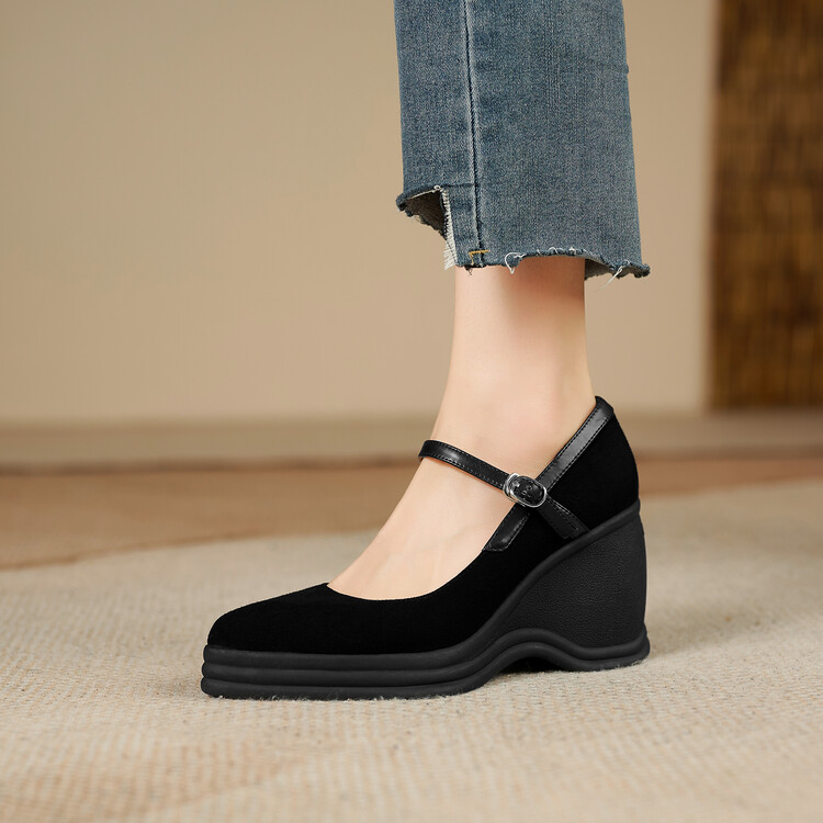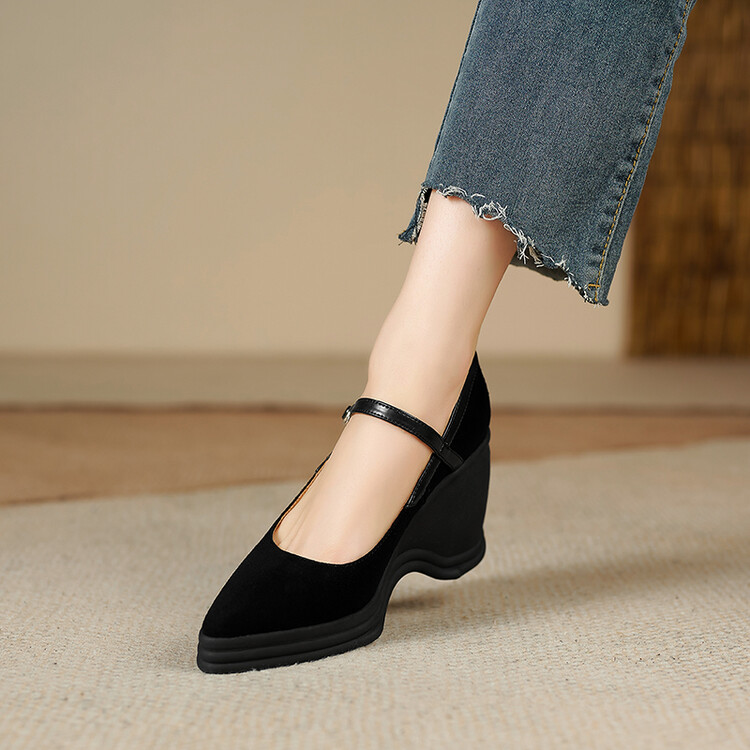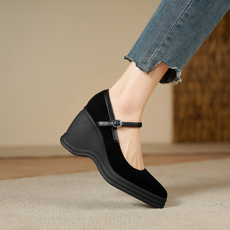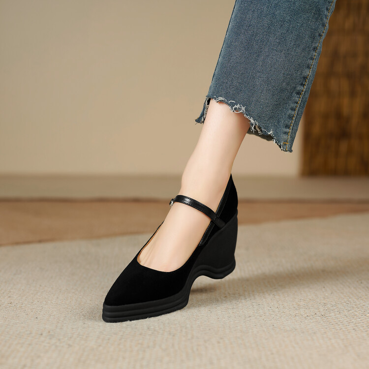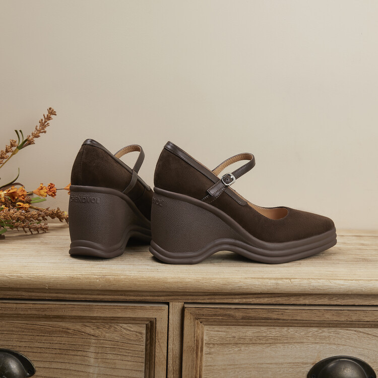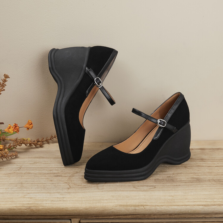货号:N9467颜色:黑色 棕色跟高:9CM水台: 2.5CM鞋码:34-39鞋面材质:羊反皮+牛皮鞋 垫:牛皮内里材质:头层猪皮鞋底材质:牛筋底