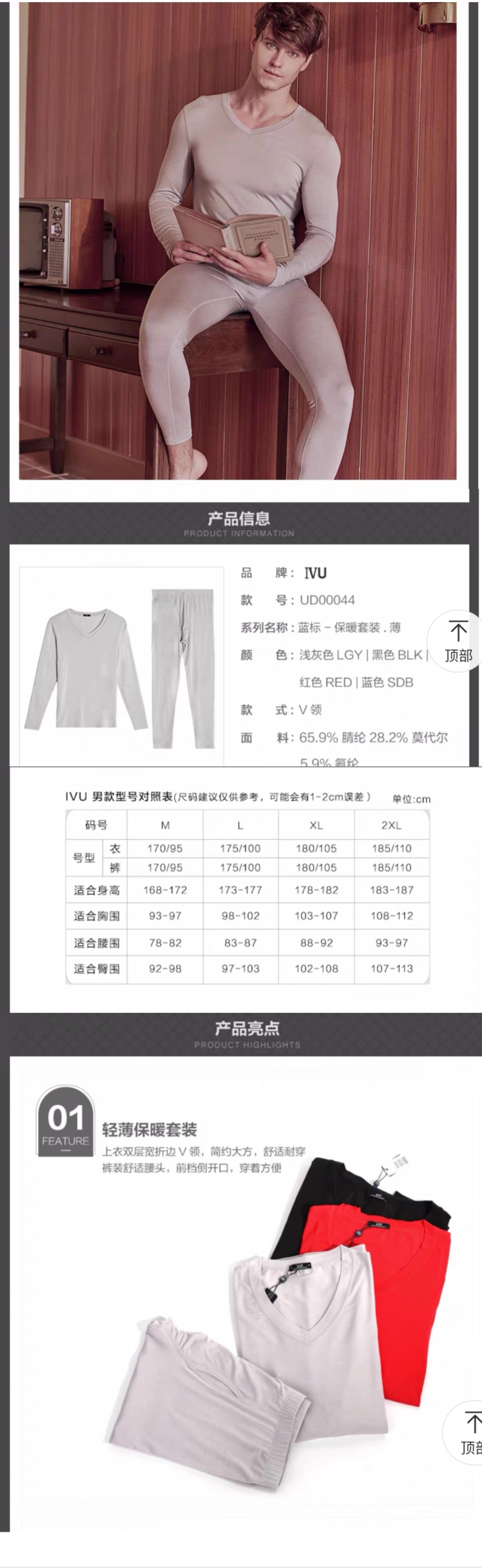 【251】安莉芳IVU男士薄款保暖内衣套装修身打底秋衣秋裤UD00044