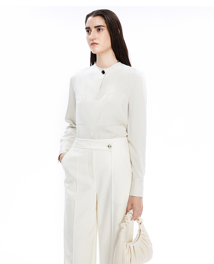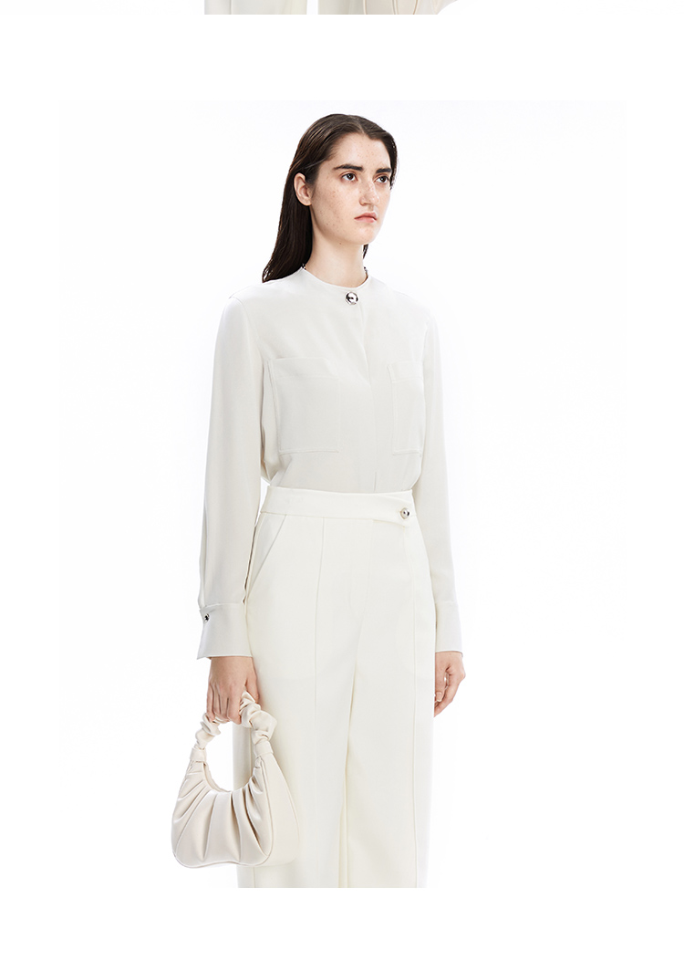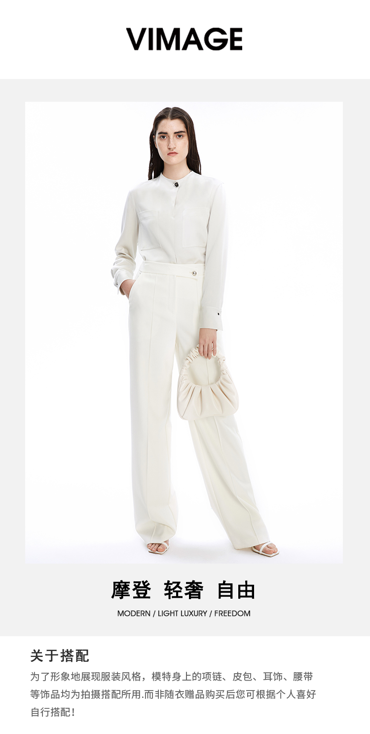VIMAGE纬漫纪秋季新款纯色通勤百搭衬衣衬衫衬衣女士上衣V1609207