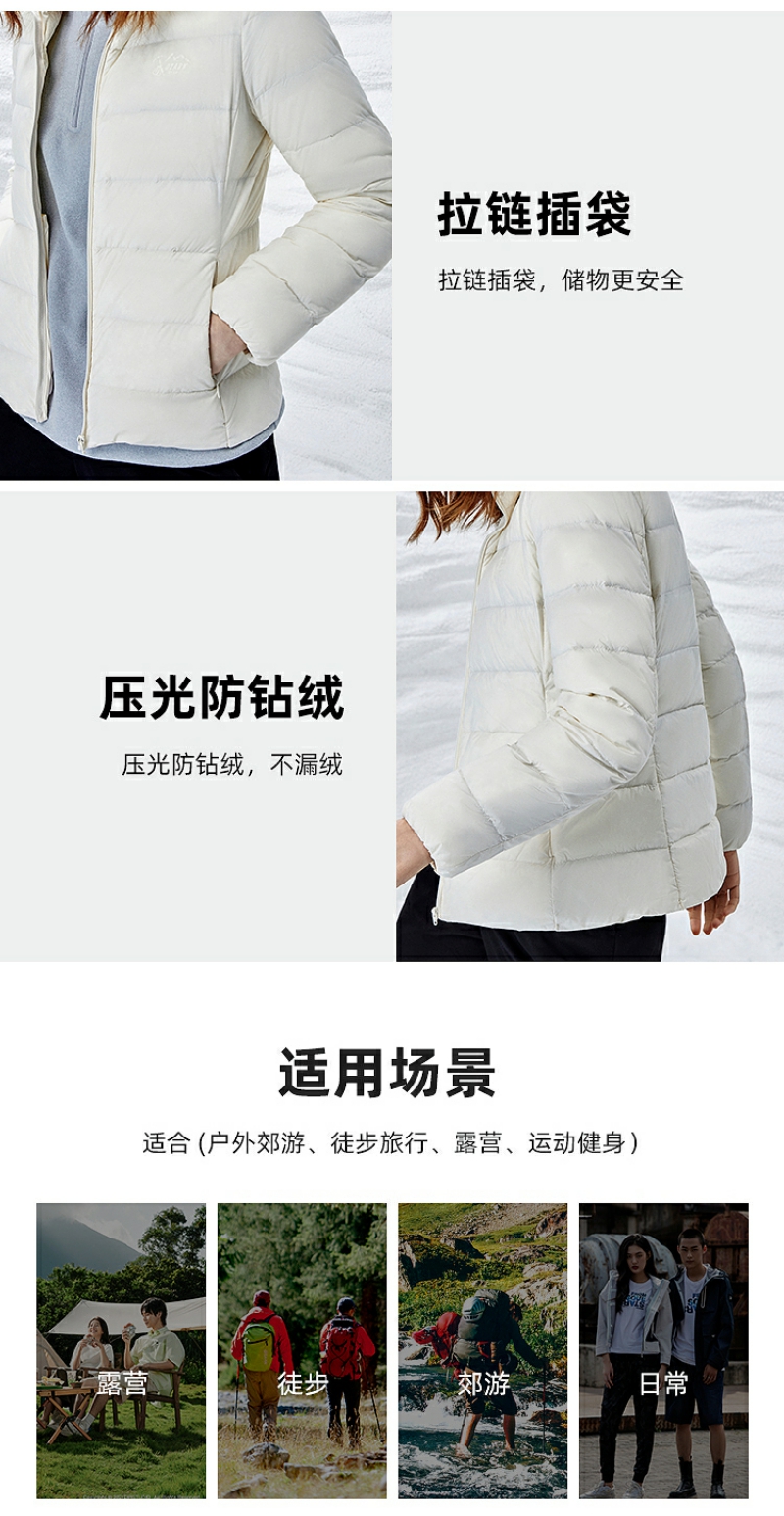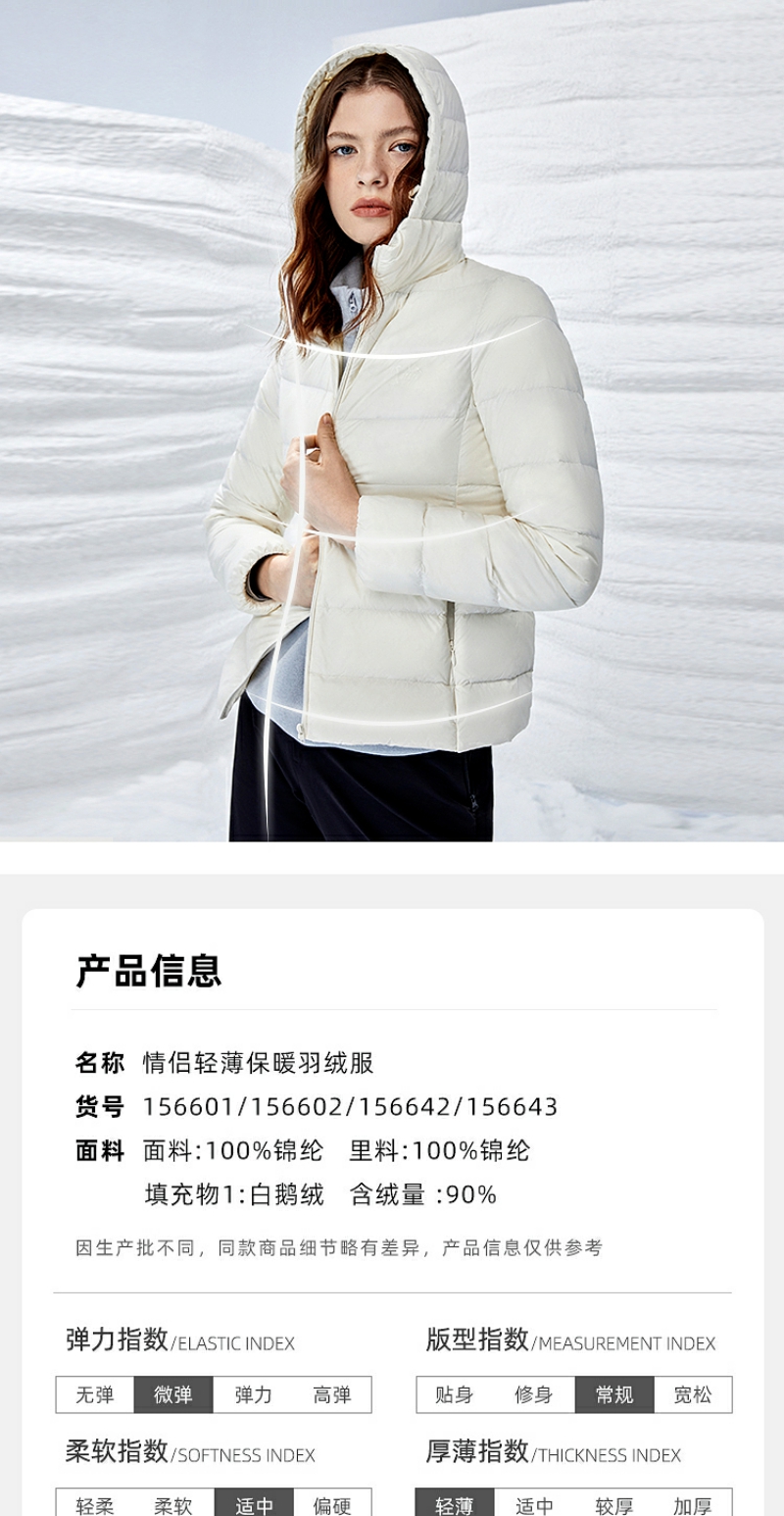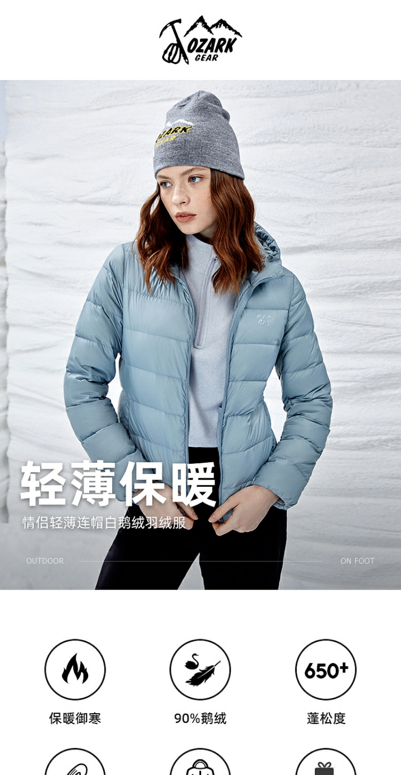 OZARK/奥索卡户外23秋冬新款情侣男女轻薄连帽白鹅绒羽绒服156602