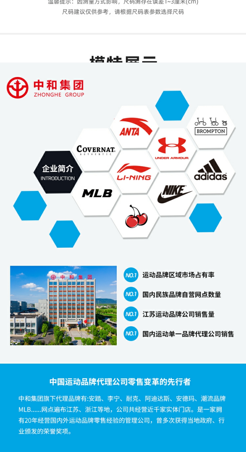 - 中和集团旗下代理安踏、李宁、耐克、安德玛、耐克、中国李宁、MIB等运动时尚品牌,网点遍布江苏、浙江、湖北等身份