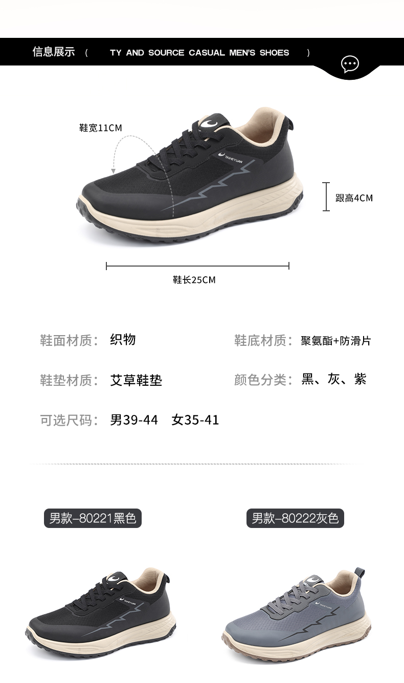 90天只换不修【非遗老国货 轻软缓震防滑 专利艾草鞋垫】泰和源 休闲户外运动鞋