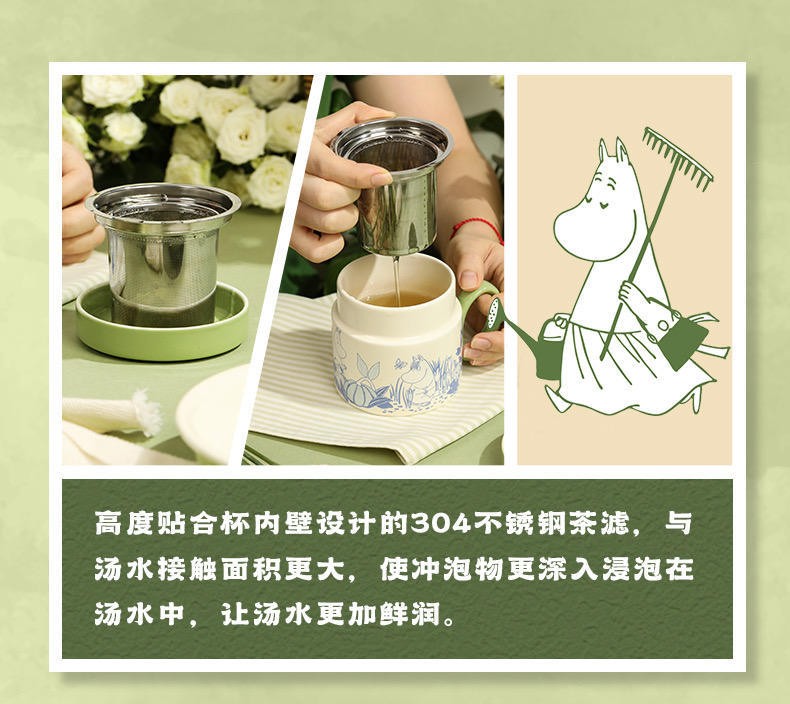 姆明复古实用陶瓷花茶杯【带盖带茶漏】