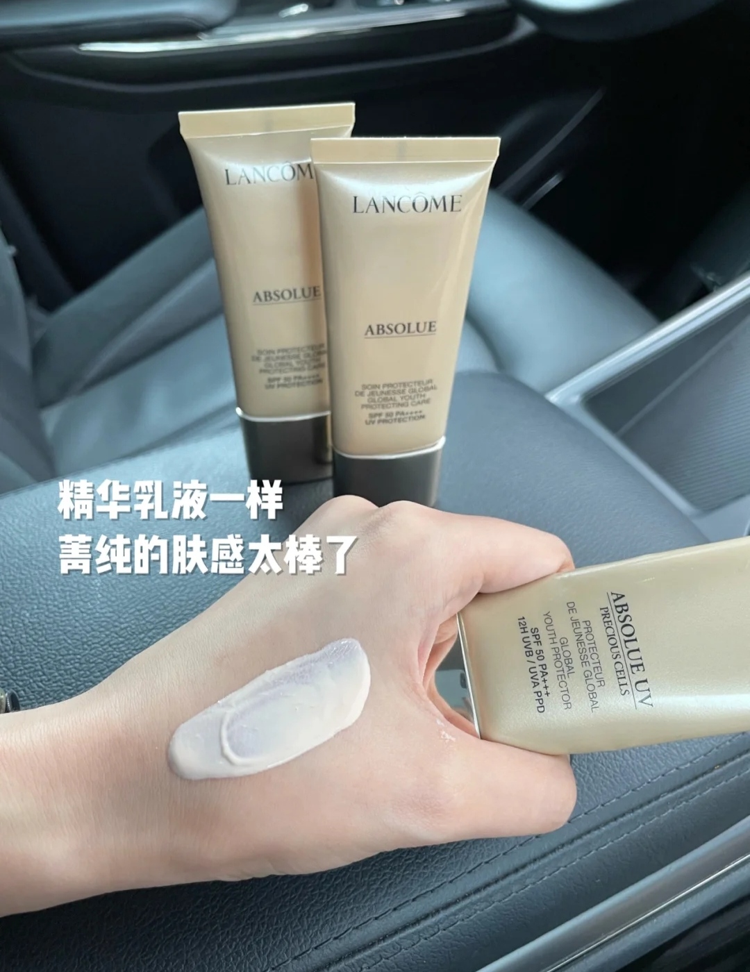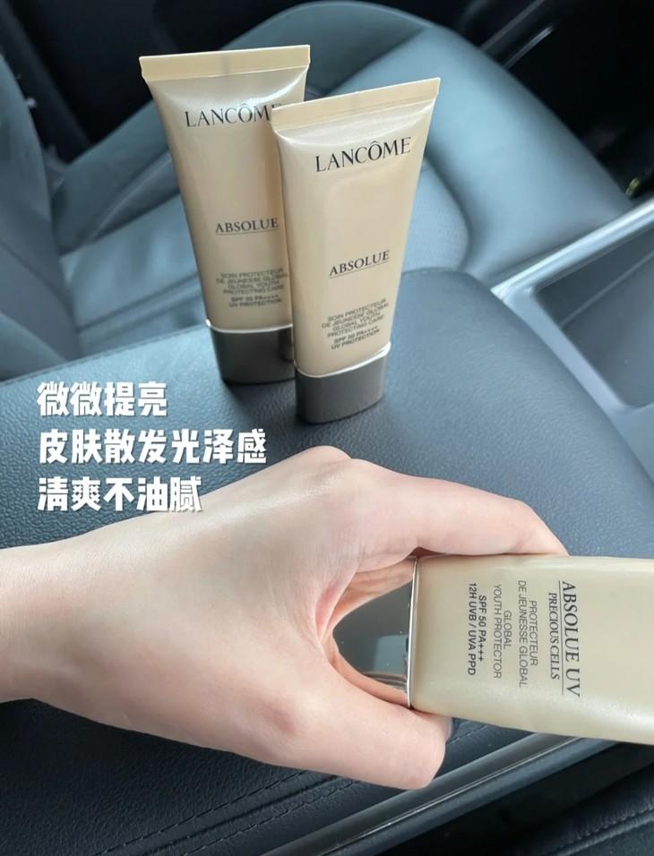 👑兰蔻 菁纯防晒 50ml 👍防晒+隔离二合一👏🏻, 防晒指数SPF50PA+++❗高倍数防晒📣。 📣含有:麦色滤、玻色因、玫瑰精粹🌈。 🔥具有养肤、防晒功效。 ✨乳液质地,上脸清爽不油腻,成膜速度也是非常快🛵,让妆容更加服帖🙌🏻。 🌹一律贯彻箐纯系列高级玫瑰香味,让人非常舒适🙊。 🍃又可以当遮瑕👏🏻又可以当精华,性价比超级绝了✈️! 💃🏻推荐“干皮”的女生使用喔~
