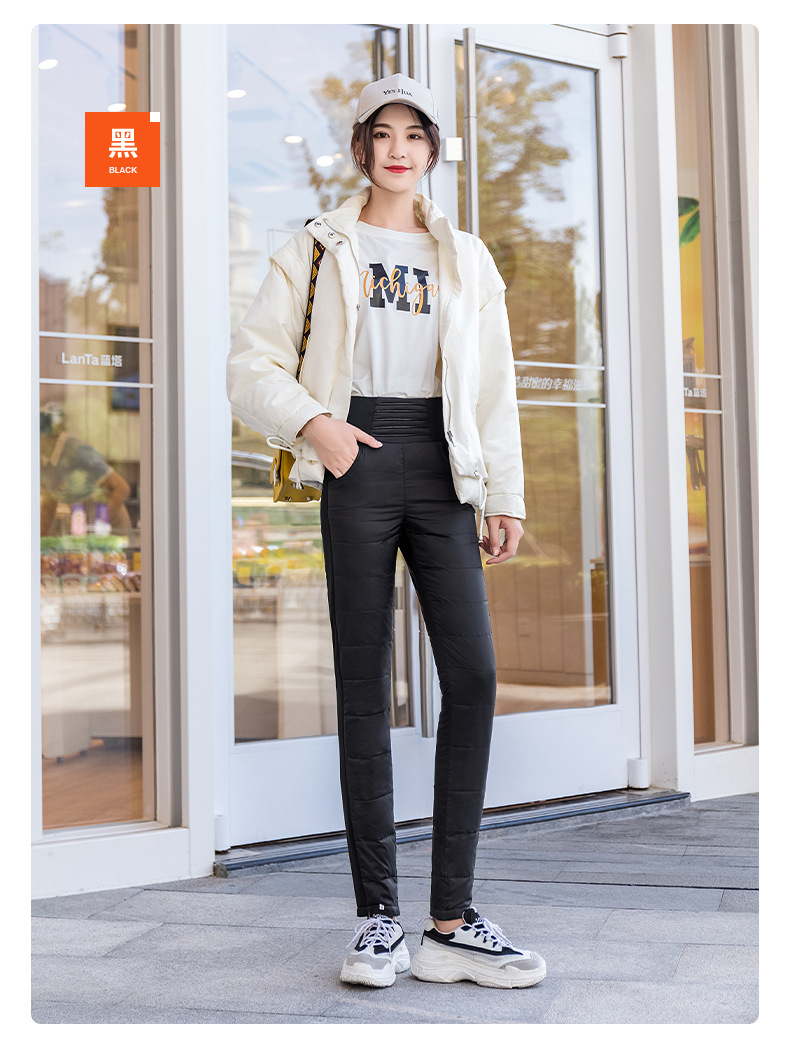 XFF-A-262新款时尚气质修身显瘦高腰双面弹力保暖小脚羽绒裤