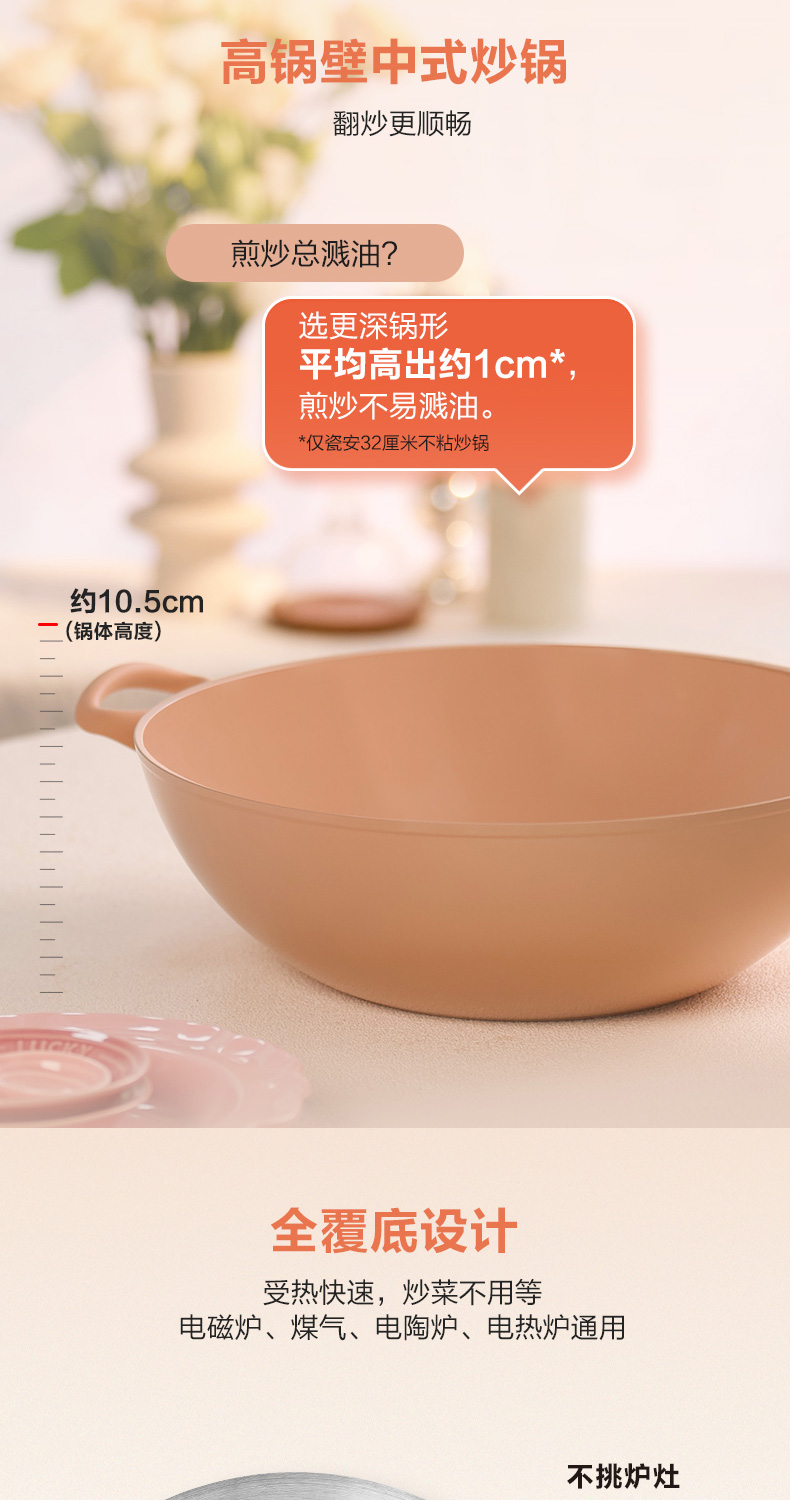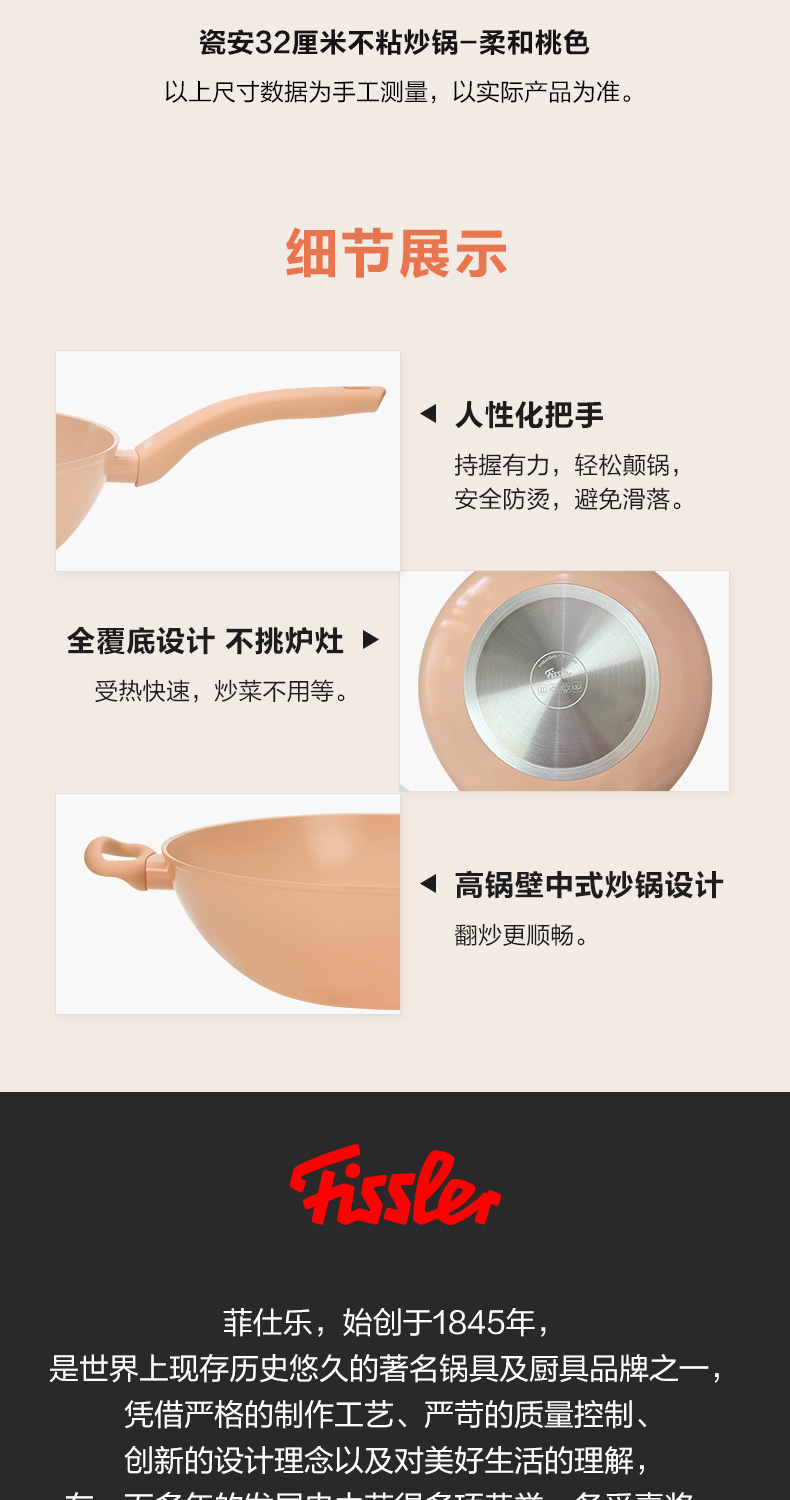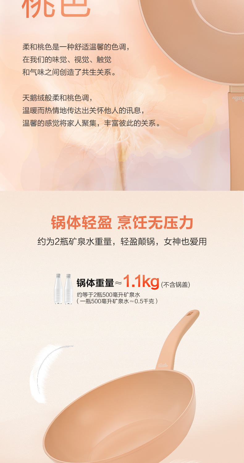 菲仕乐 瓷安不粘炒锅柔和桃色-赠配套玻璃盖及硅胶铲
