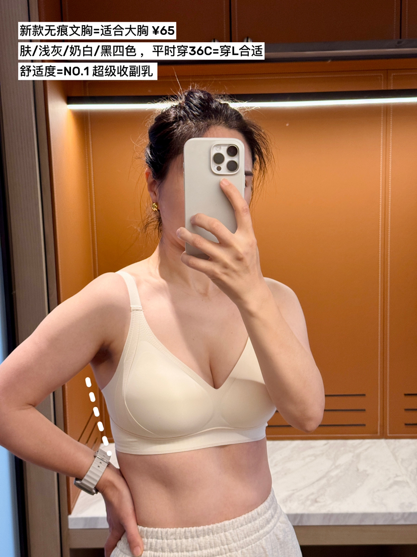 每个颜色都很好搭配,搭配任何衣服都毫无违和感,尤其颜色衣服,茶杏=浅灰色、肤色穿白色T完全不透!!奶白反而没有这俩色更”隐形“。