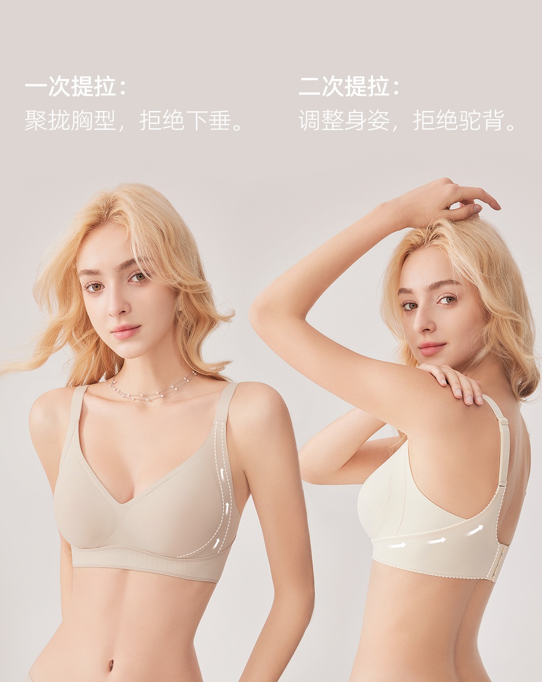 ②二次提拉,聚拢胸型,拒绝下垂。