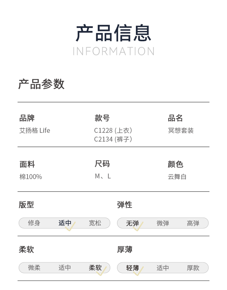 艾扬格 life 瑜伽冥想套装 两件套 柔嫩触感裸感体验 云感舒适自在让冥想沉淀舒展