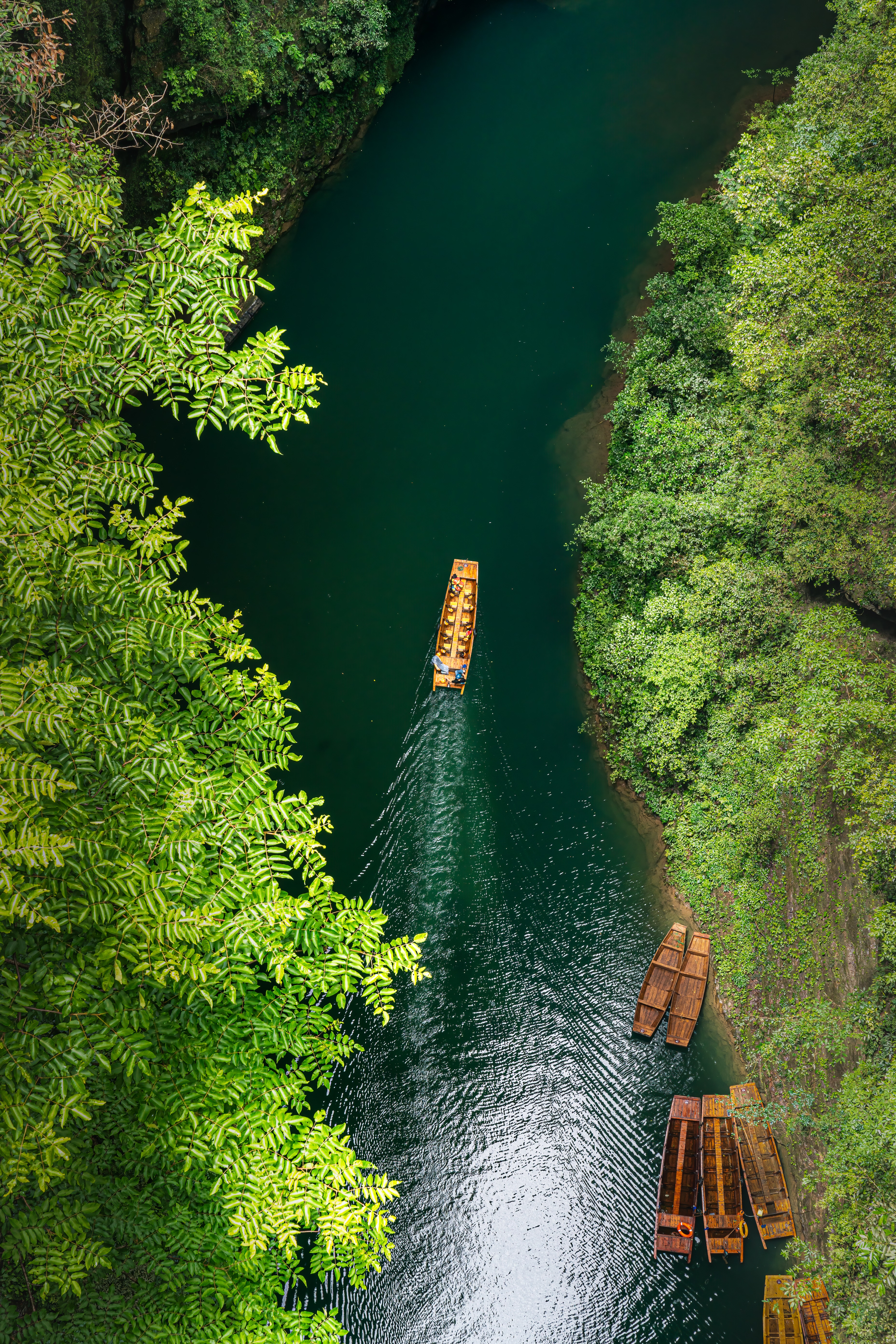 全天拍摄盛名昭著的“中国仙本那”--屏山峡谷,这里地势险要,风光奇特,四壁峭壁耸立,碧水环绕,青山翠绿,构成了十分罕见的地缝风光。地缝的河水清澈见底,游船行进在河面上,犹如悬浮在空中一般,真令人叫绝、屏山躲避峡划船、峡谷拍摄;
