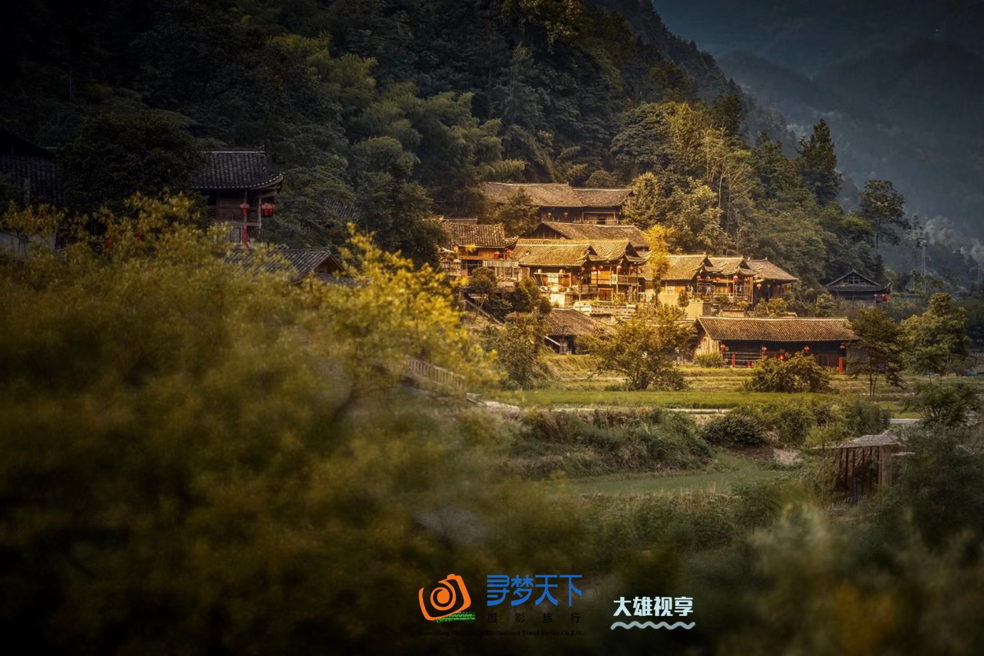 早餐后前往狮子关拍摄网红水上浮桥,狮子关为宣恩三大古雄关之一。下午前往【彭家寨】,彭家寨吊脚楼群依托观音山,建于山脚斜坡上,寨前是一排稻田,面向龙潭河,河上架有铁索桥。山清水秀,人杰地灵,古色古香,如同一颗璀璨的明珠,闪烁在宣恩县西南边陲;