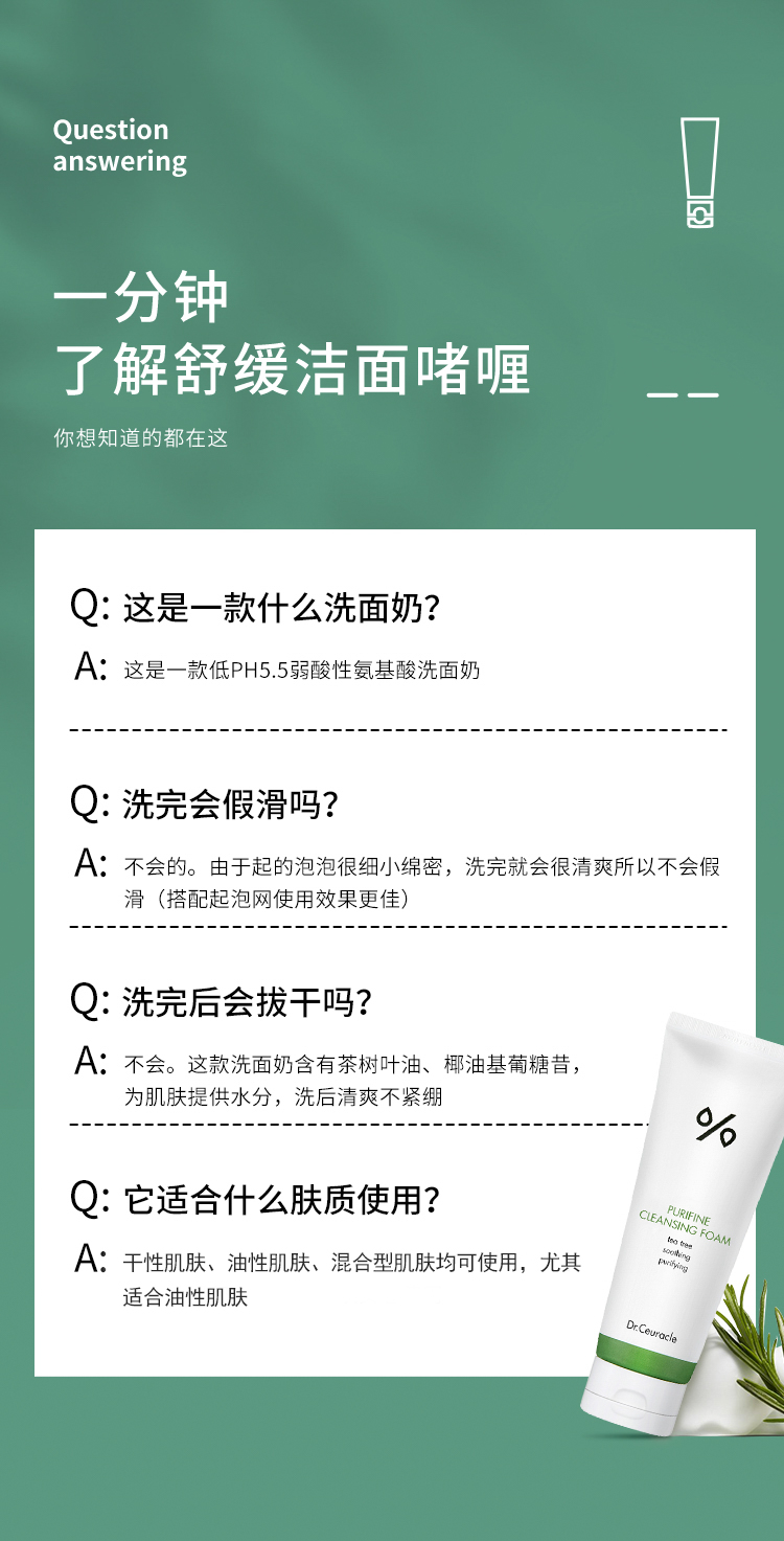 Dr.Ceuracle舒罗蔻舒缓洁面啫喱 茶树洁面奶氨基酸温和清洁水润清爽 150ml/支