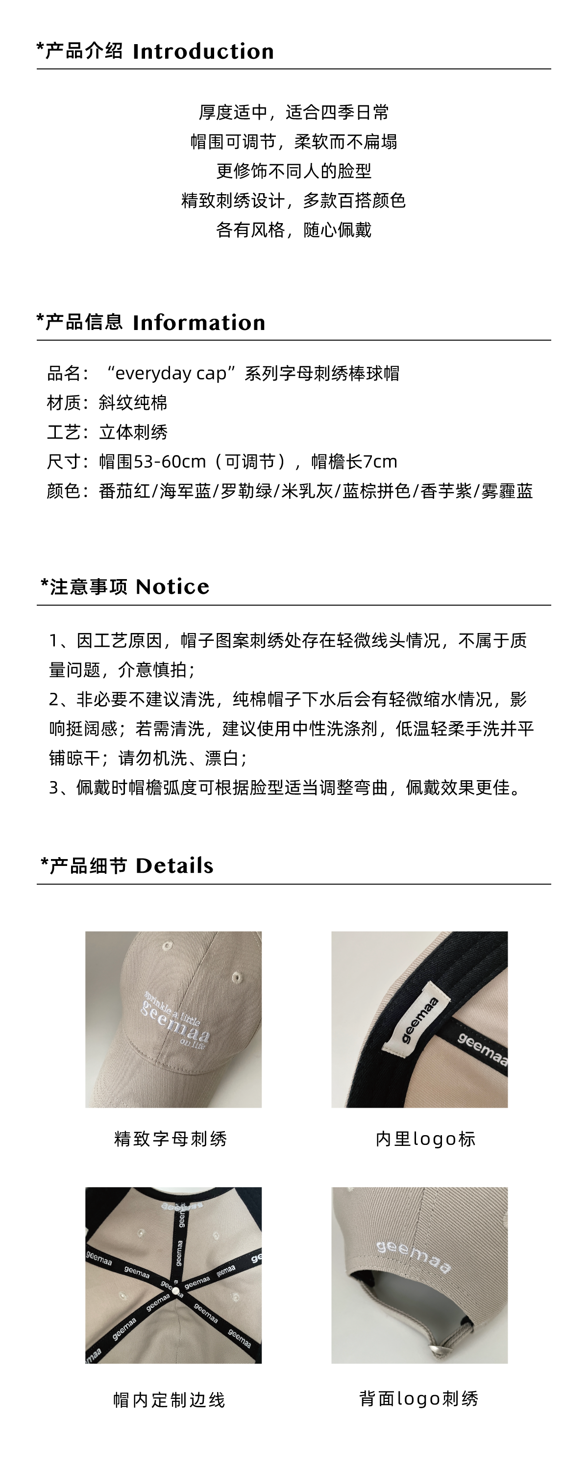 【新色上新】geemaa everyday cap系列字母刺绣棒球帽