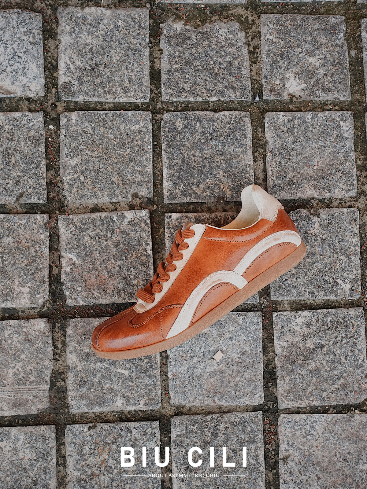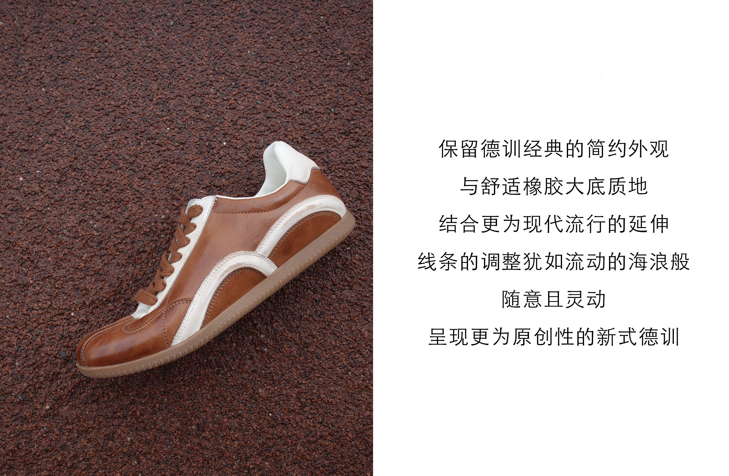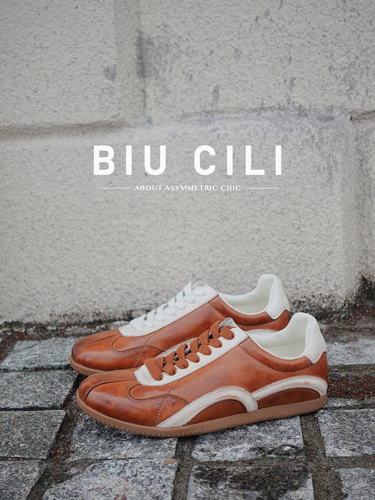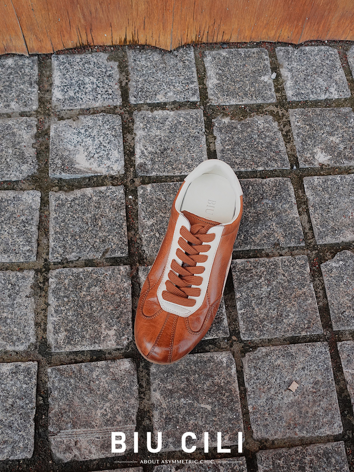 BIUCILI 原创设计棕色马皮复古德训鞋休闲鞋