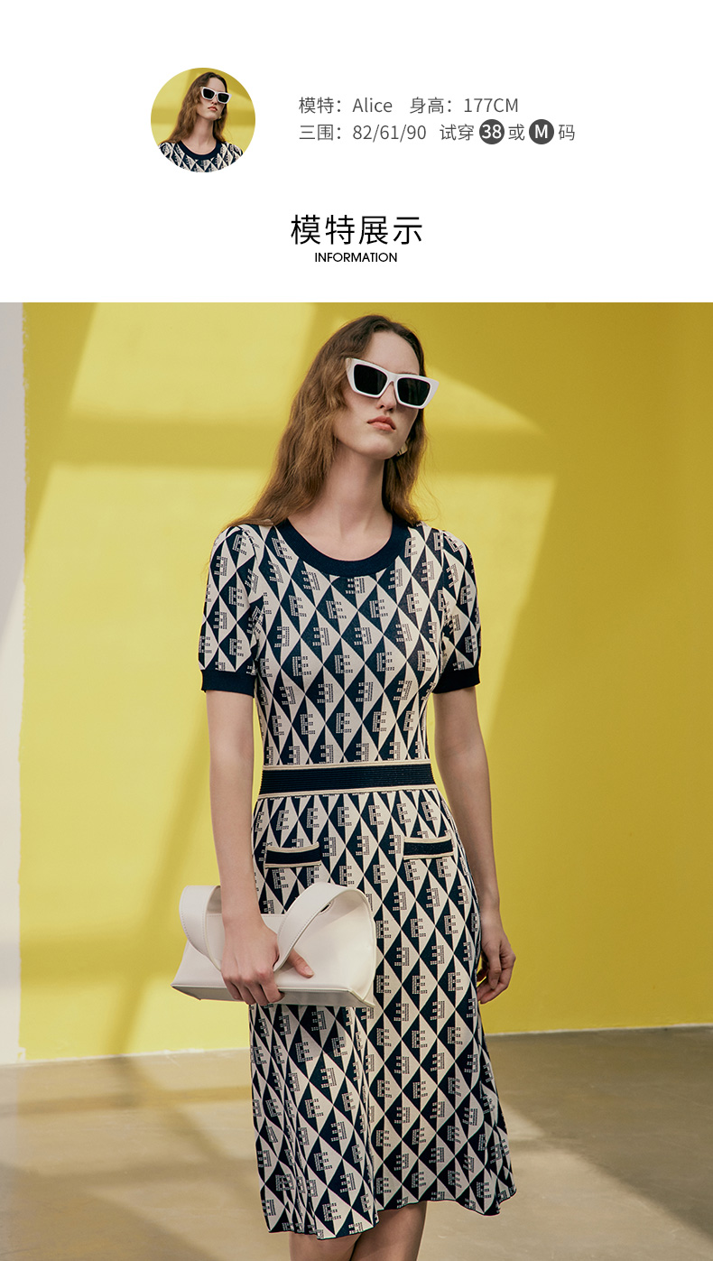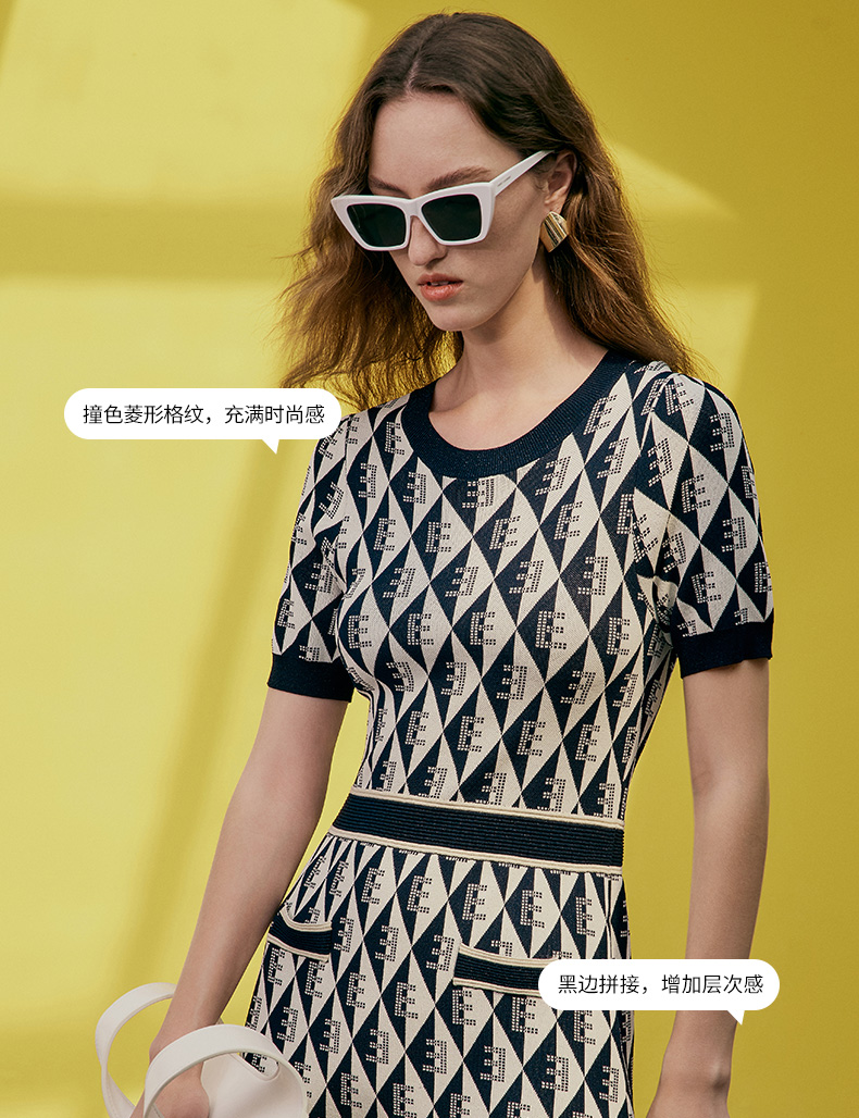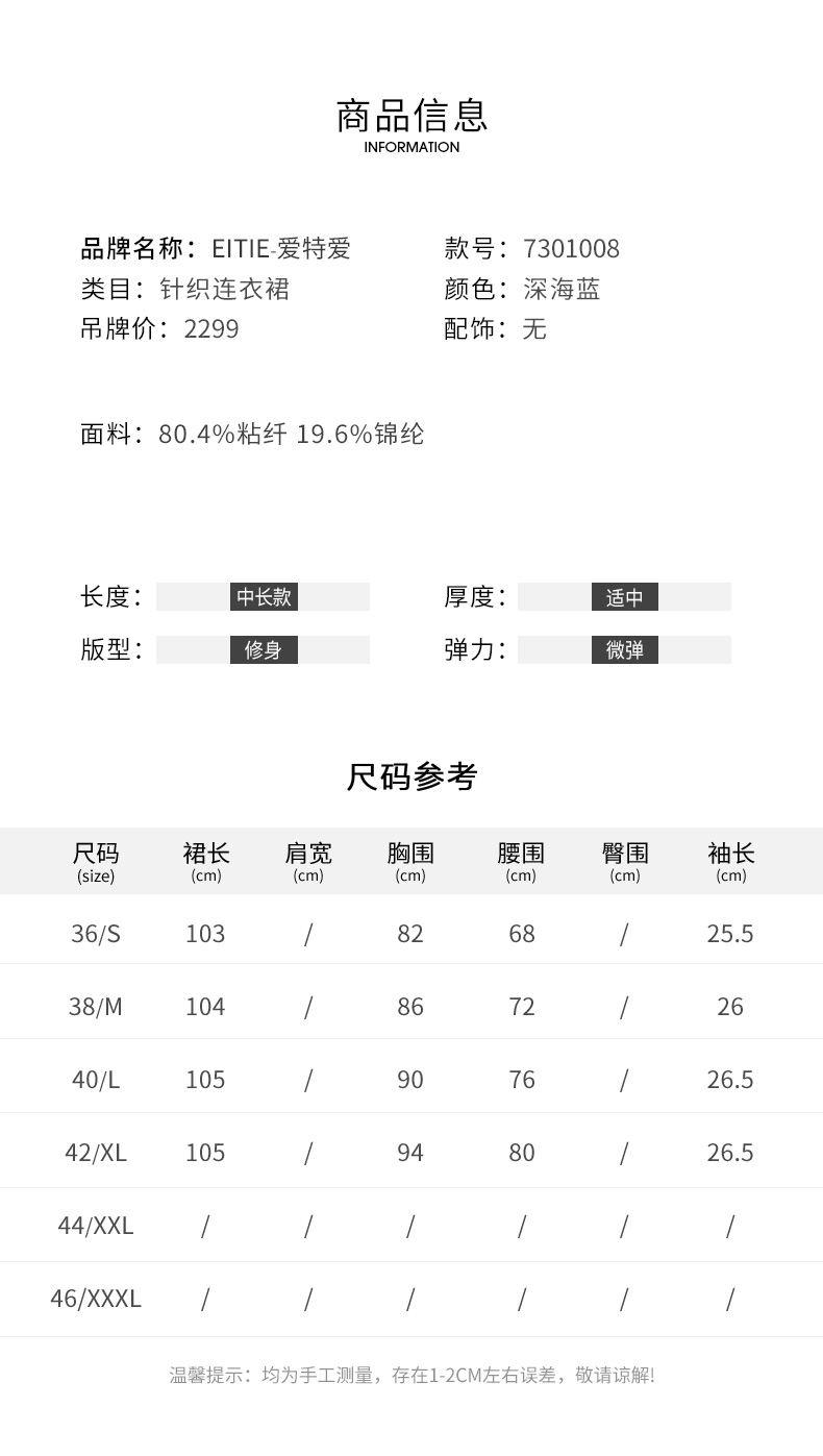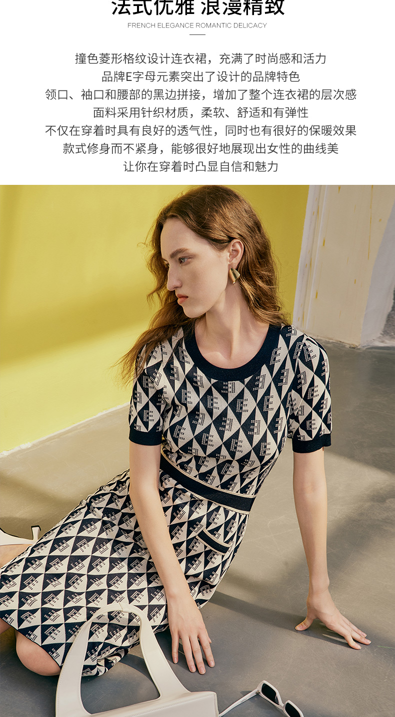 EITIE爱特爱夏季新款时尚舒适透气针织显瘦连衣裙女7301008
