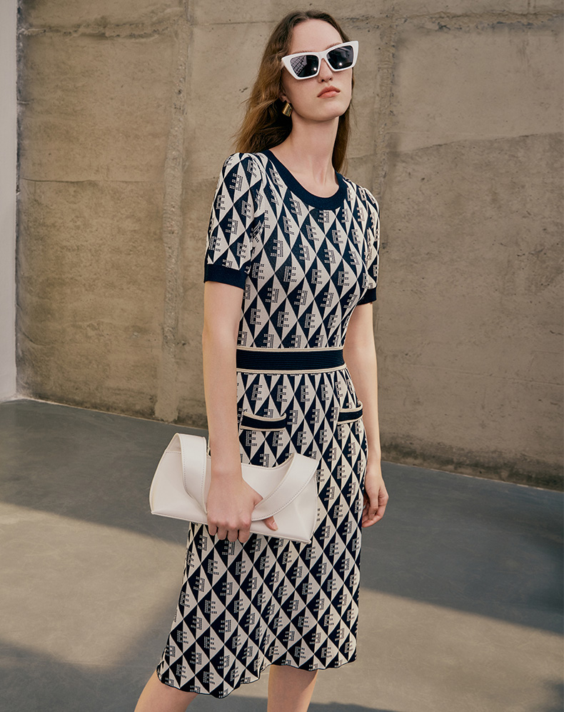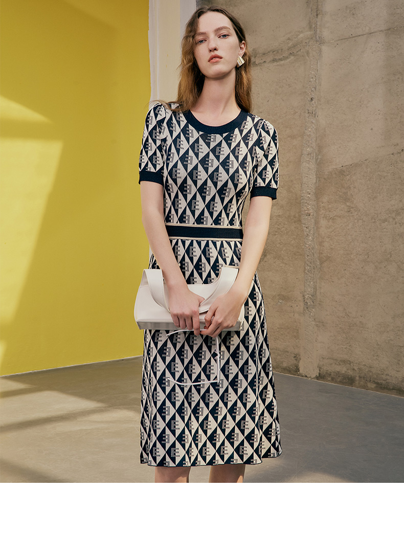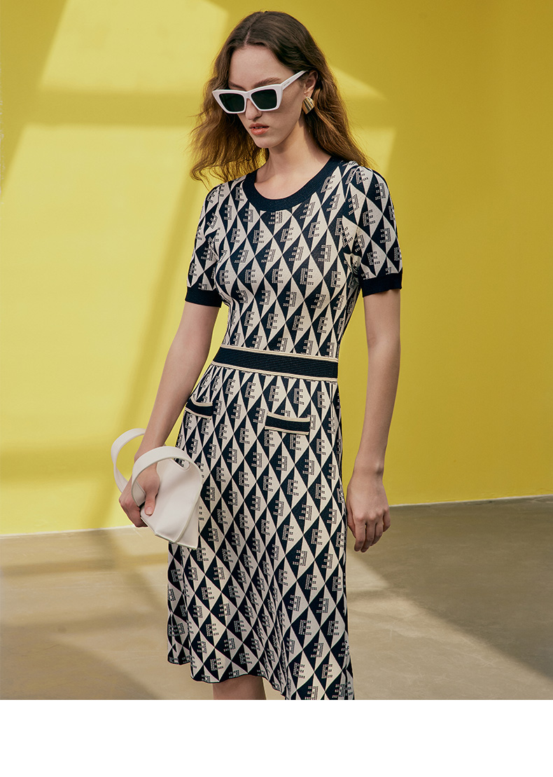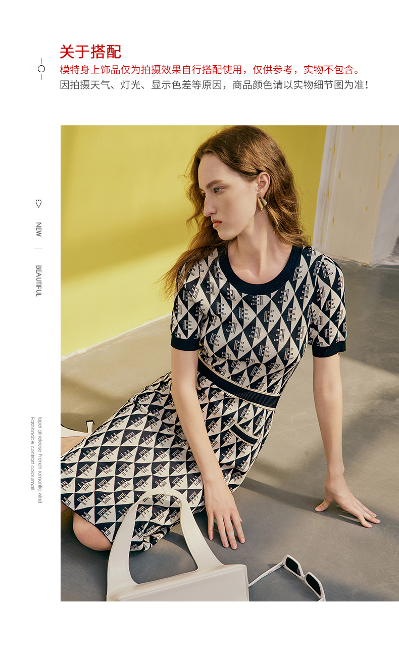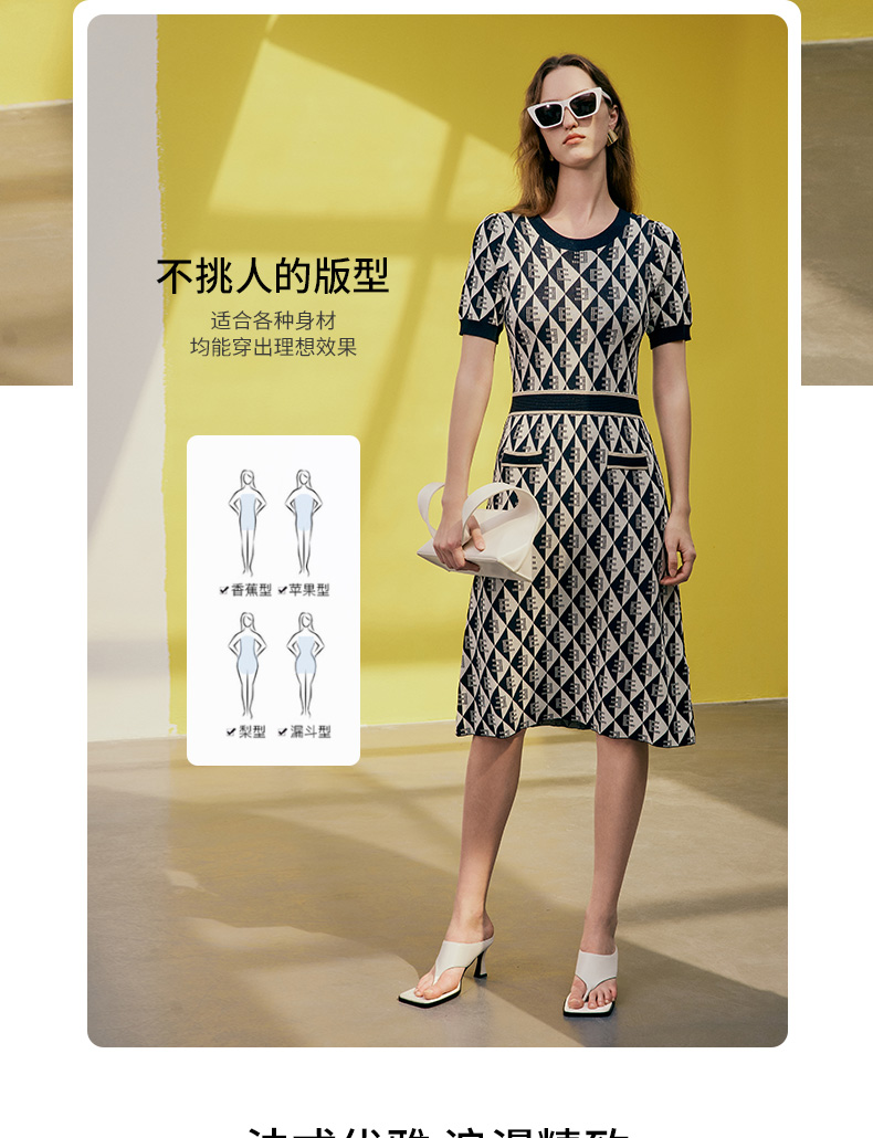 EITIE爱特爱夏季新款时尚舒适透气针织显瘦连衣裙女7301008