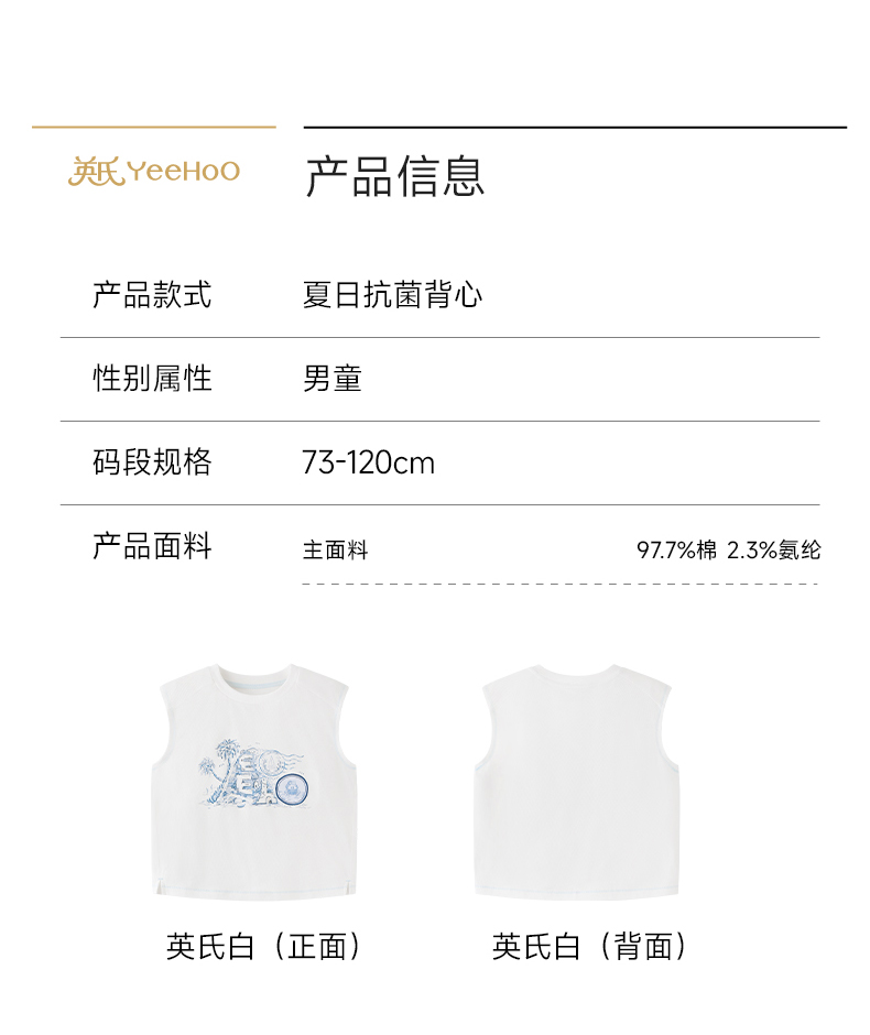 【商场同款】英氏男童背心夏新款圆领打底衫儿童抗菌透气薄款
