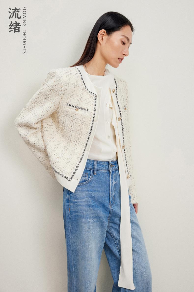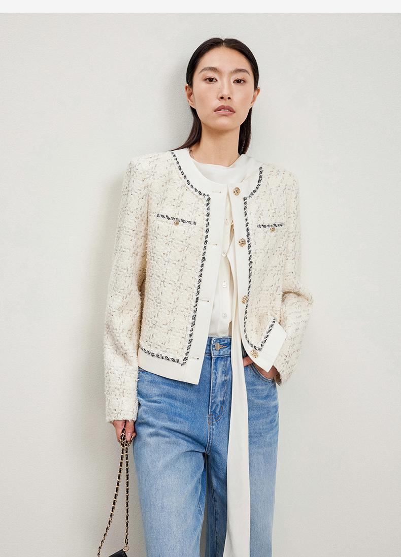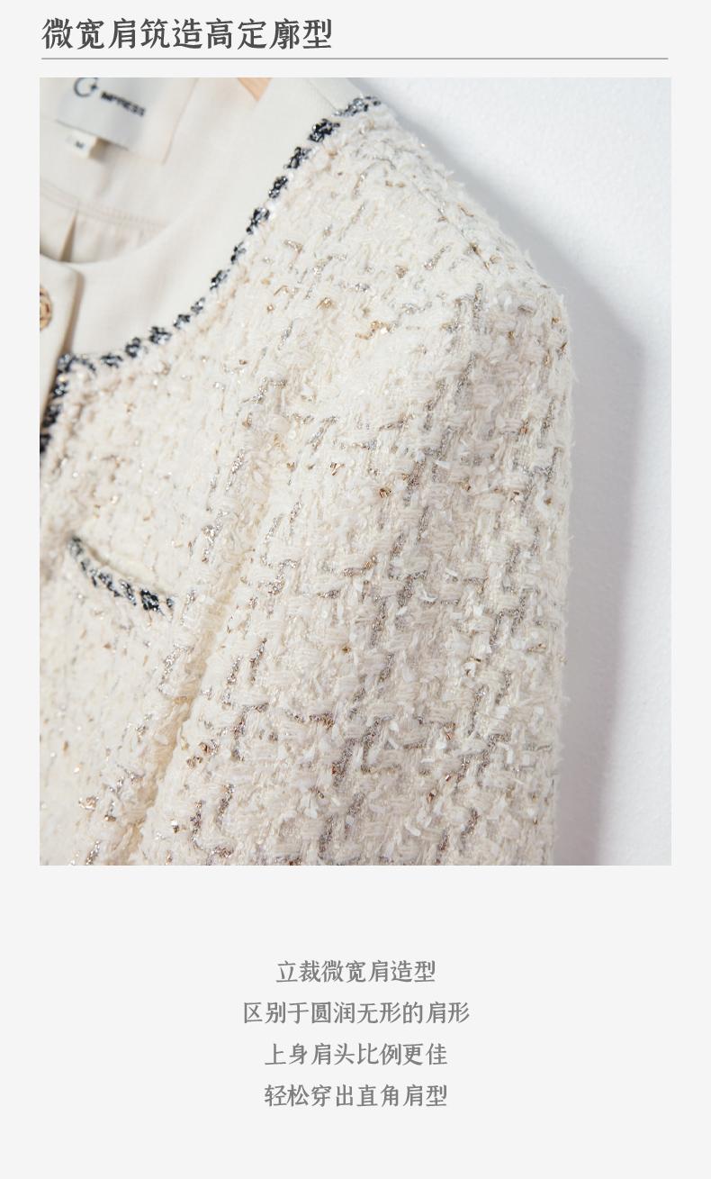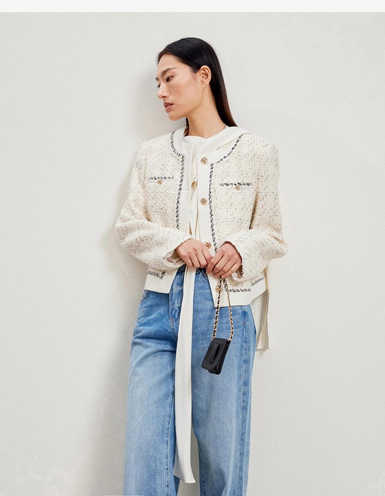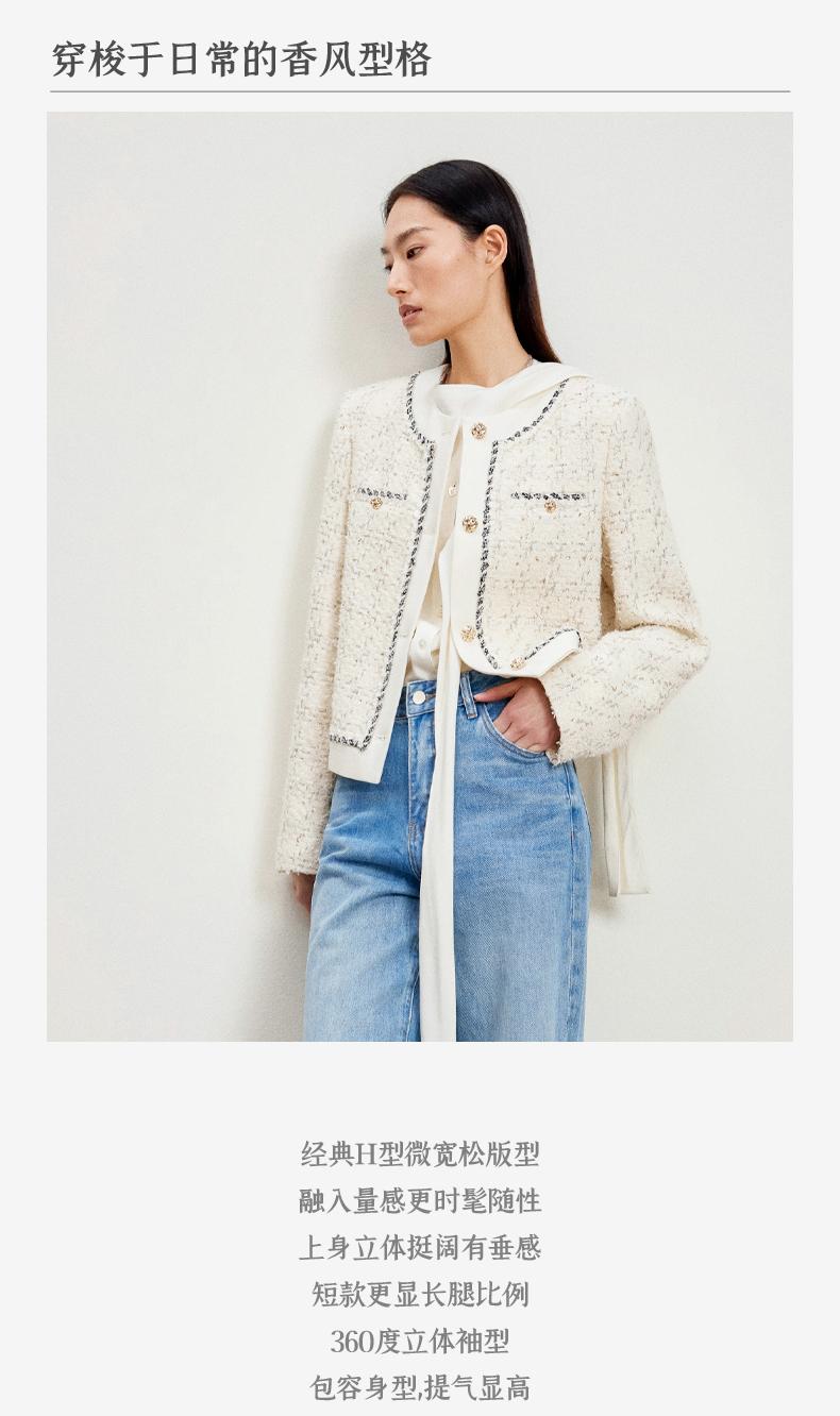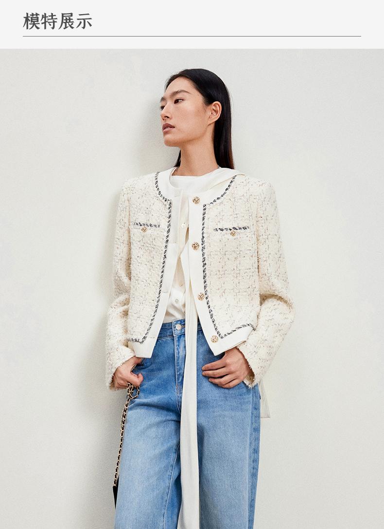 西嘉C+IMPRESS/西嘉千金玛德琳小香风外套女短款羊毛花呢拼接醋酸上衣WT2401029