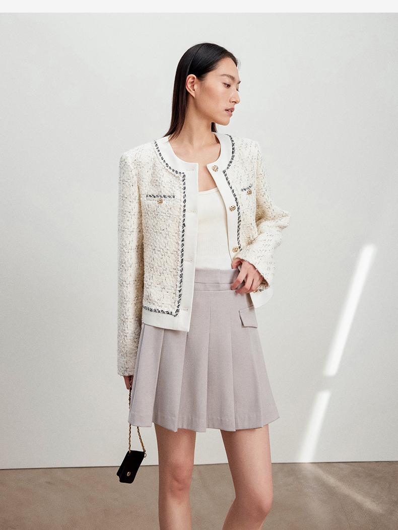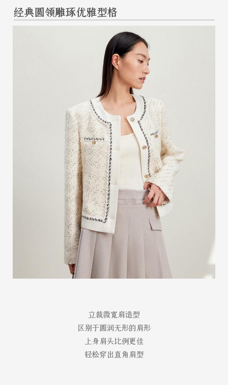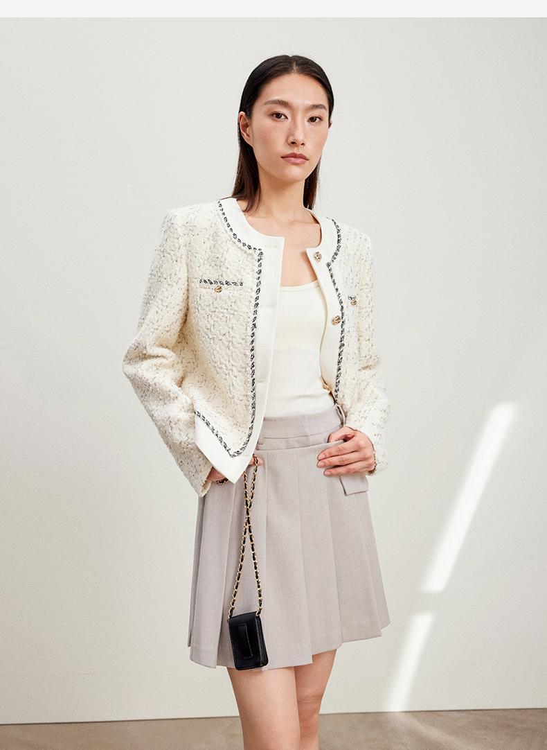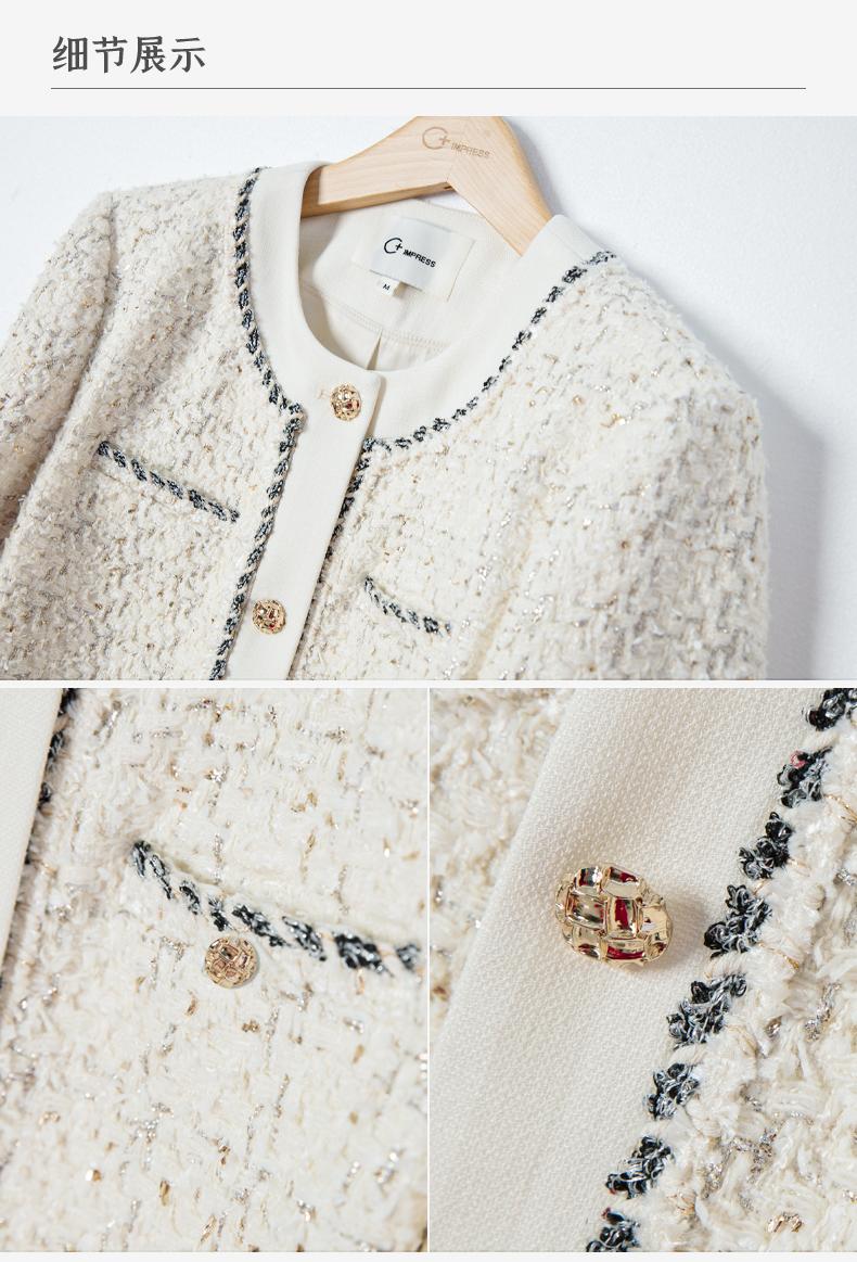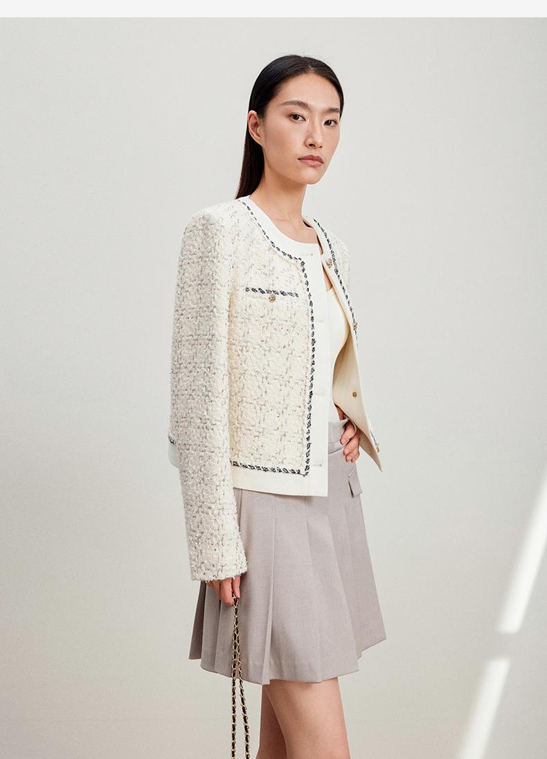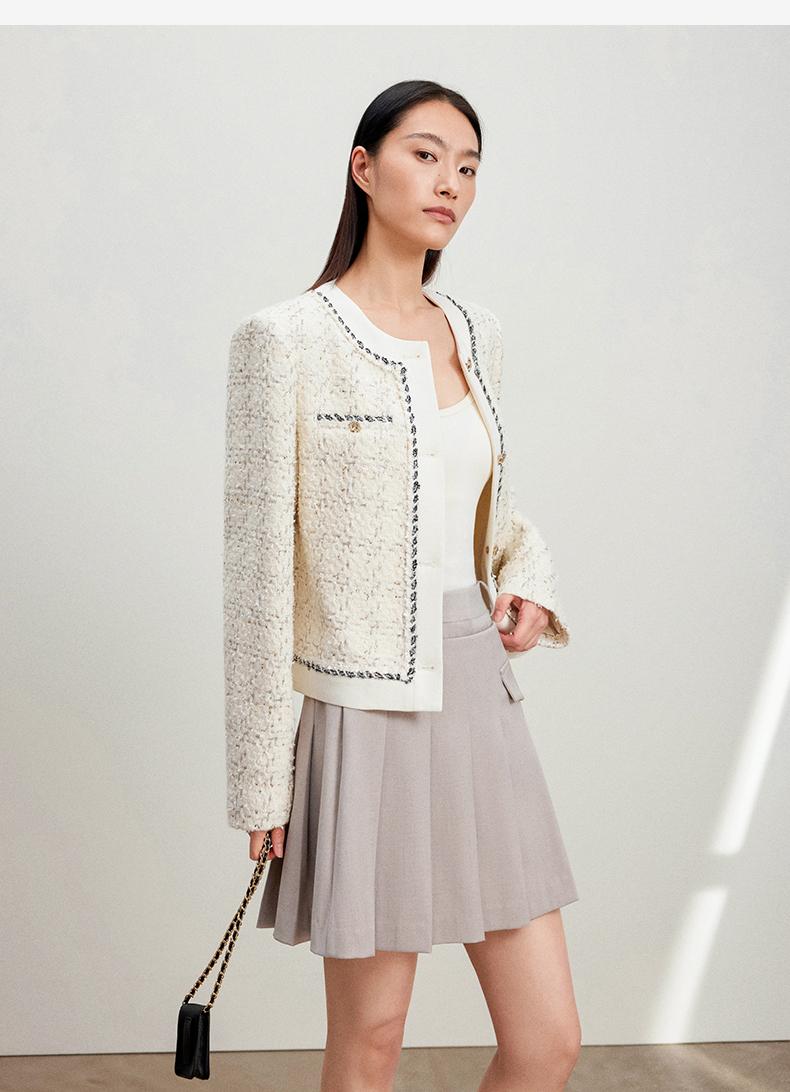 西嘉C+IMPRESS/西嘉千金玛德琳小香风外套女短款羊毛花呢拼接醋酸上衣WT2401029