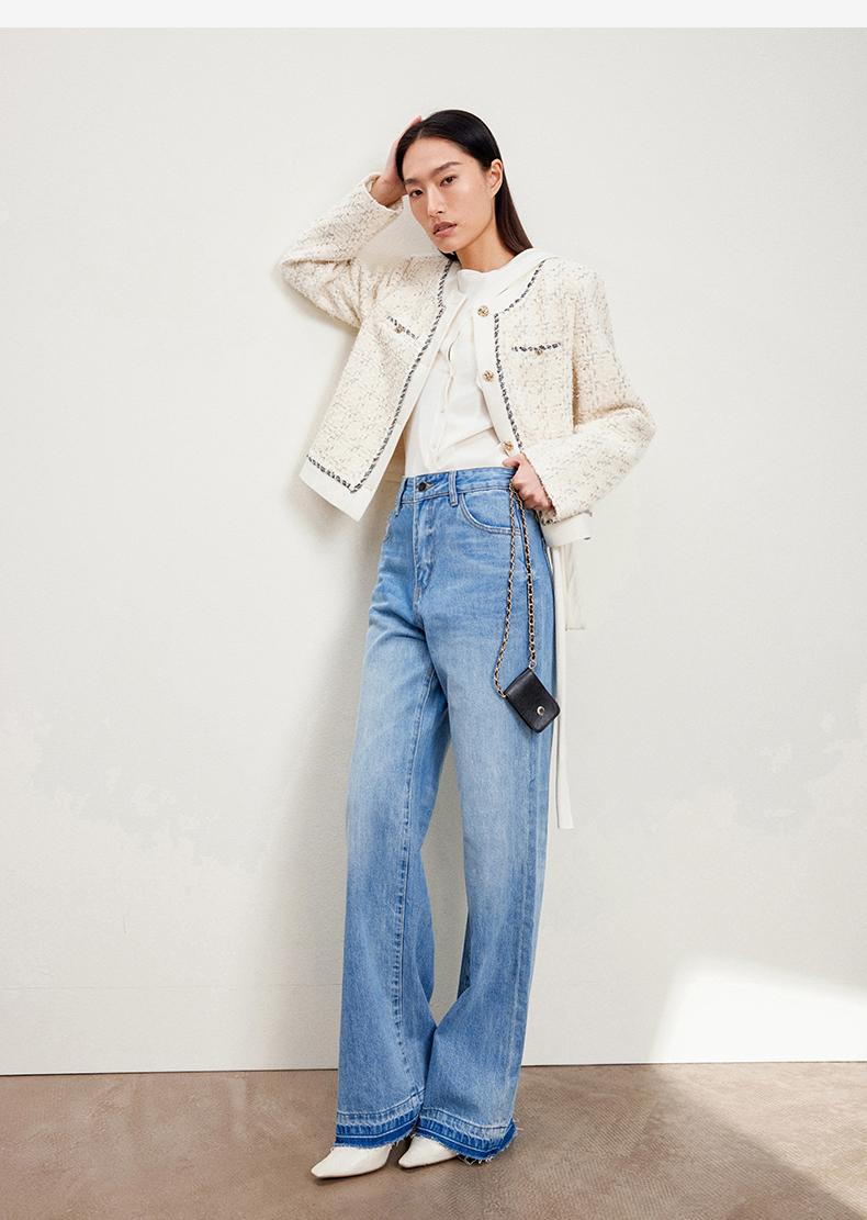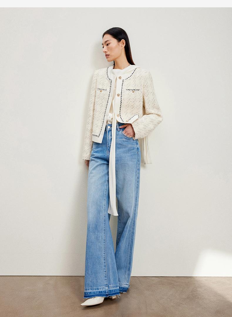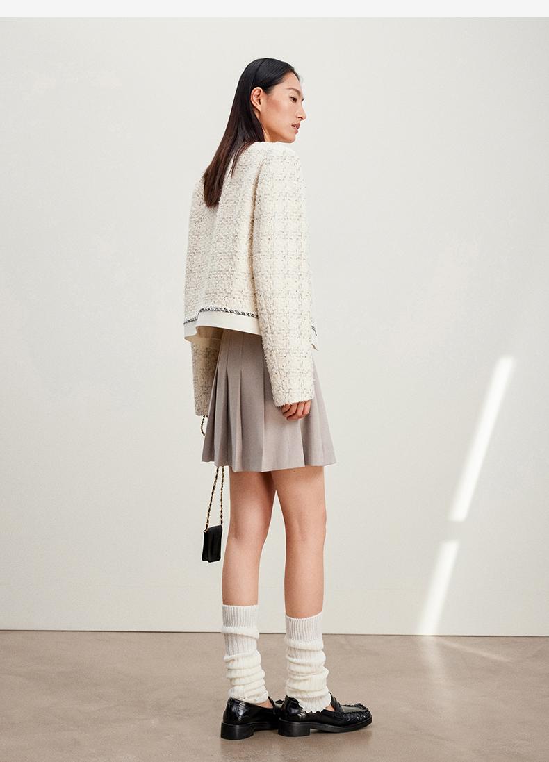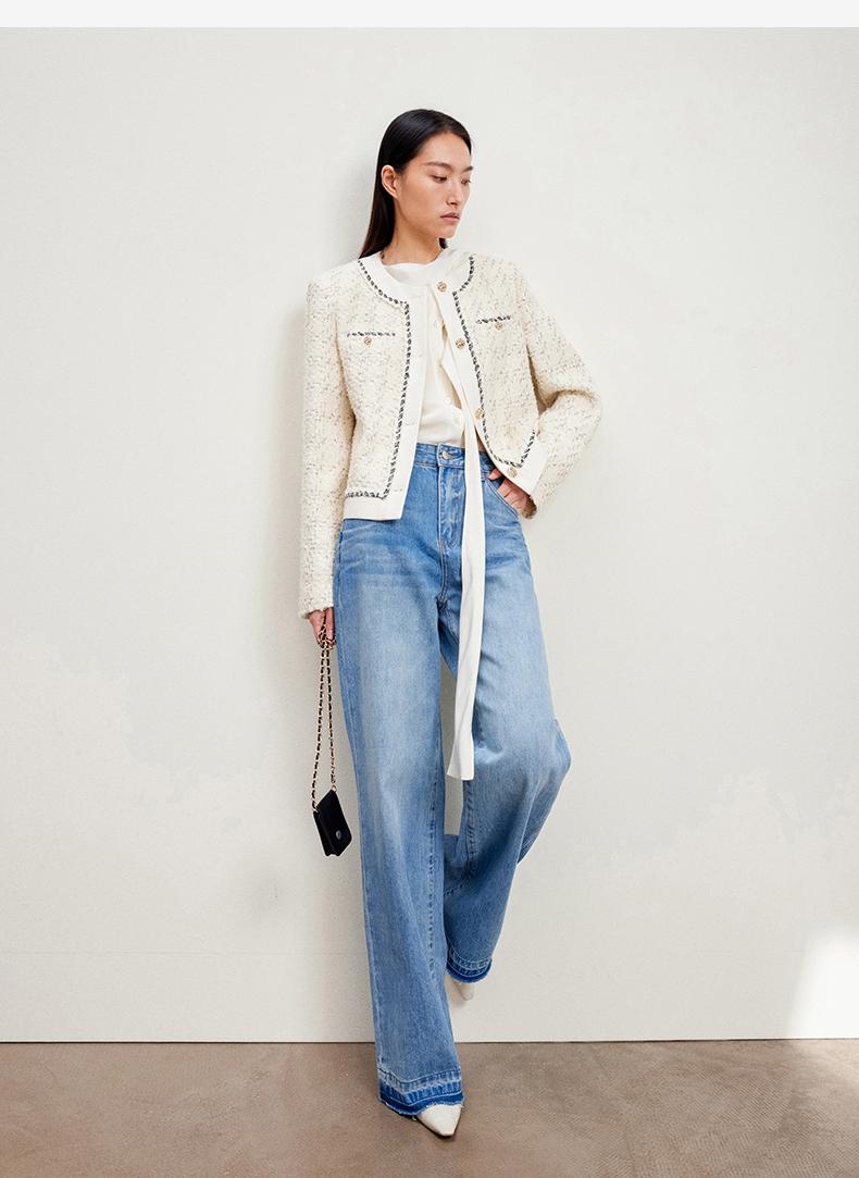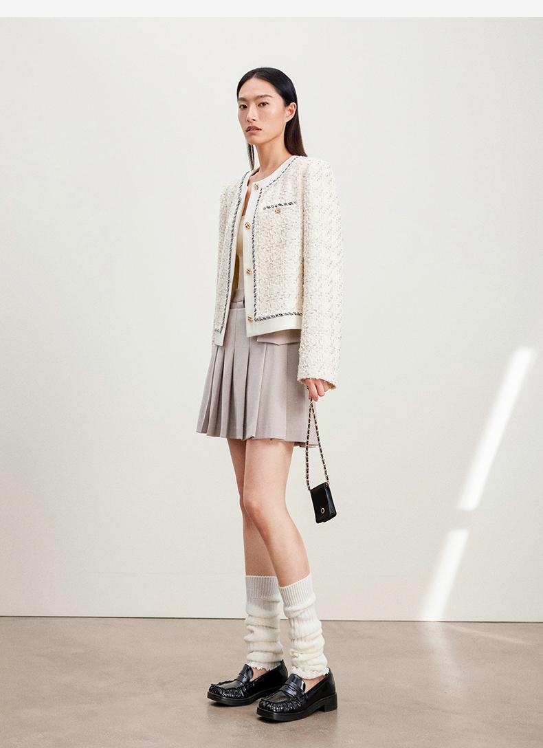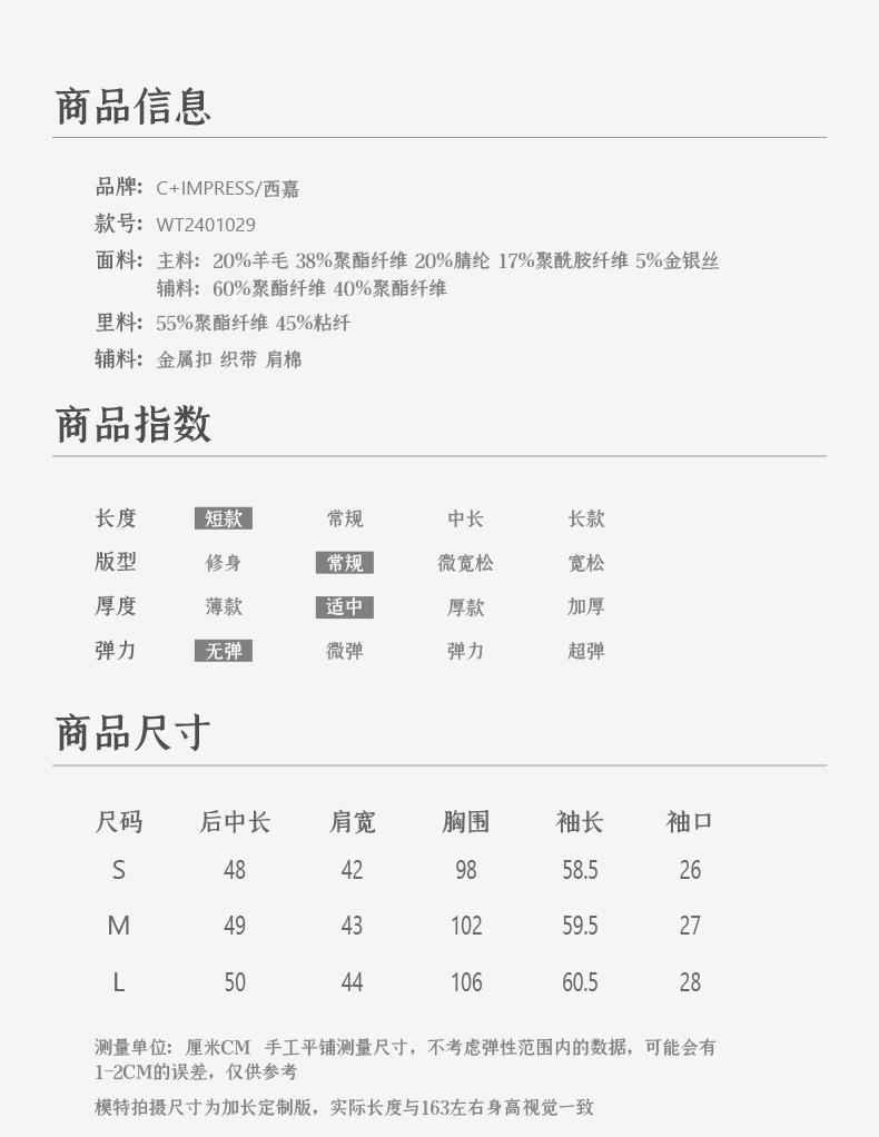 西嘉C+IMPRESS/西嘉千金玛德琳小香风外套女短款羊毛花呢拼接醋酸上衣WT2401029