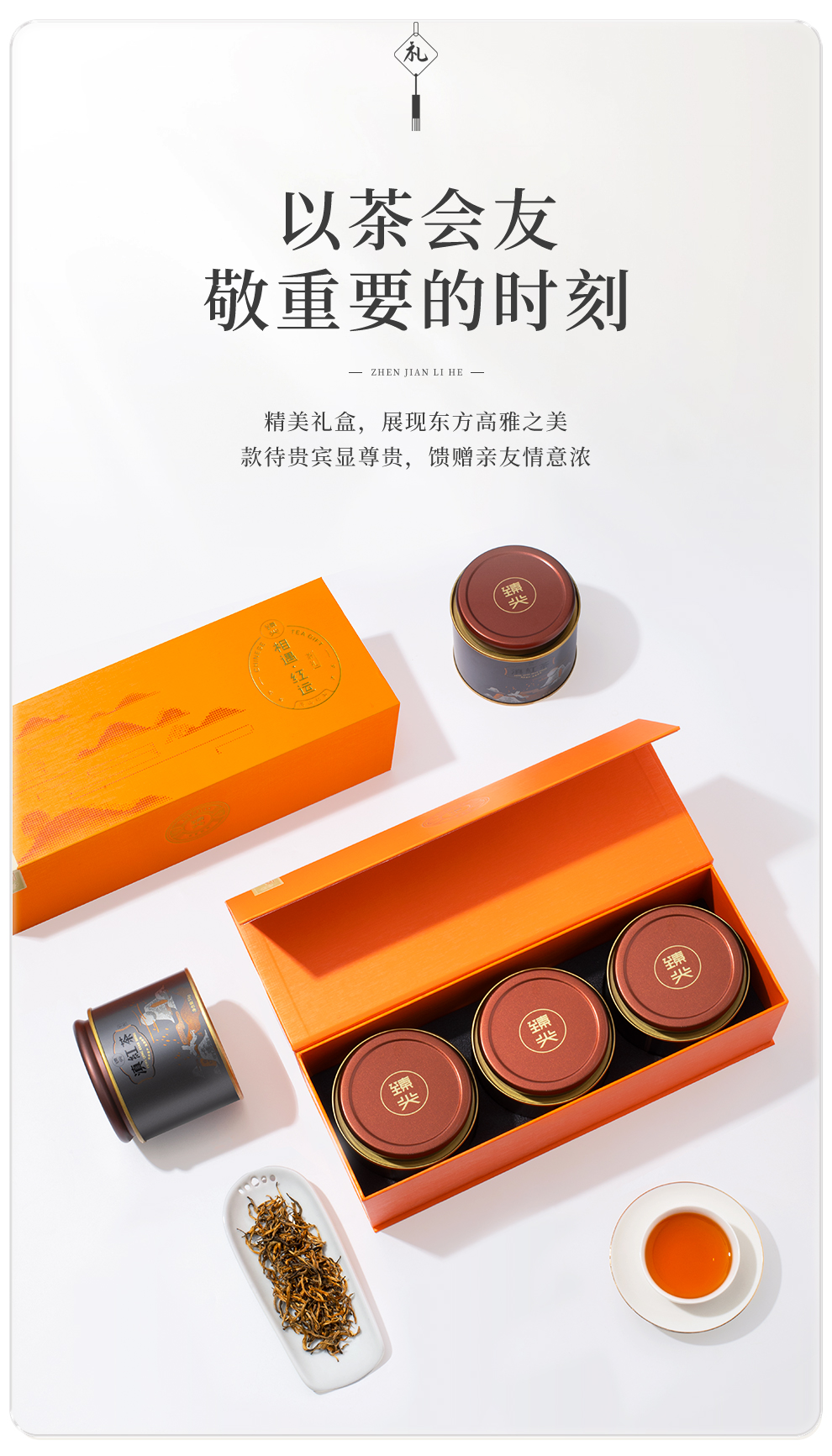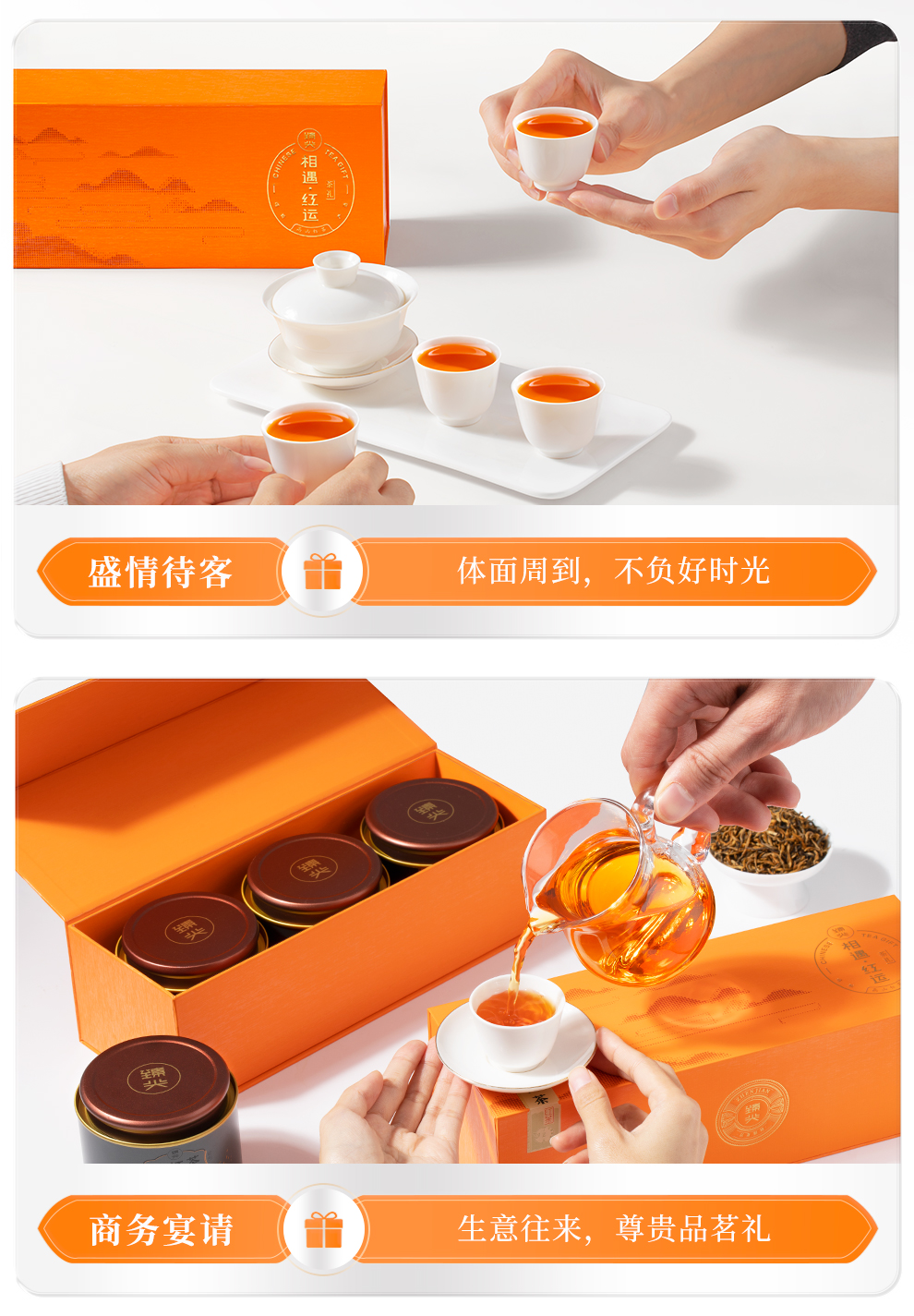 【臻尖-滇红相遇红运橙色礼盒】茶叶礼盒装特级滇红茶送人送礼长辈年货礼盒节日伴手礼官方正品
