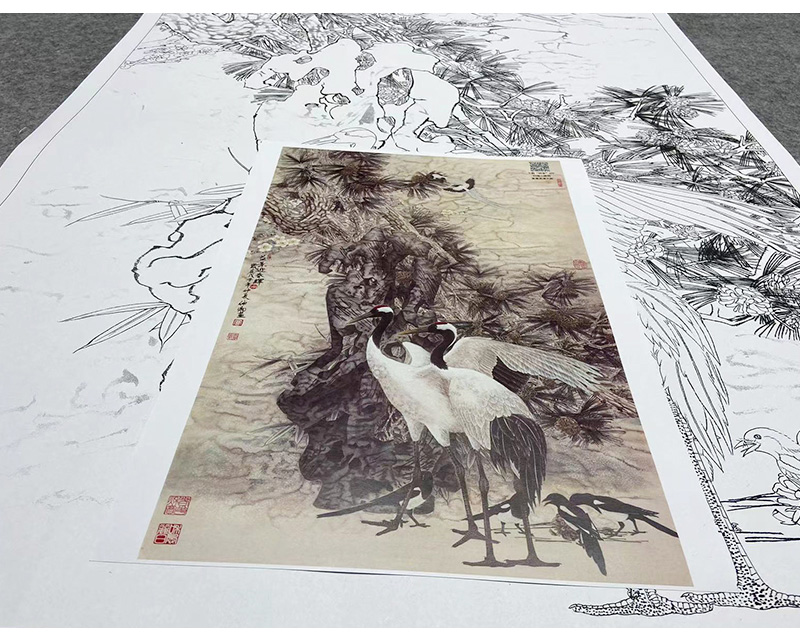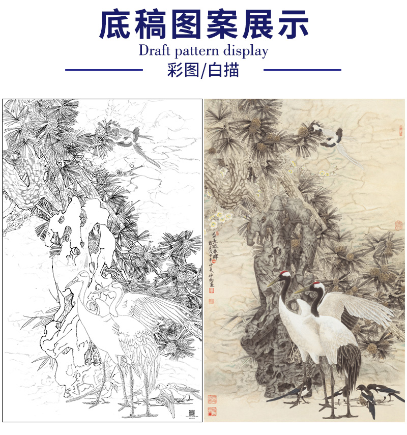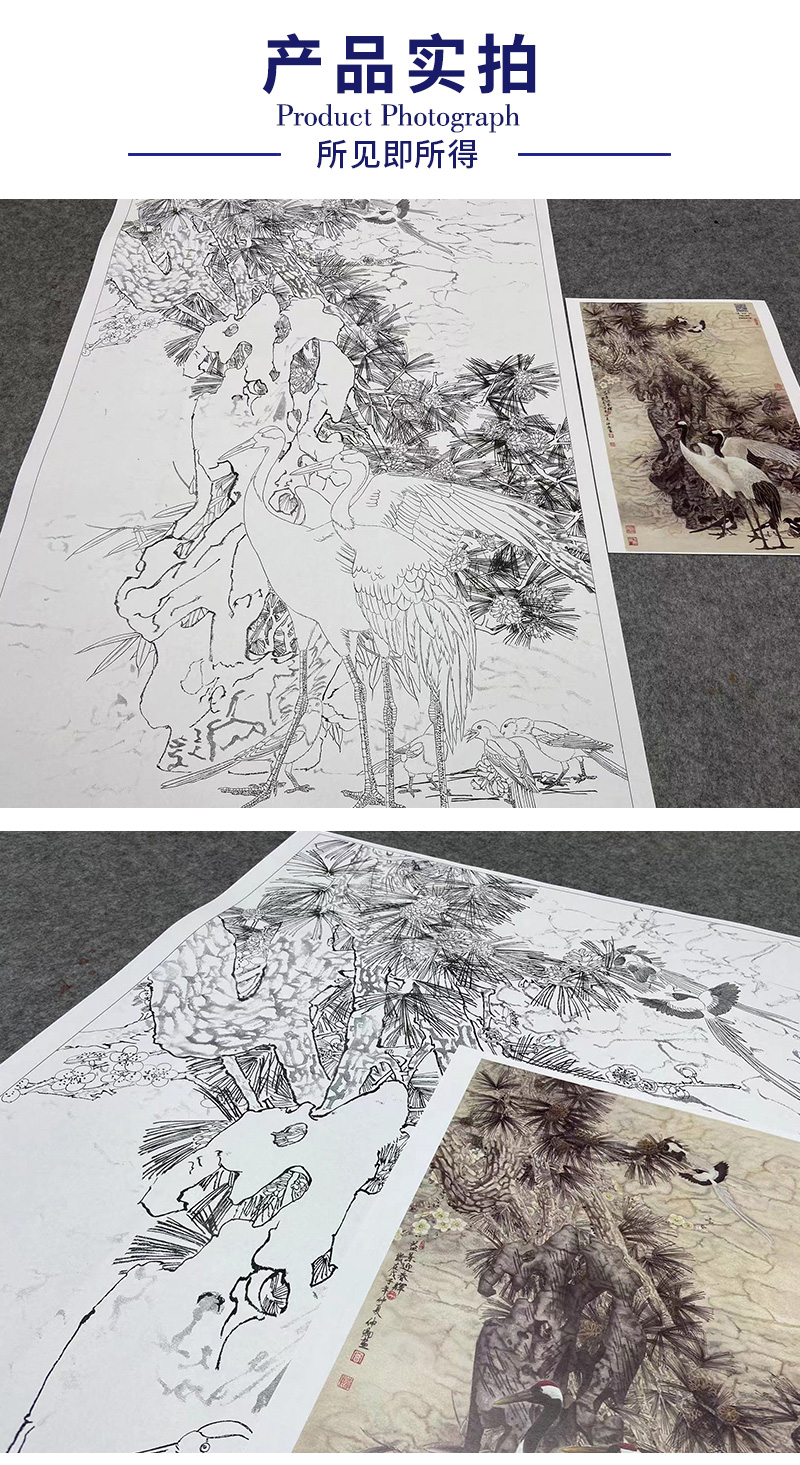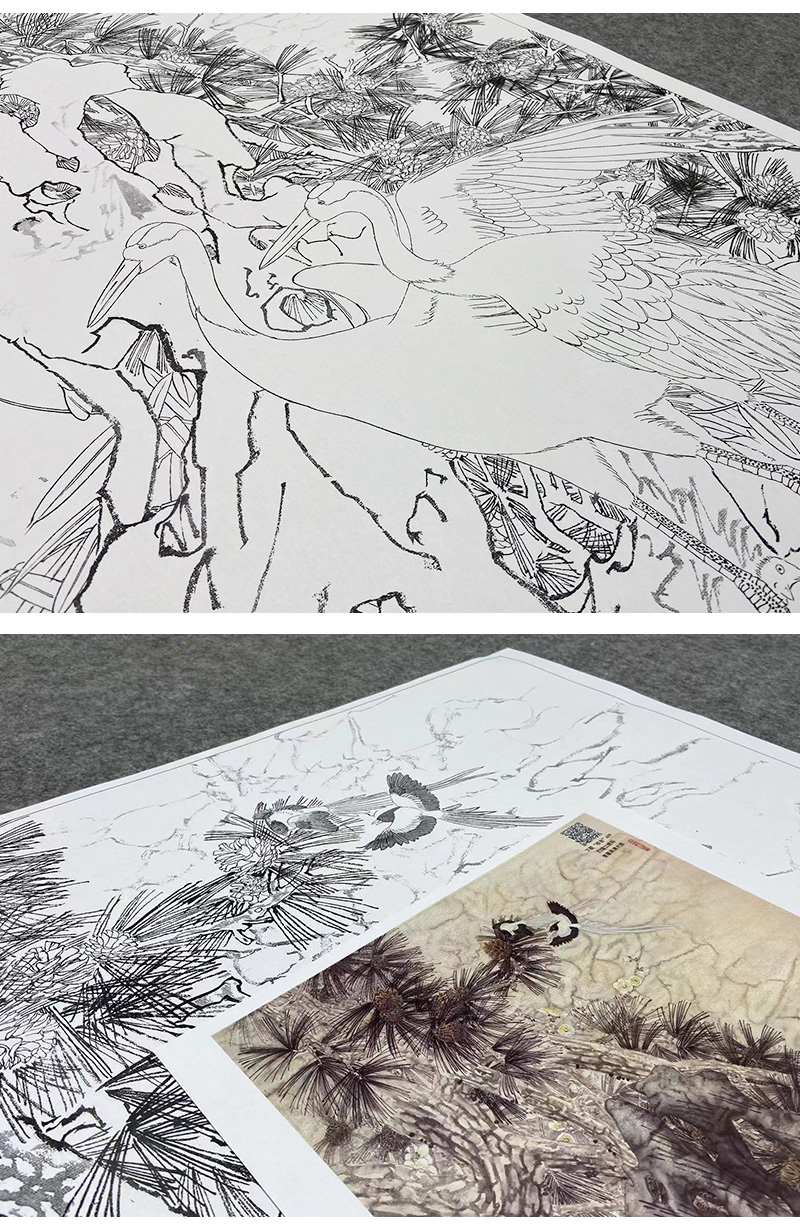 【大彩图】窦绅卿工笔画白描底稿《益景迎春晖》仙鹤临摹勾线花鸟线稿HN14