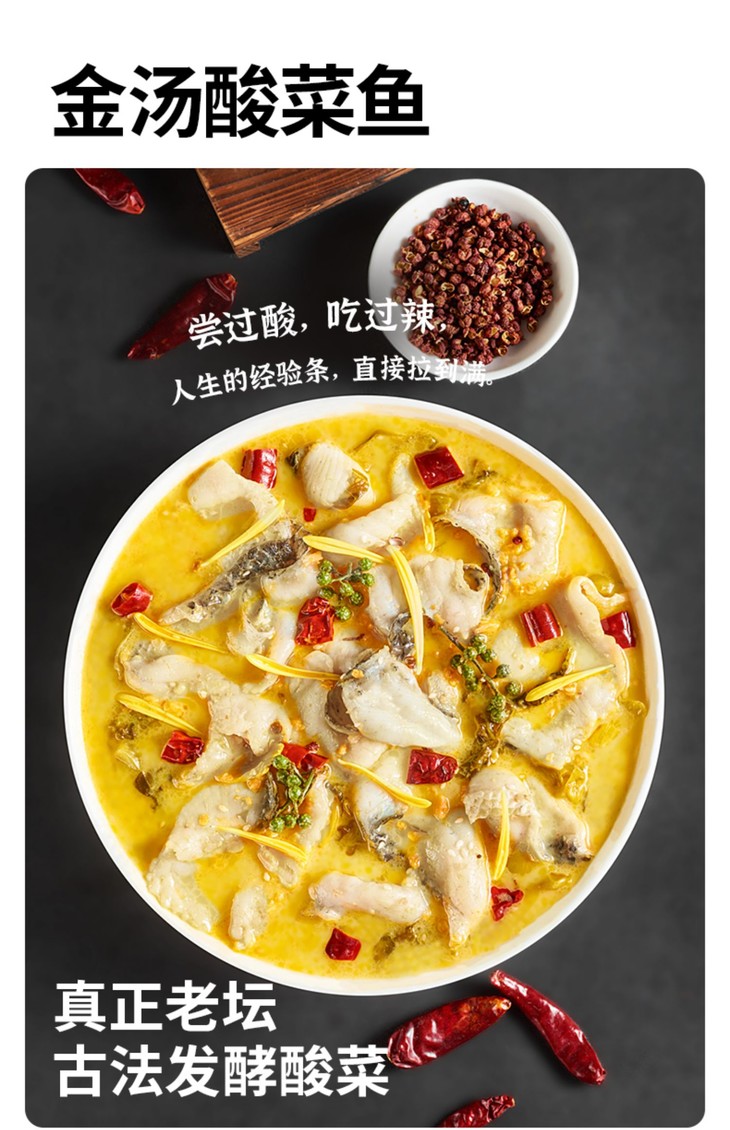 【肉食精选】金汤酸菜鱼 鲜嫩滑爽酸香浓 采用鲜活免浆黑鱼片 活鱼现切 180天老坛腌制 12年老配方地道酸汤 5分钟享受大餐