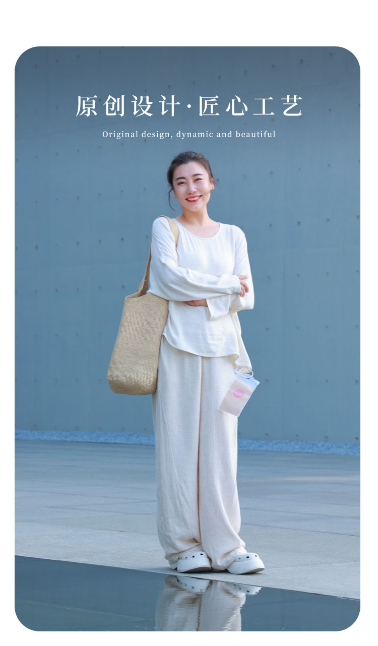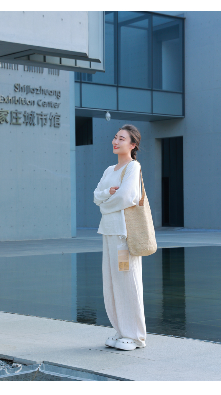 预售:2022春款阔腿裤(20709251-线纹白)