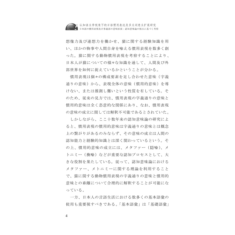 书名:认知语义学视角下的日语惯用表达及多义词意义扩展研究