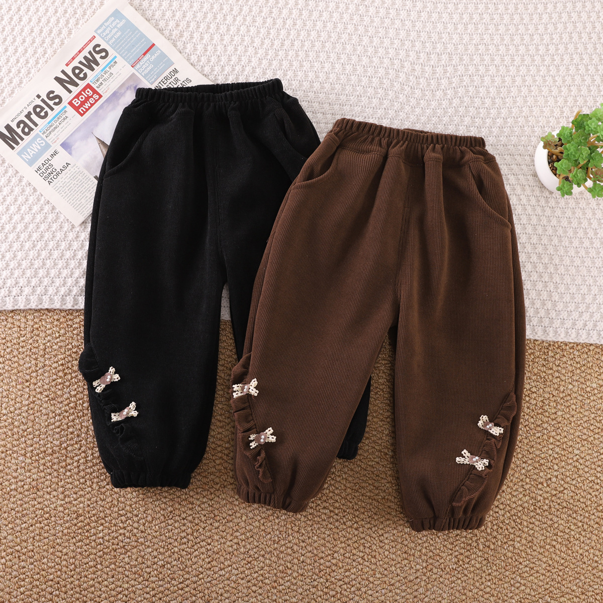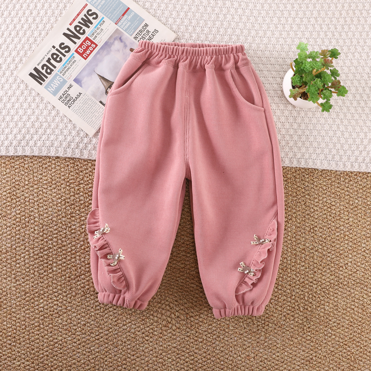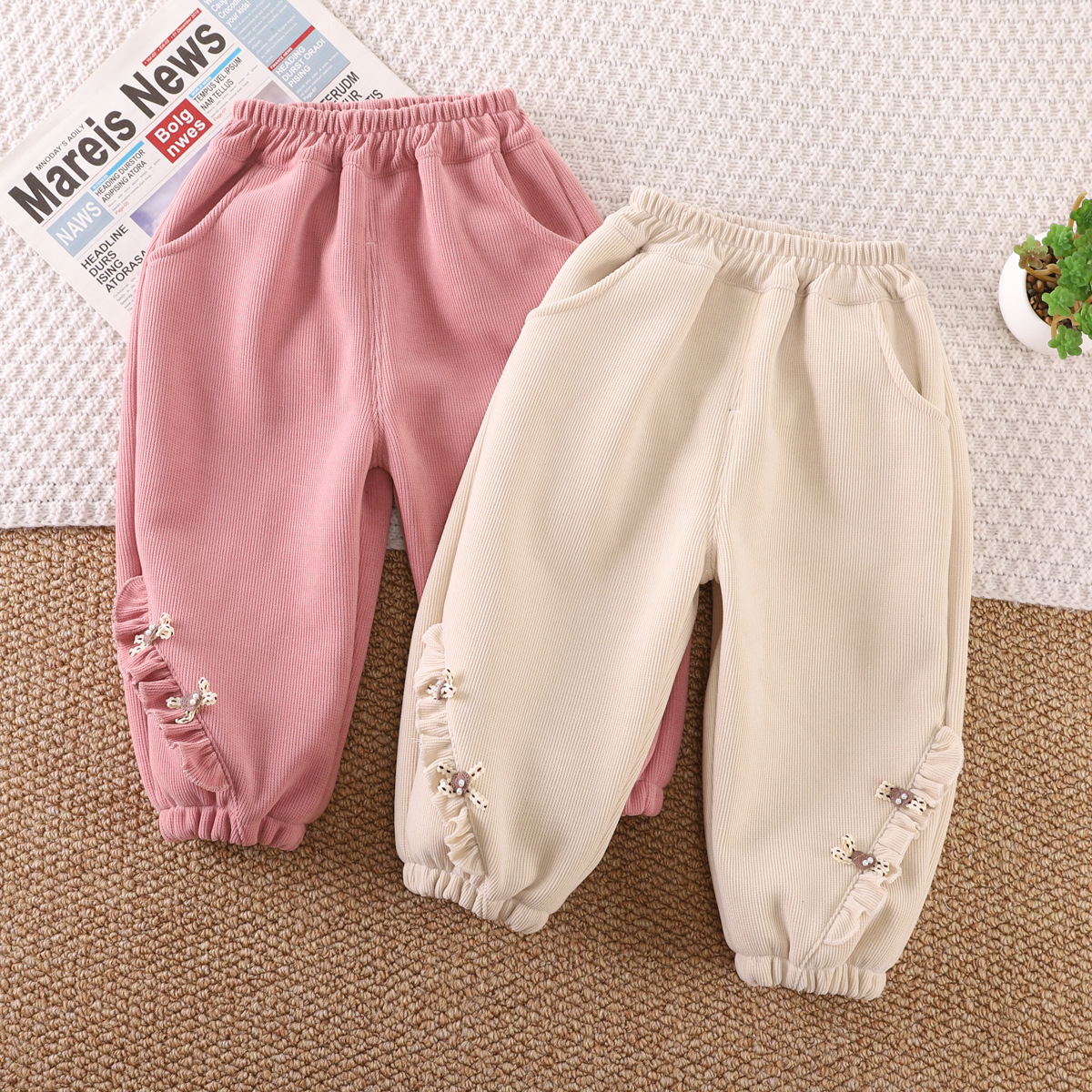 【柔软舒适,宝宝舒心穿,妈妈放心选】女童秋冬季加绒裤子 新款休闲宝宝冬天一体绒休闲裤 中小童保暖卫裤-QQ
