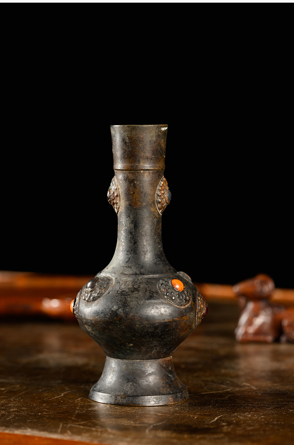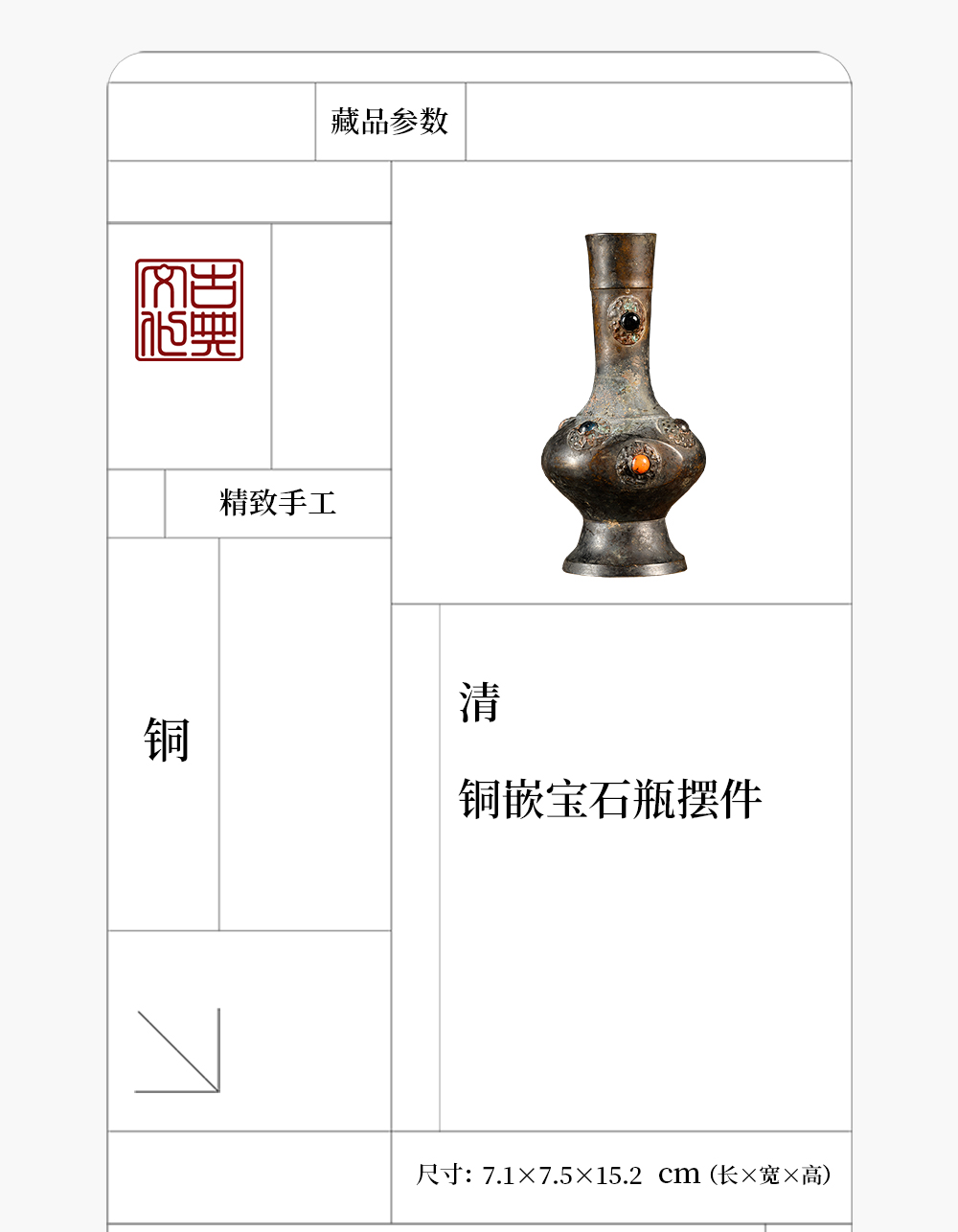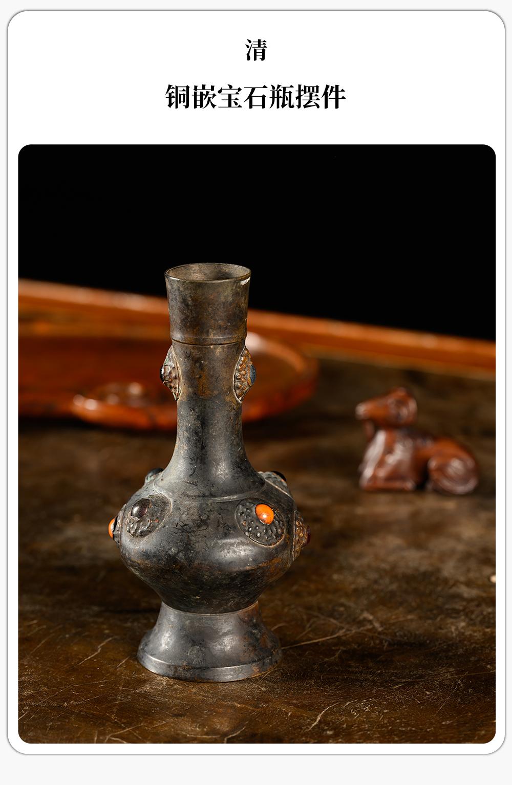 清 铜嵌宝石瓶摆件