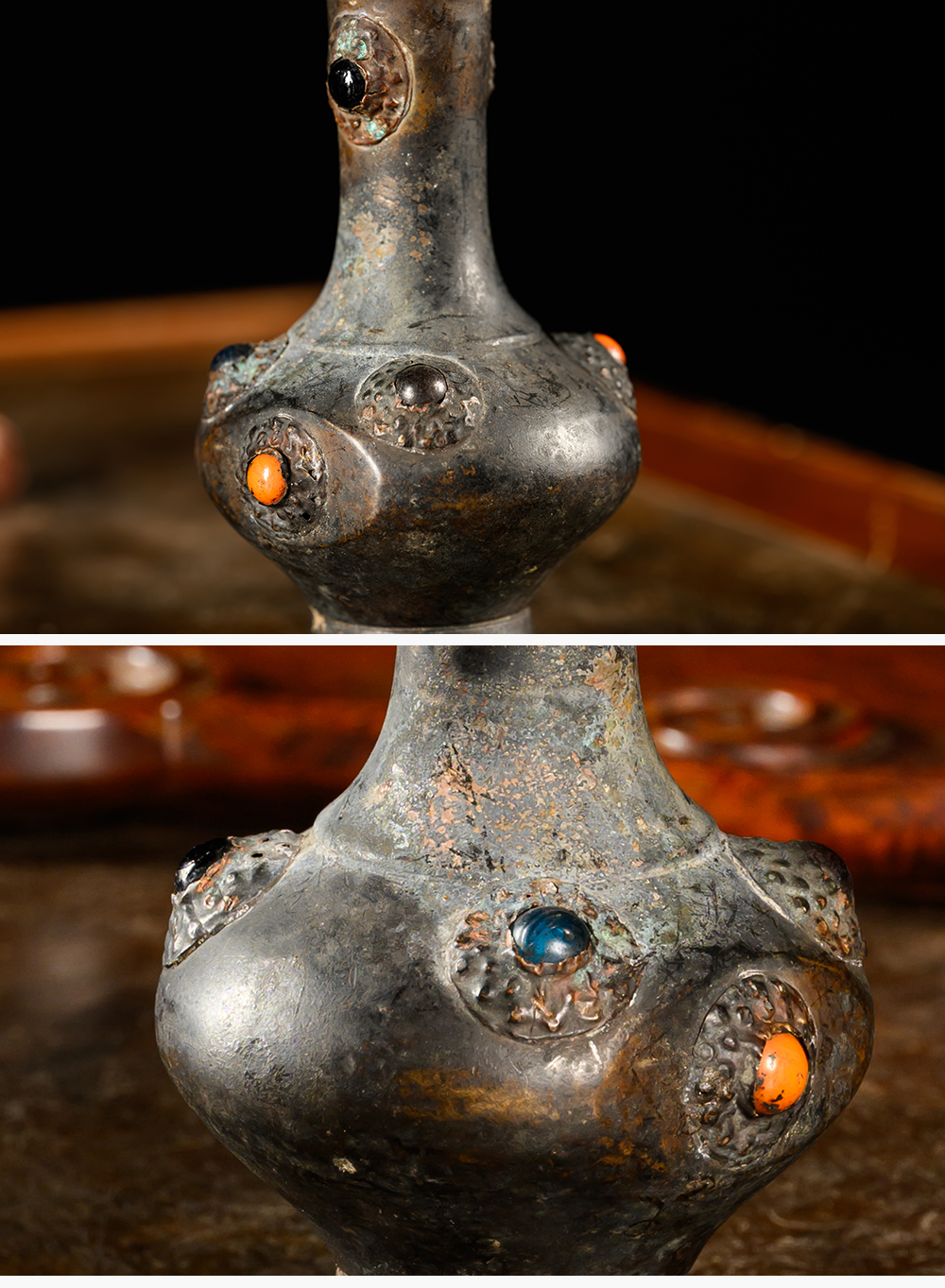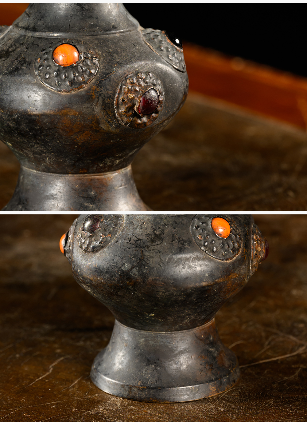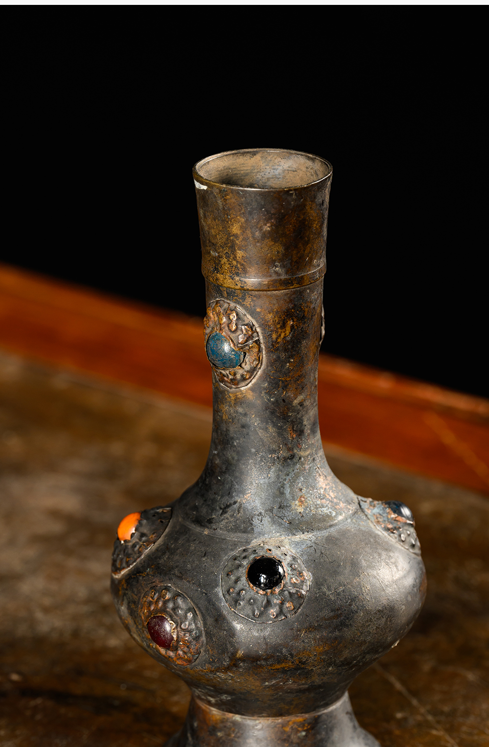 清 铜嵌宝石瓶摆件