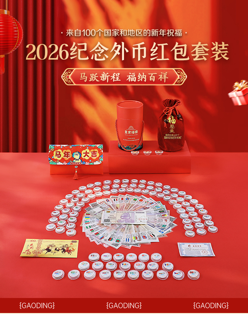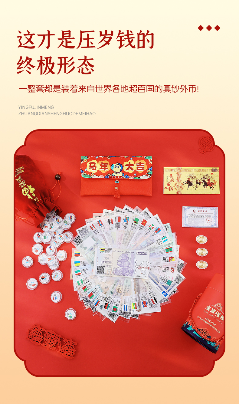 【2026年马到成功新年百国纪念外币红包套装】一款超绝的压岁钱神器,装着来自世界各地超百国的真钞外币