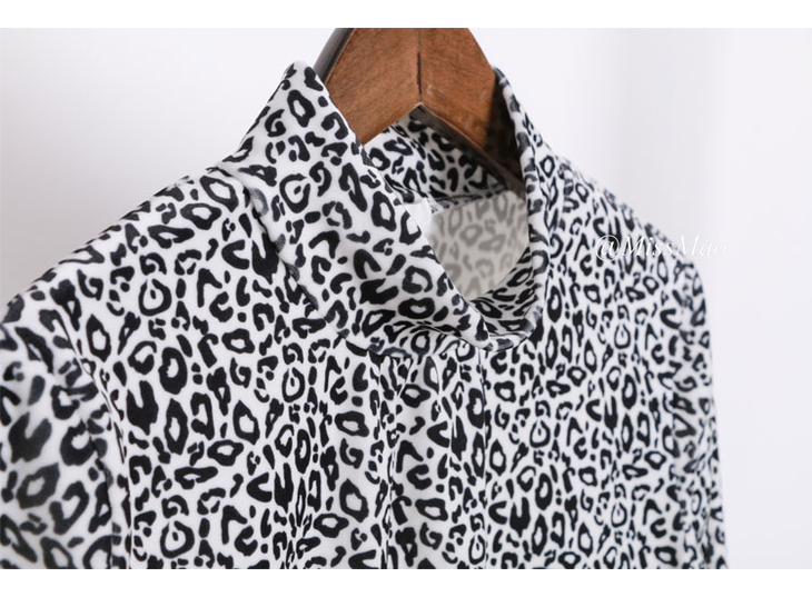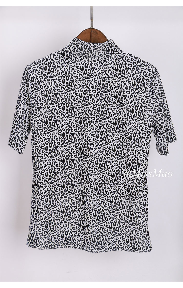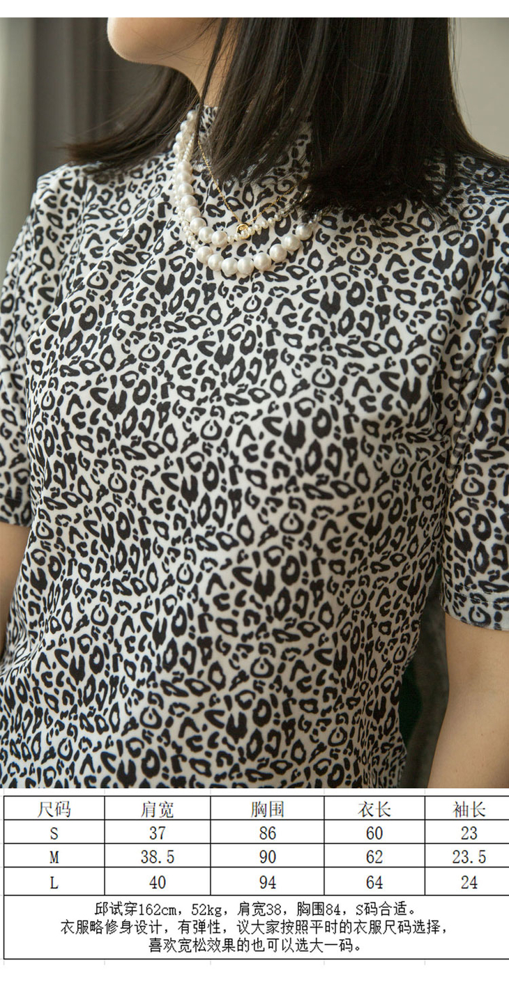 【à perles】浪漫风中领短袖丝绒T浪漫四色小豹纹、优雅紫,雾霾蓝,樱花粉【清仓,不退不换】