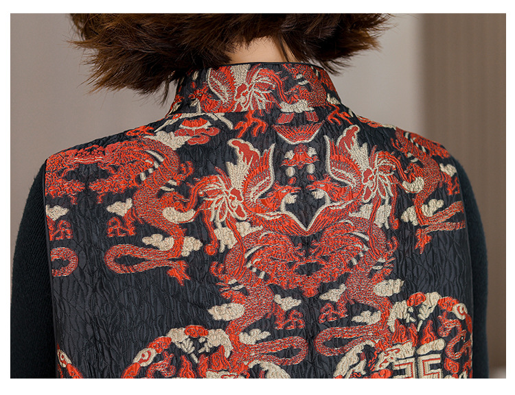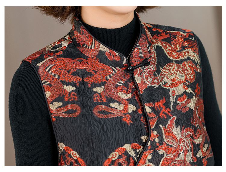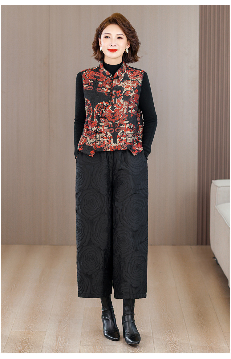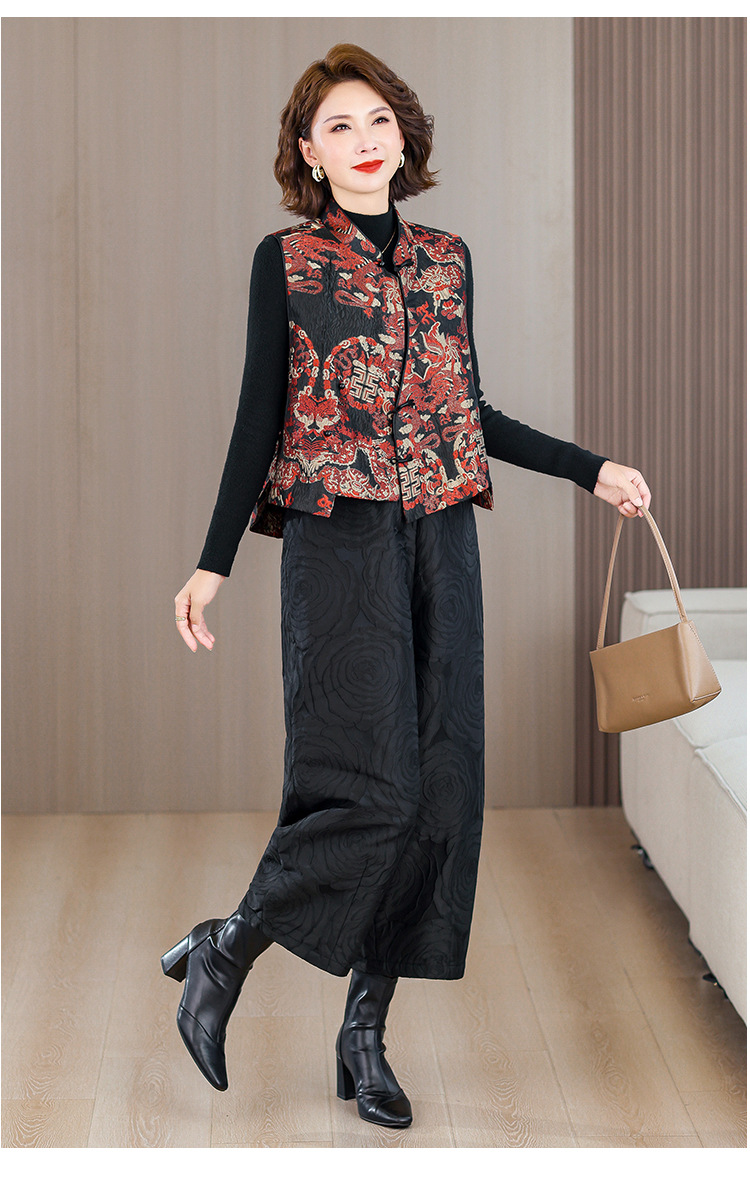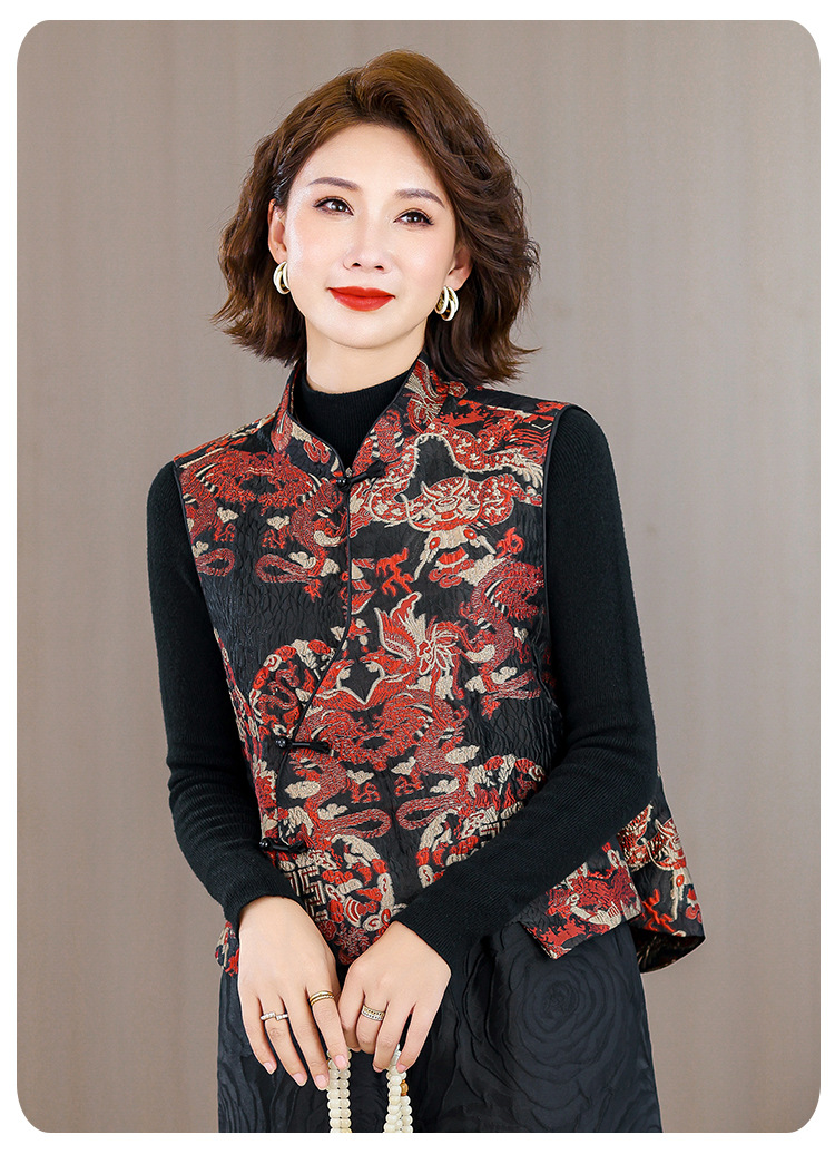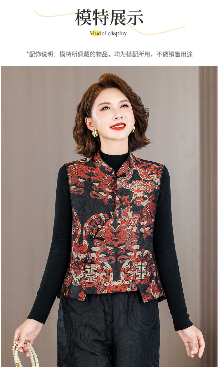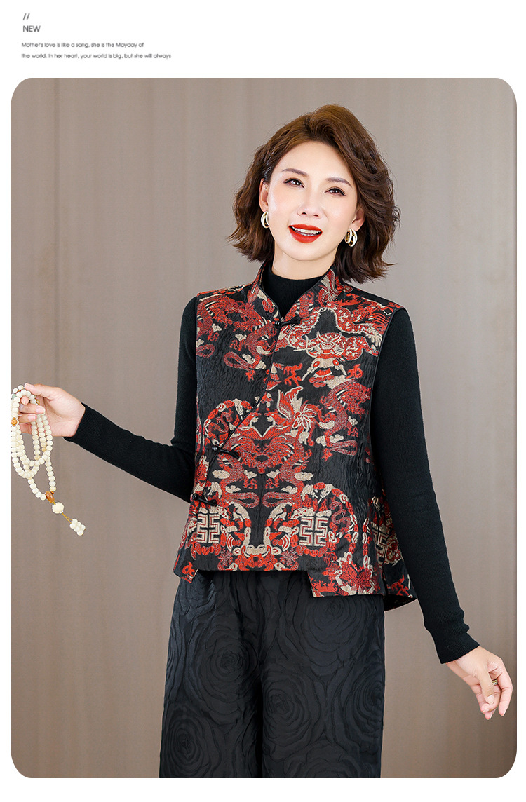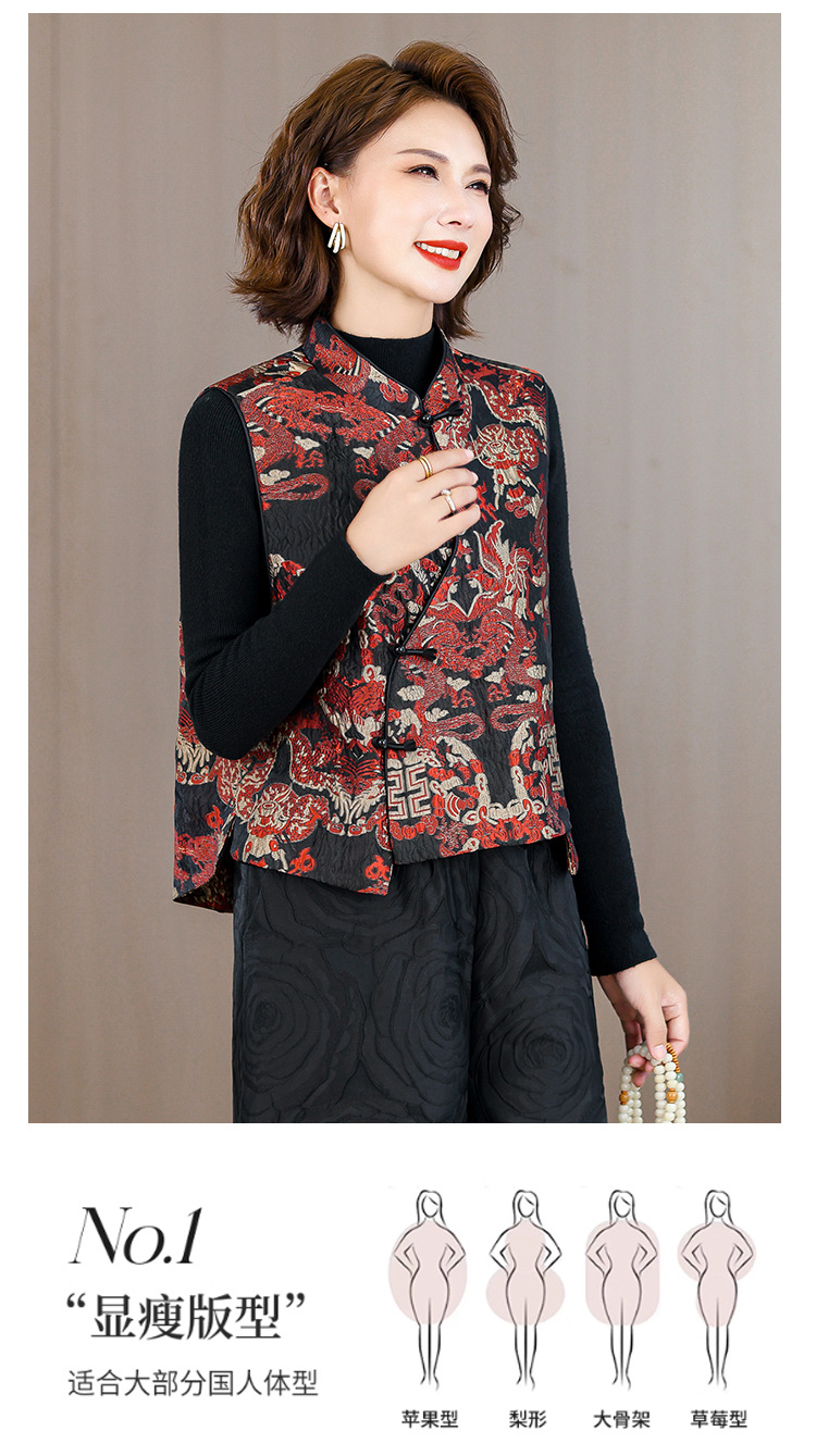 2025秋冬新款新中年妈妈中式国风加厚马夹立领提花夹棉马甲