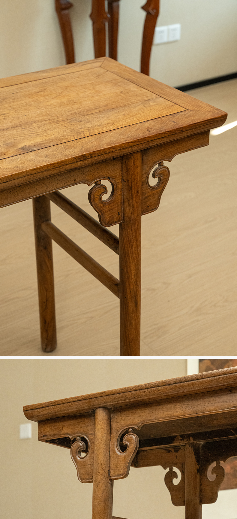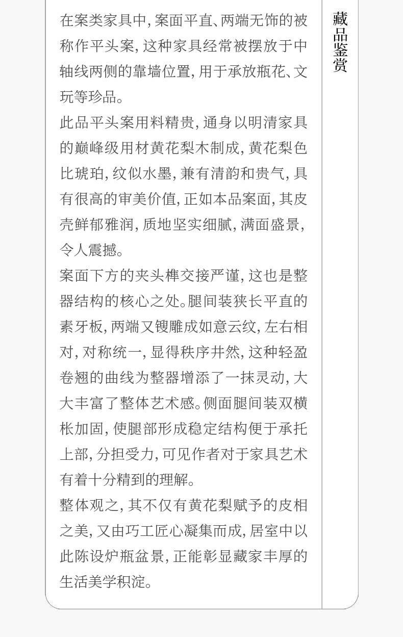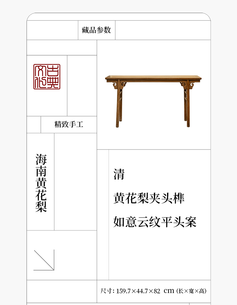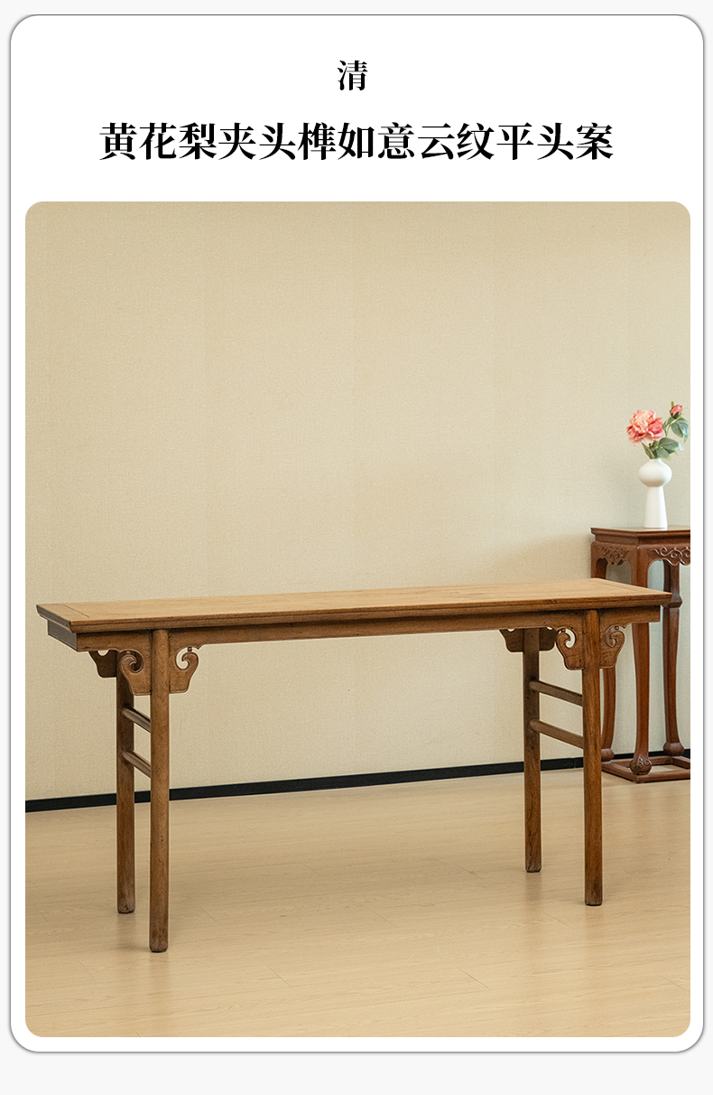 清 黄花梨夹头榫如意云纹平头案
