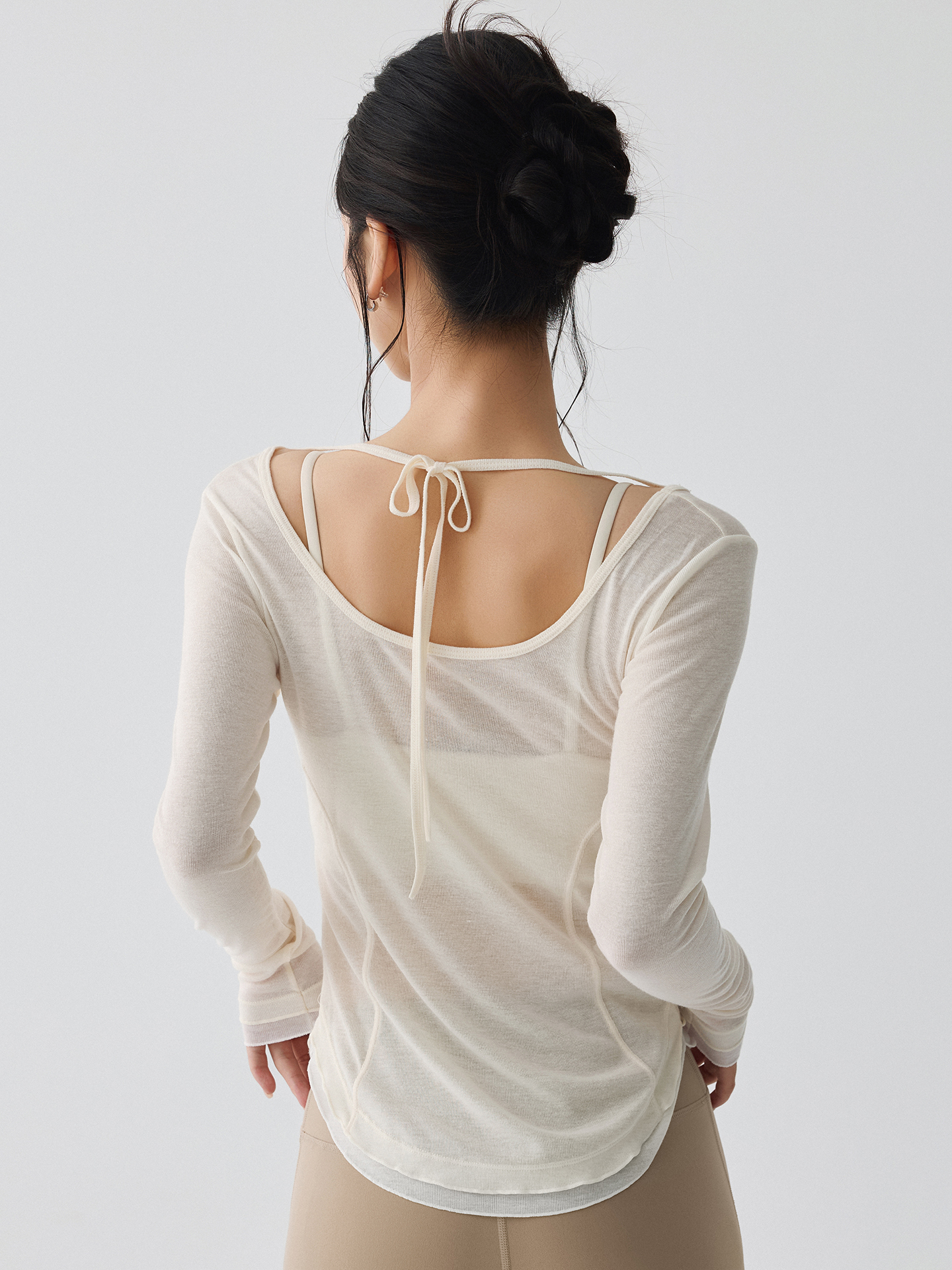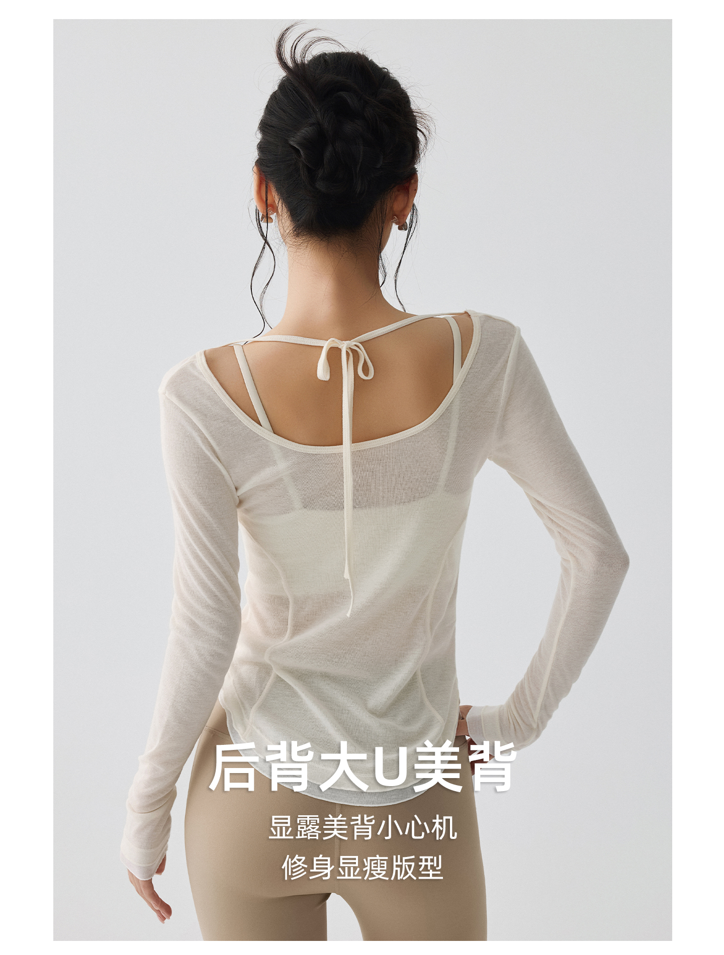 跃牌【安琪拉系列】新款宽松休闲高级感瑜伽服罩衫下摆轻薄透气性感露背长袖运动罩衫CX7411