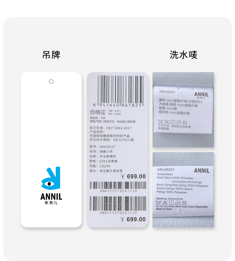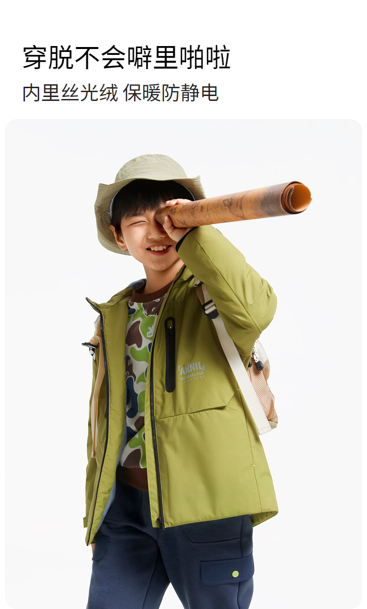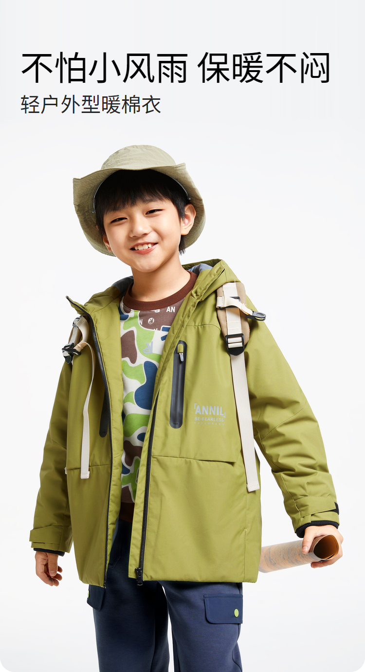 男童轻户外暖棉衣中长款安奈儿童装实体店同款AB435527
