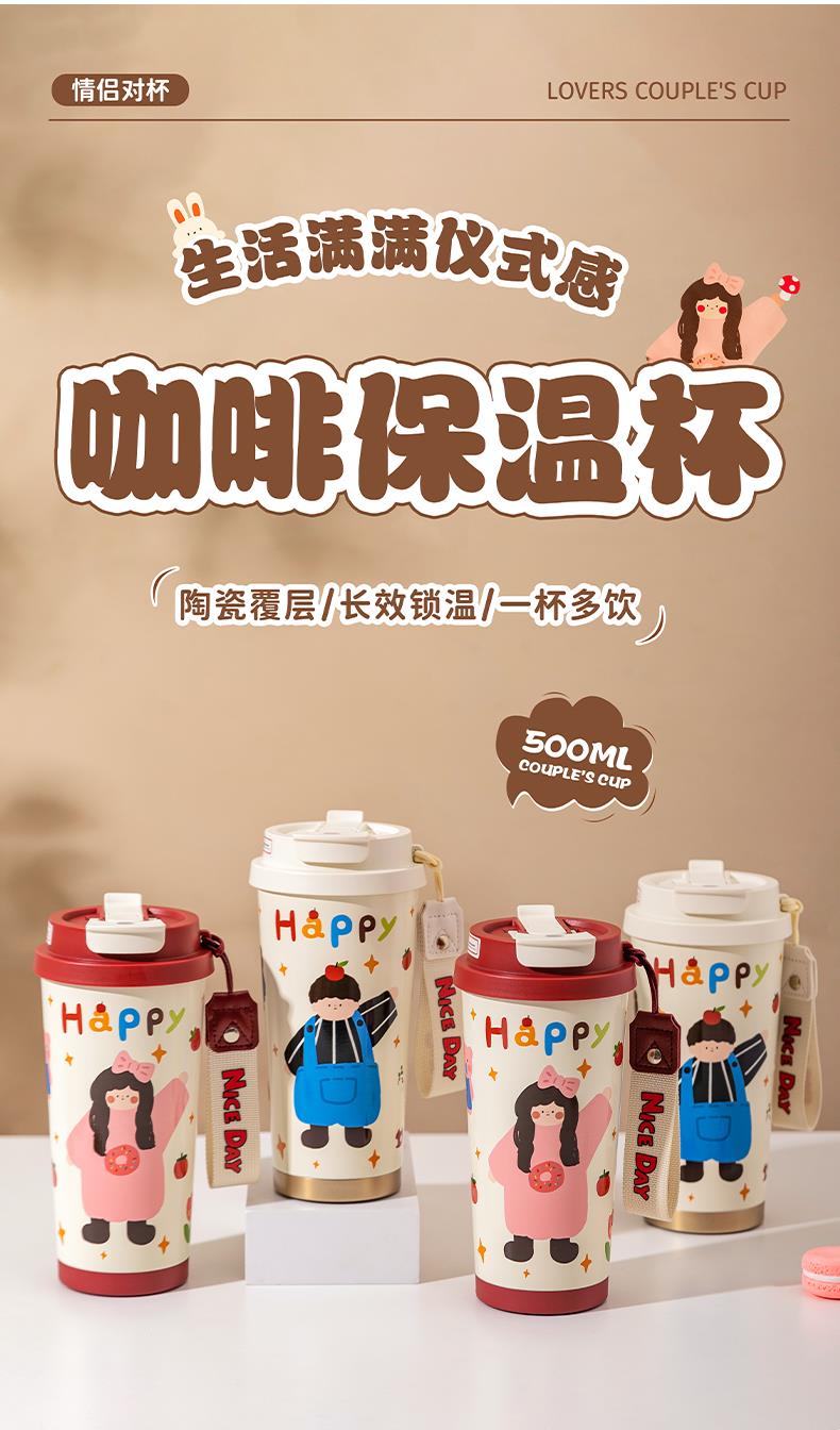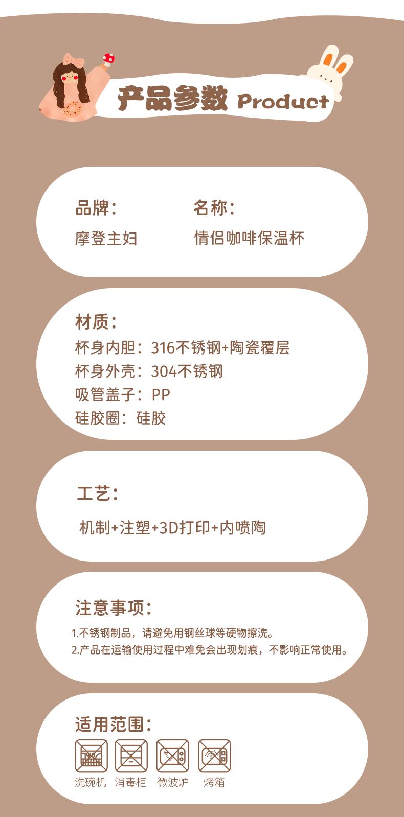 摩登主妇 咖啡保温杯乔迁新居伴手礼便携水杯可爱杯子情侣对杯礼盒
