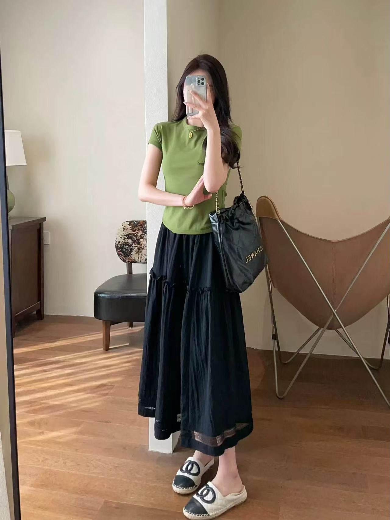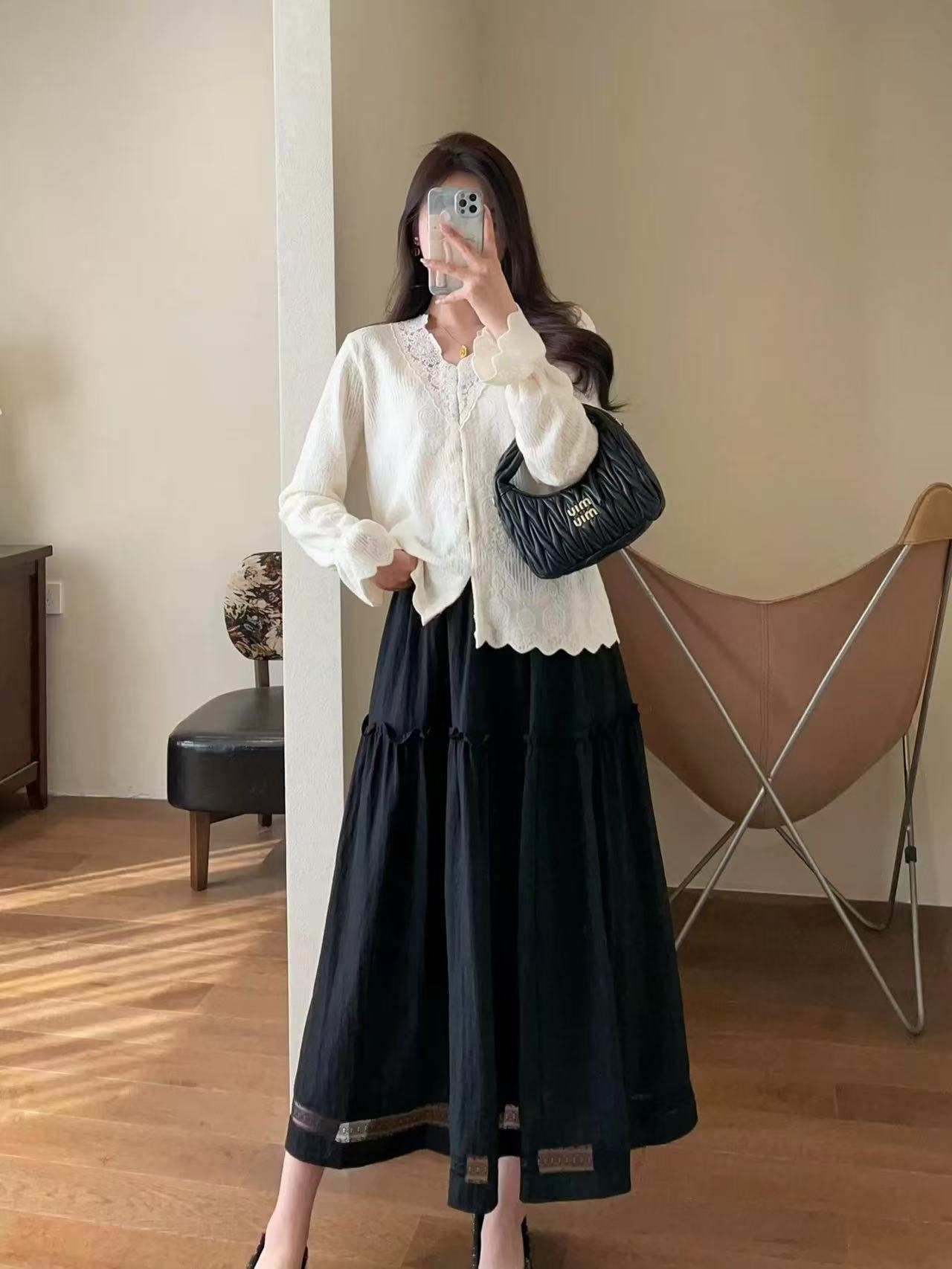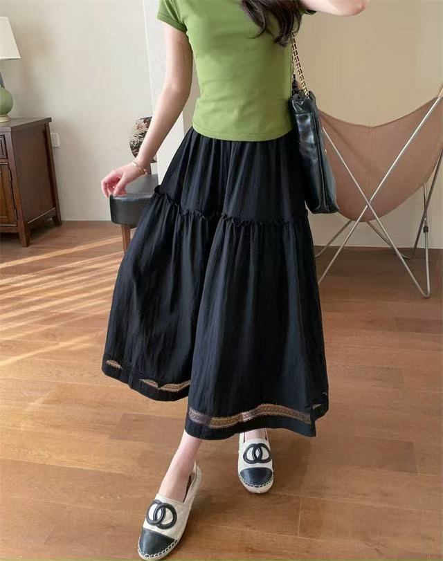 半裙系-6811拼接木耳边蕾丝镂空夏季半身裙-喜出