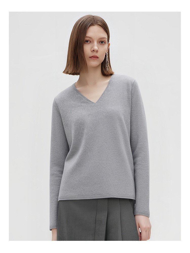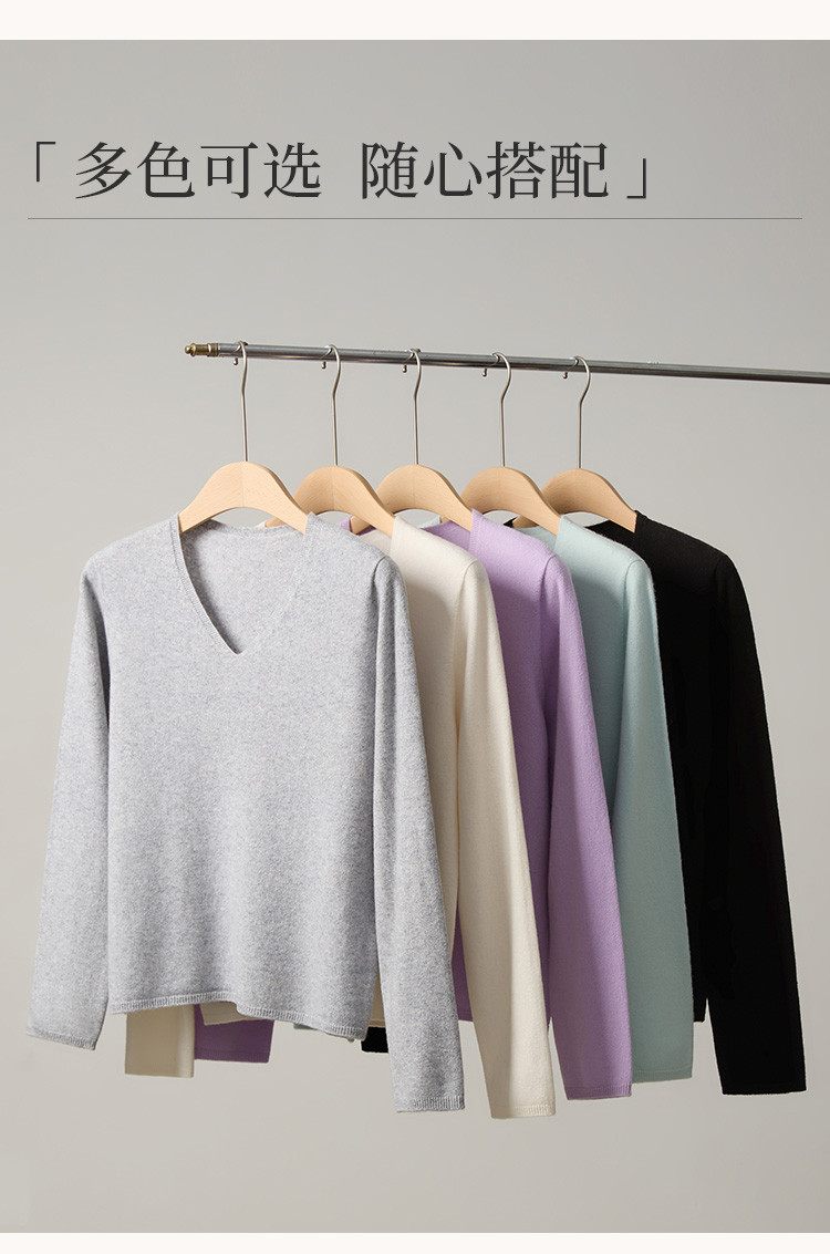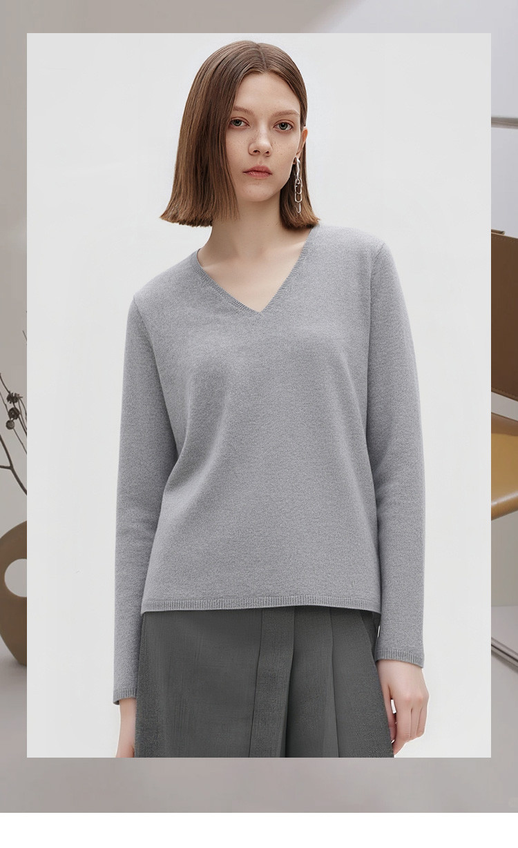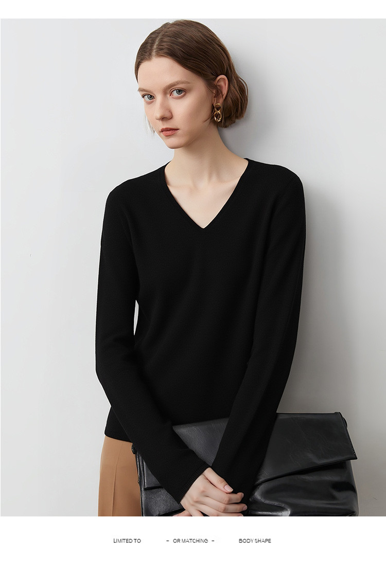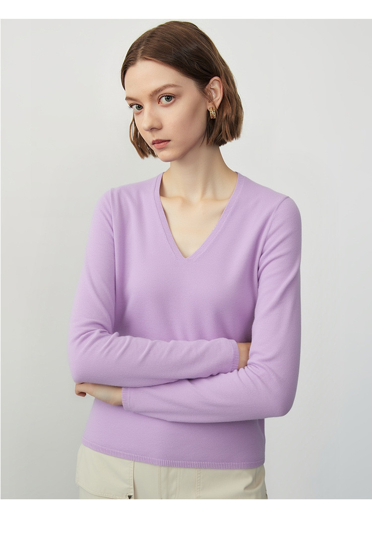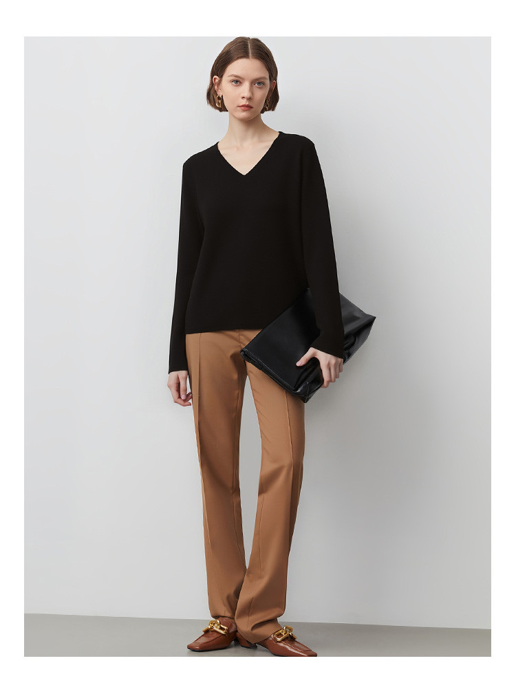 罗蒙秋冬女士V领羊毛衫套头百搭打底针织衫女宽松舒适毛衣内搭上衣女