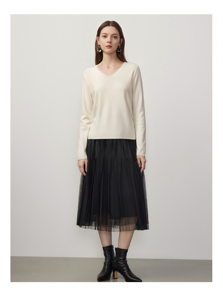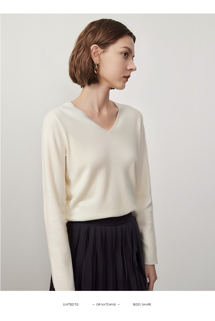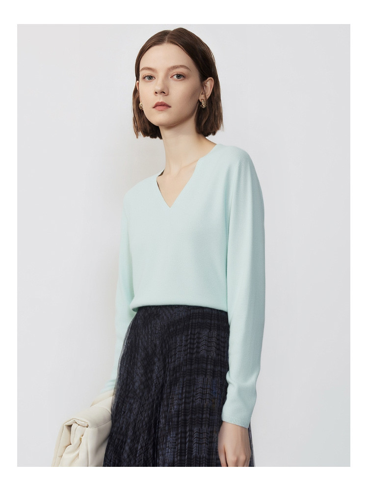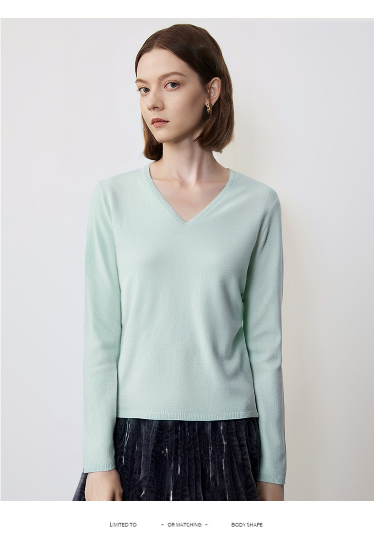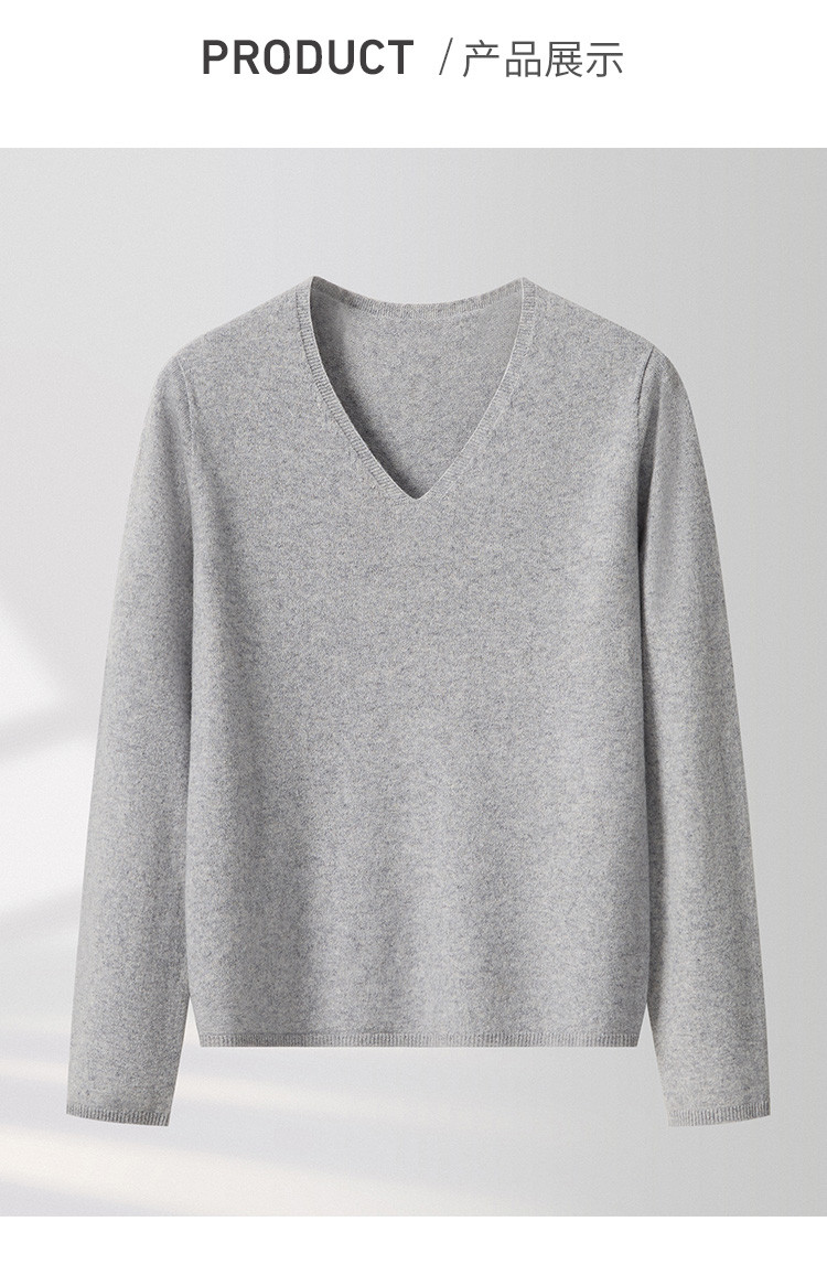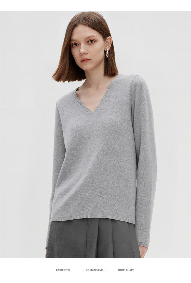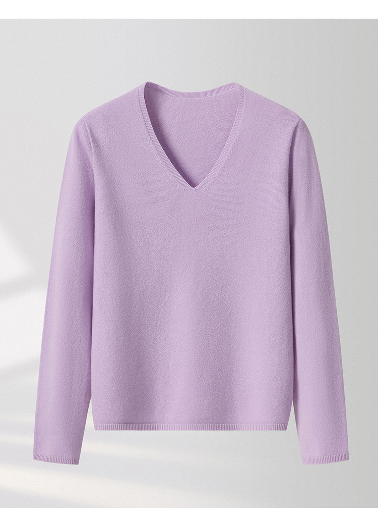 罗蒙秋冬女士V领羊毛衫套头百搭打底针织衫女宽松舒适毛衣内搭上衣女