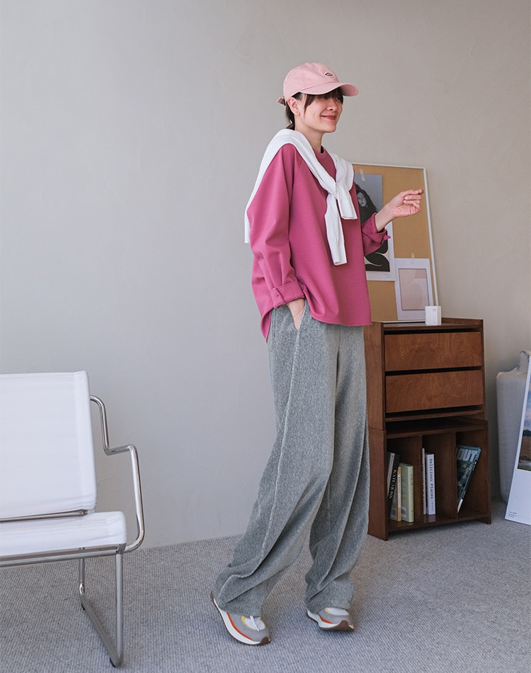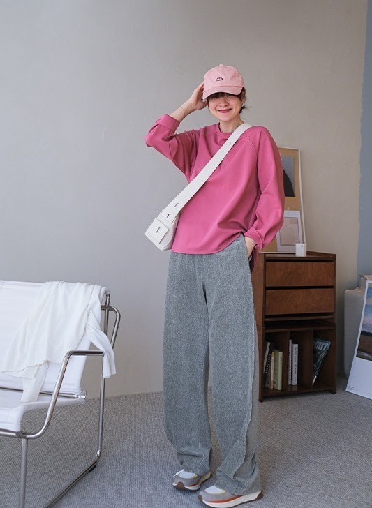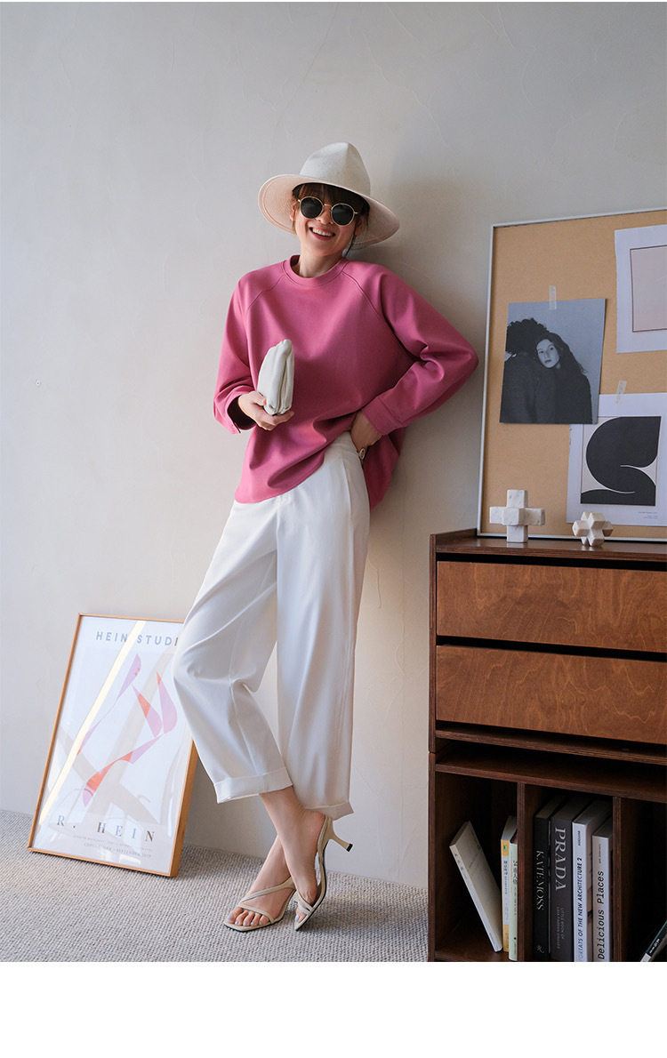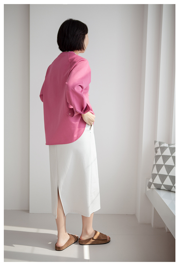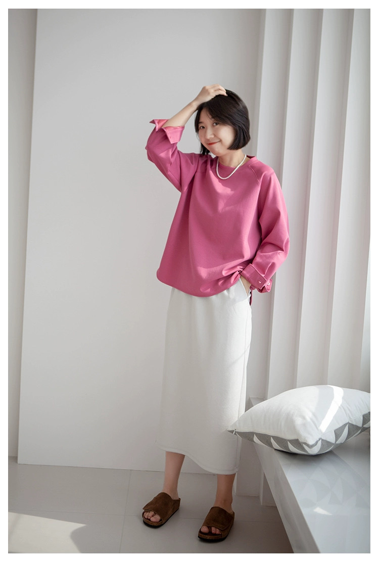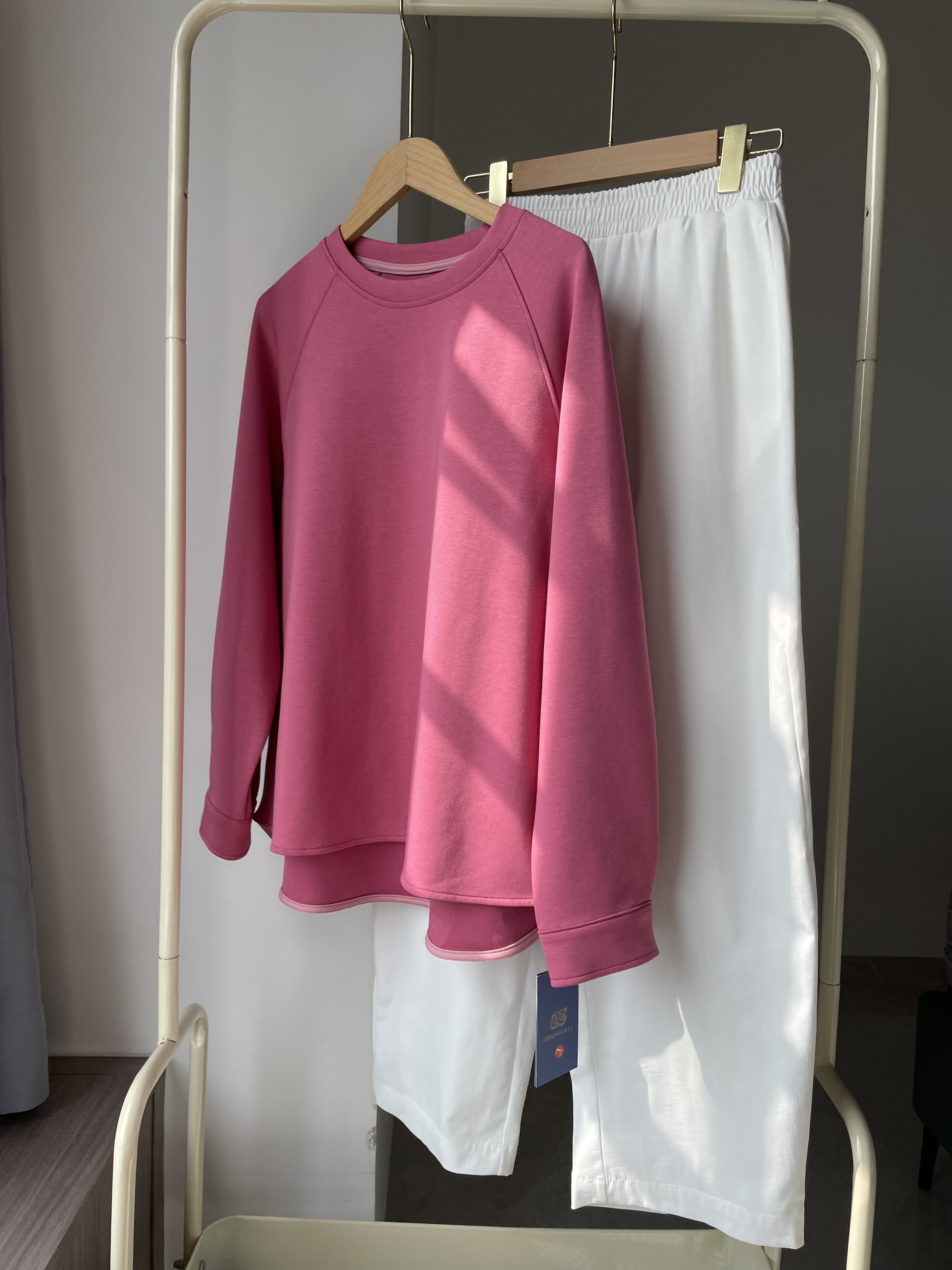 【ORIGNAL&CO莓粉色衬衫卫衣+半裙+裤子系列】空气感T恤卫衣 极简风 宽松纯色