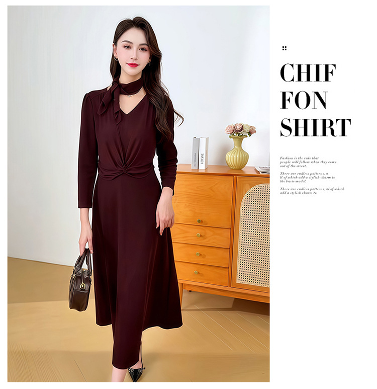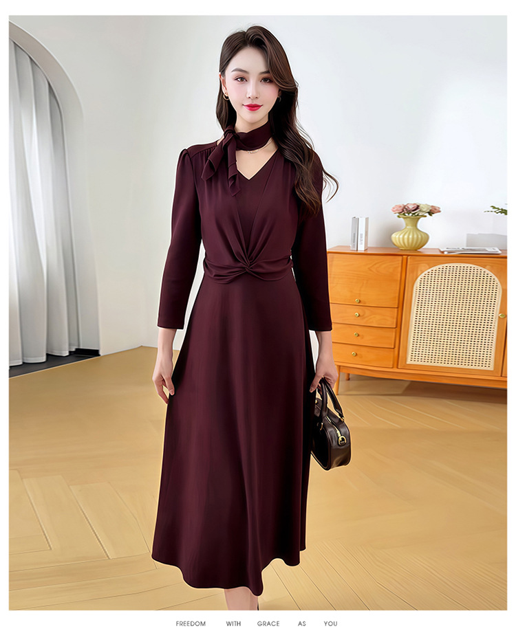 QYM 26801-Y气质优雅收腰连衣裙妈妈装大摆长裙 商品图4