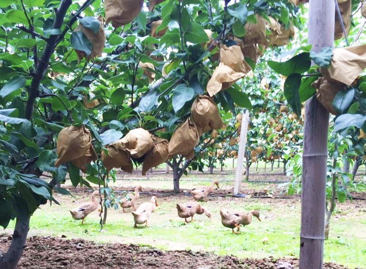 而且果园里随处可见四处走动的鸡鸭