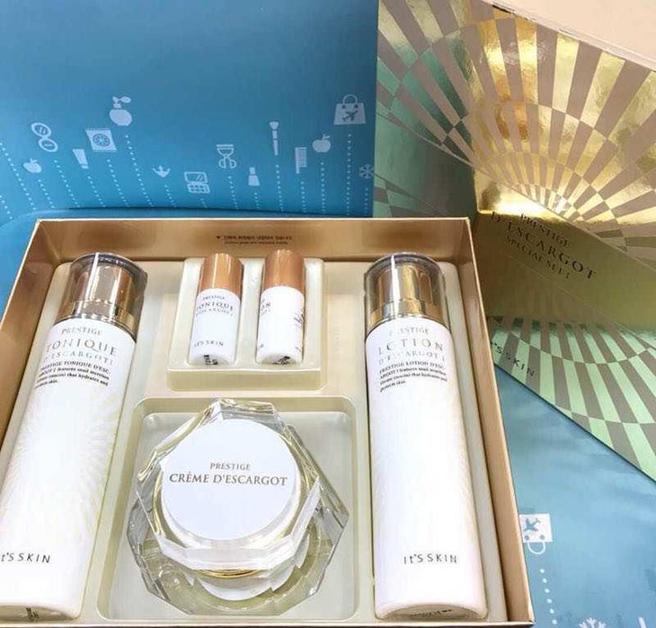 韩国it's skin伊思晶钻蜗牛水乳霜三件套礼盒 ❄️伊思晶鑽蝸牛套裝套盒🐌水乳為清爽型💚補水保濕,美白淡印,改善皺紋,鎮定舒緩修復皮膚。適合皮膚類型:🍀任何肌膚,特別適合缺水🌼,疤痕,痘痘,暗瘡,有痘印、色斑的皮膚,以及皮膚彈力下降的肌膚‼️。。透白保水度足🍄,細紋減少,較深的皺紋與粗大的毛孔也能獲得改善。