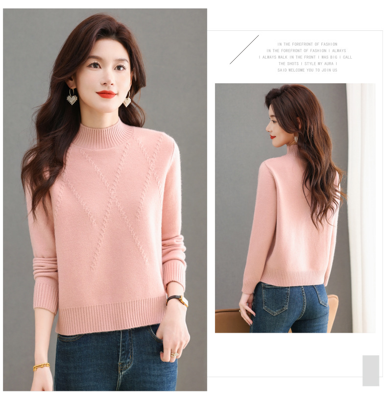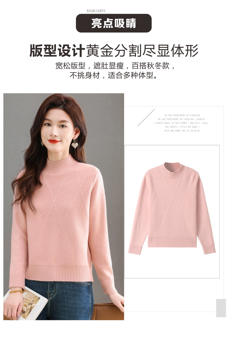 CC-tbrk-58129高腰短款小个子套头毛衣女士秋冬时尚半高领打底内搭纯色针织上衣