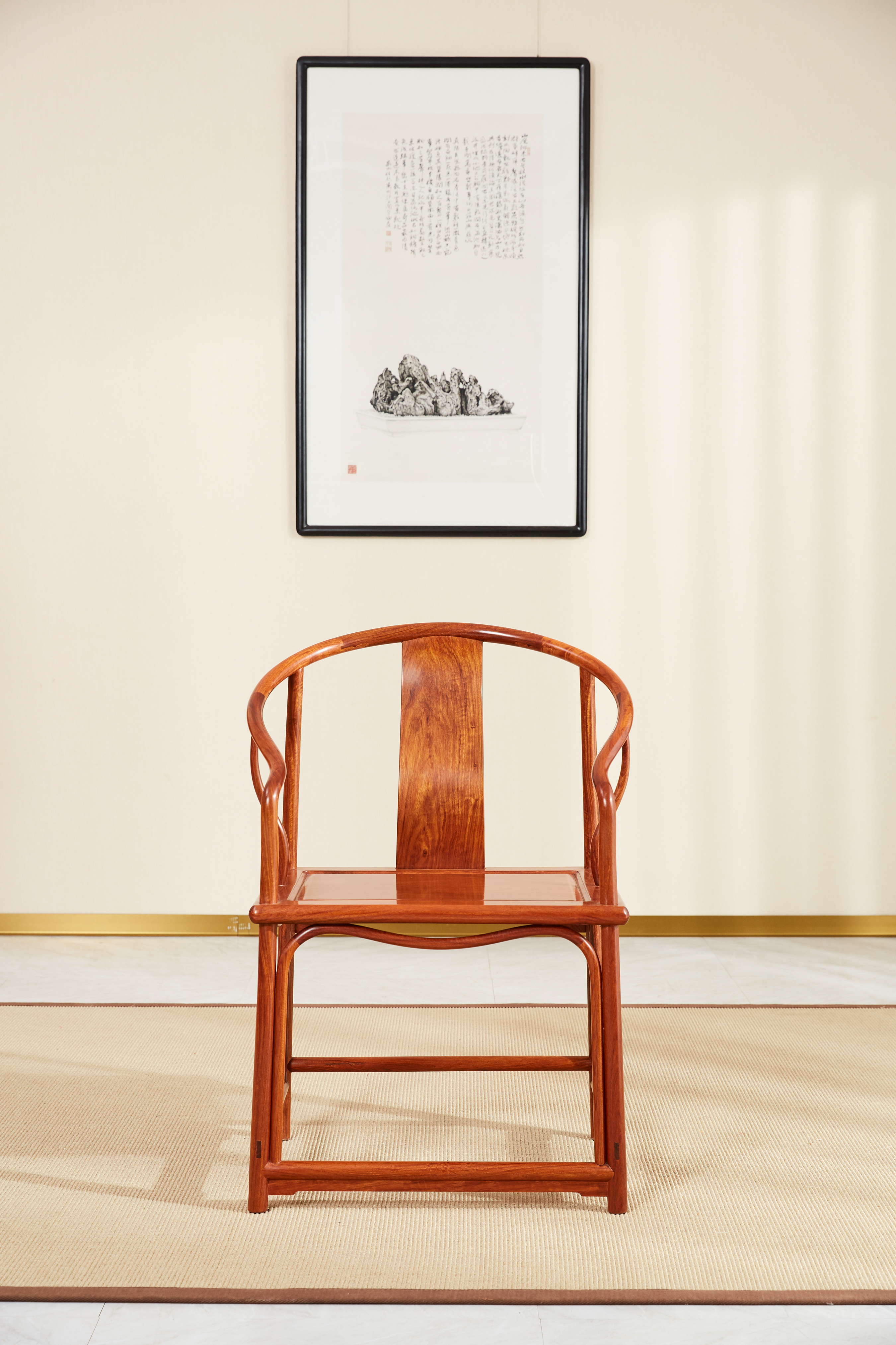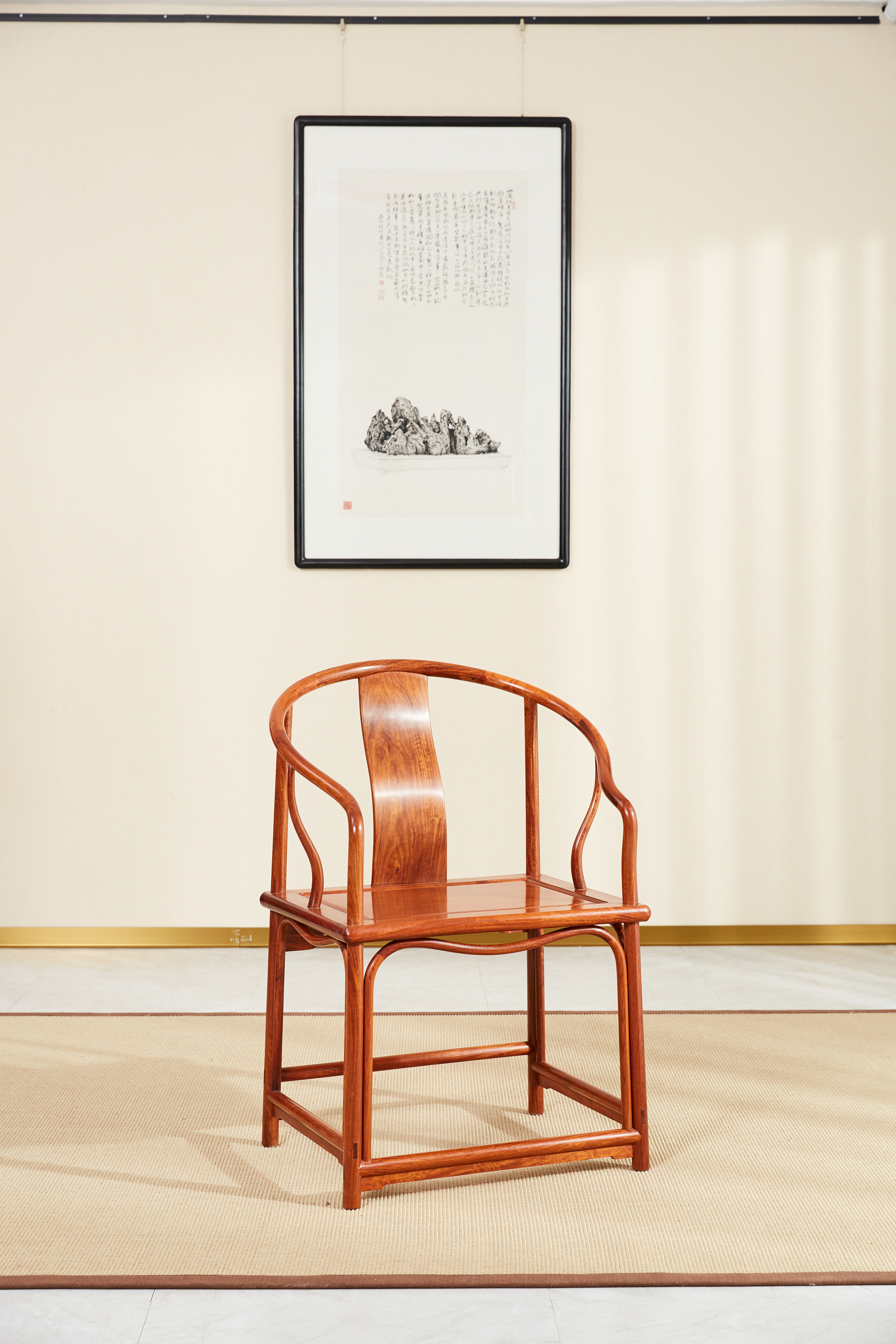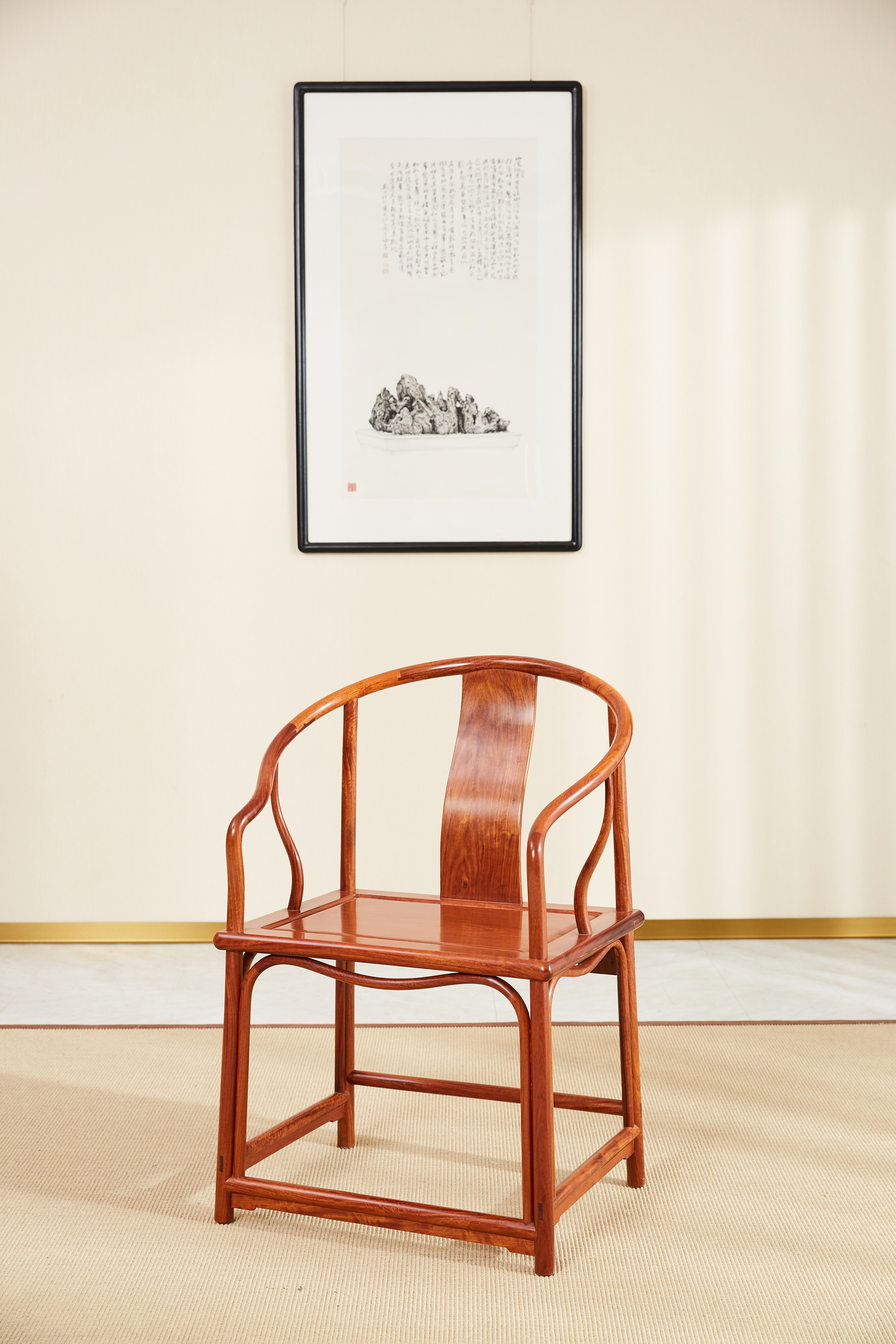 王世襄先生说,明式圈椅多用圆材,扶手不出头,而与鹅脖相接的少见,垂手圈椅即是不出头圈椅,明代已被广泛使用,2015年3月,锦瑟年华——安思远私人珍藏拍卖上,这对垂手圈椅成交价不含佣金,约合人民币1639万元,印证了其极高的艺术价值,圈椅极简,借古典家具研究学者,谭向东先生的说法,为有设计感的逸品,此器为安思远先生挚爱,摆在其公寓前厅,与潘天寿大师的《满堂清芳》相得益彰。