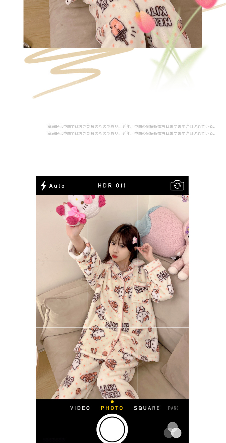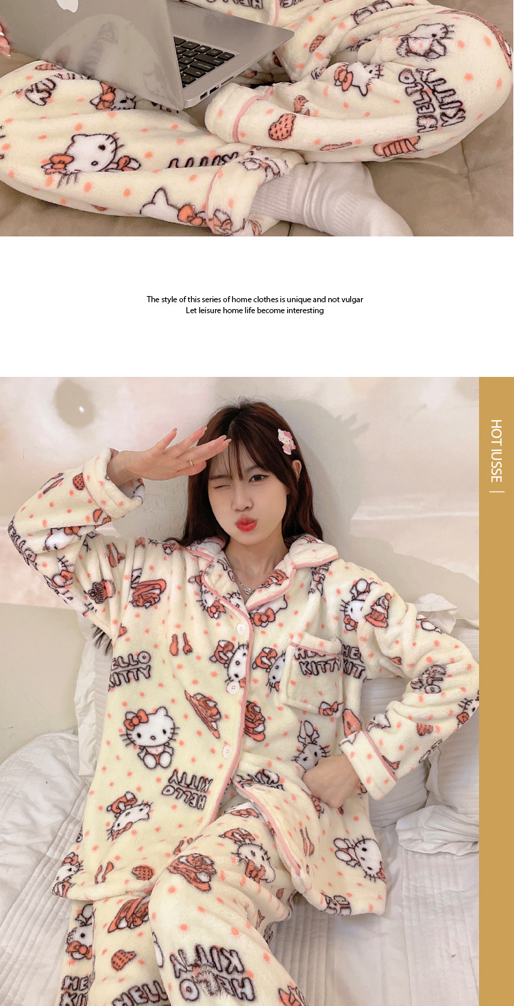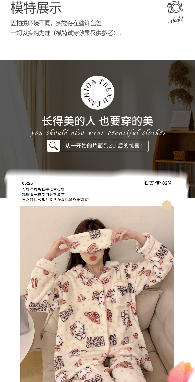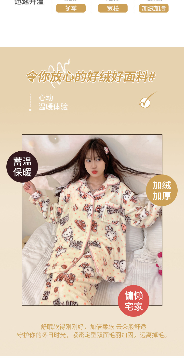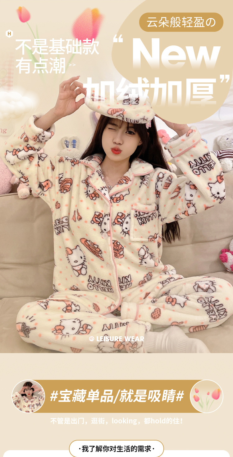 【HelloKitty珊瑚绒睡衣,加厚加绒保暖舒适】韩系HelloKitty凯蒂猫珊瑚绒睡衣女 秋冬季新款 加厚加绒家居服-QQ